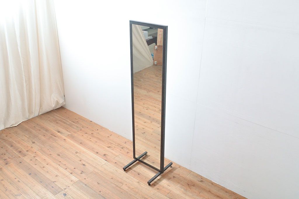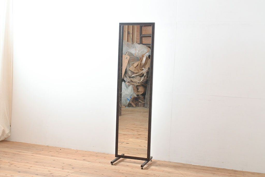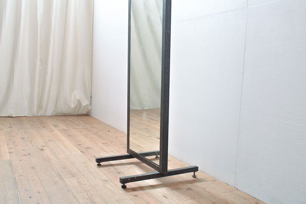 中古 アイアン インダストリアルなお部屋・お店づくりにおすすめのスタンドミラー(姿見、鏡、店舗什器)(R-053093)