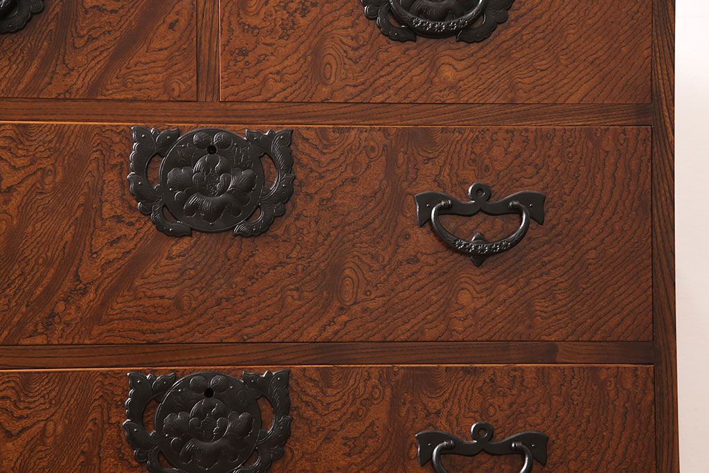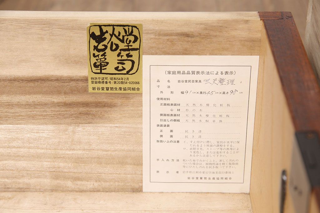 民芸家具 > 中古 美品 岩谷堂箪笥 くっきりとした杢目が上質な雰囲気を醸し出す整理箪笥(和タンス、衣装箪笥、引き出し、チェスト)(R-053343)