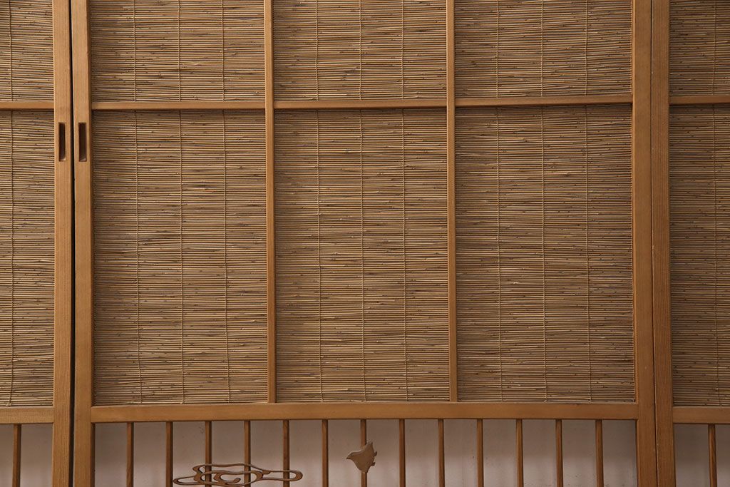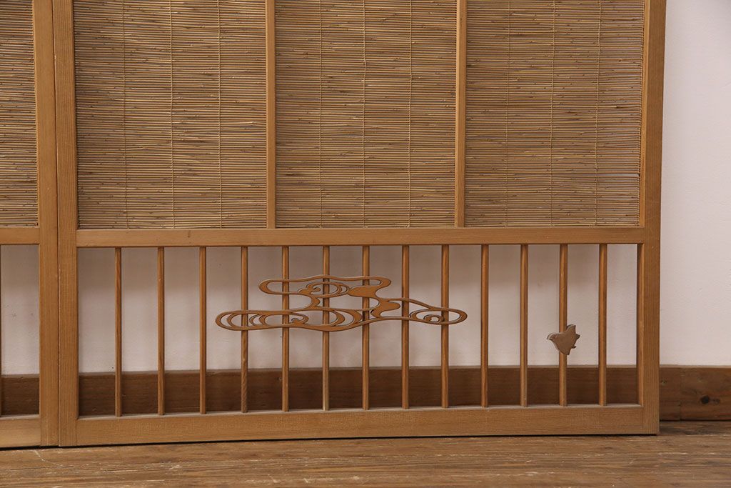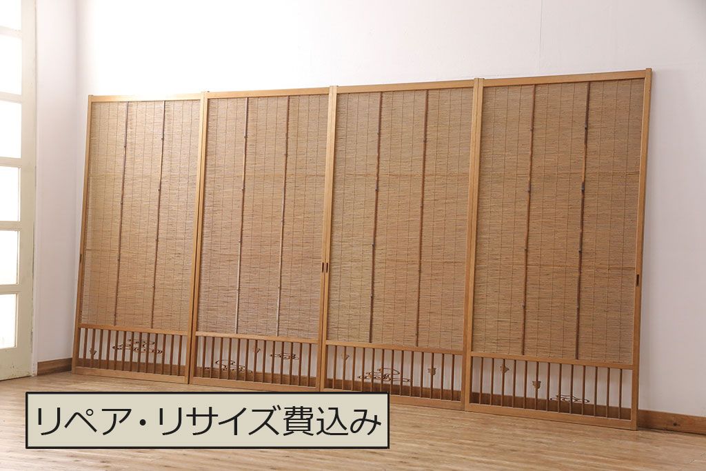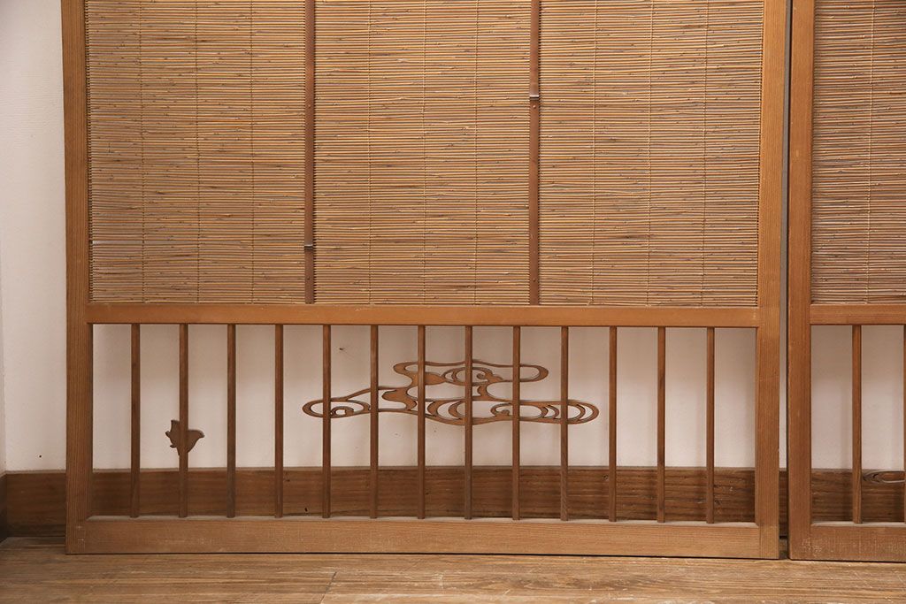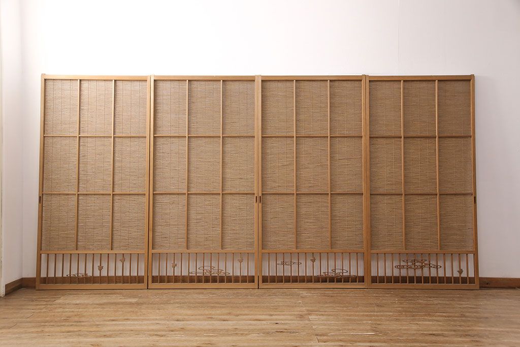 ラフジュ工房> ドア・建具> 引き戸 > 和製アンティーク 千鳥と雲のモチーフがアクセントになる御簾戸4枚セット(建具、簾戸、簀戸、葭戸、夏障子、すど、葦戸)(R-052102)