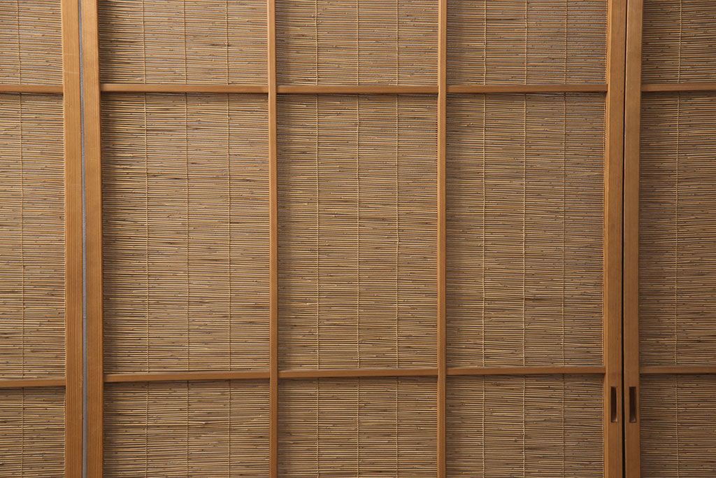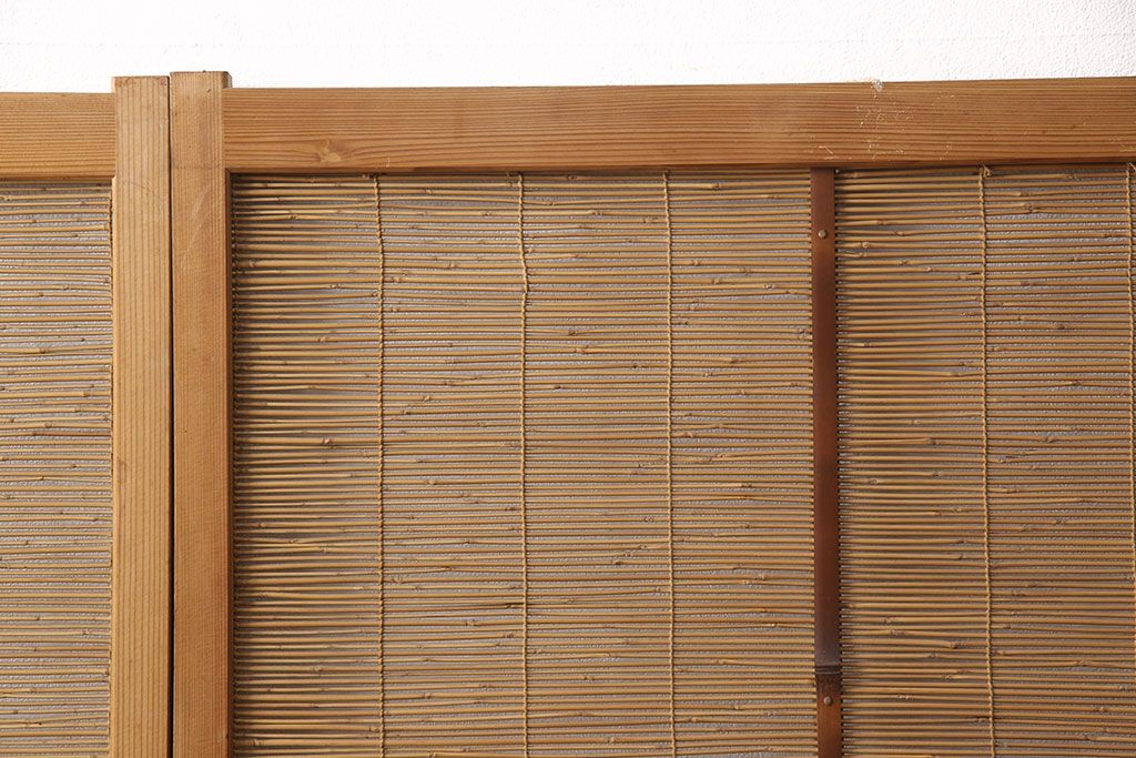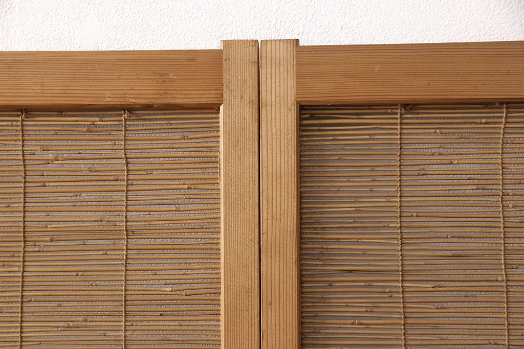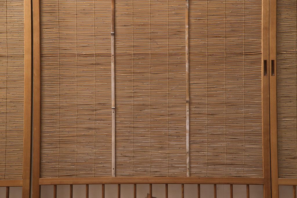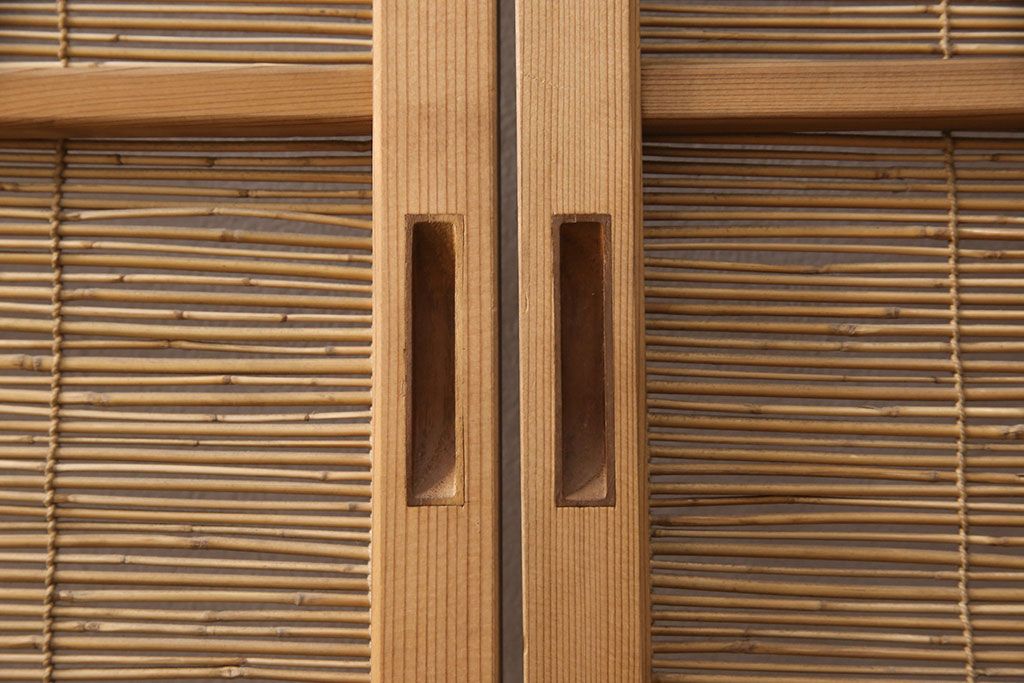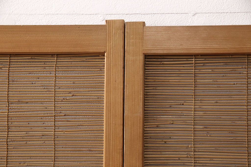 ラフジュ工房> ドア・建具> 引き戸 > 和製アンティーク 千鳥と雲のモチーフがアクセントになる御簾戸4枚セット(建具、簾戸、簀戸、葭戸、夏障子、すど、葦戸)(R-052102)