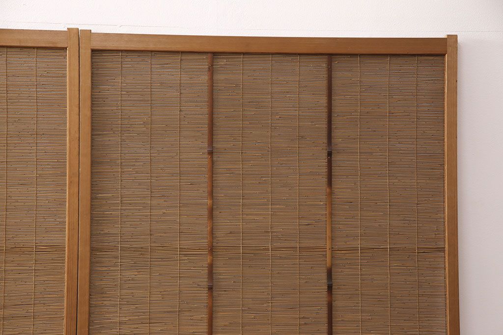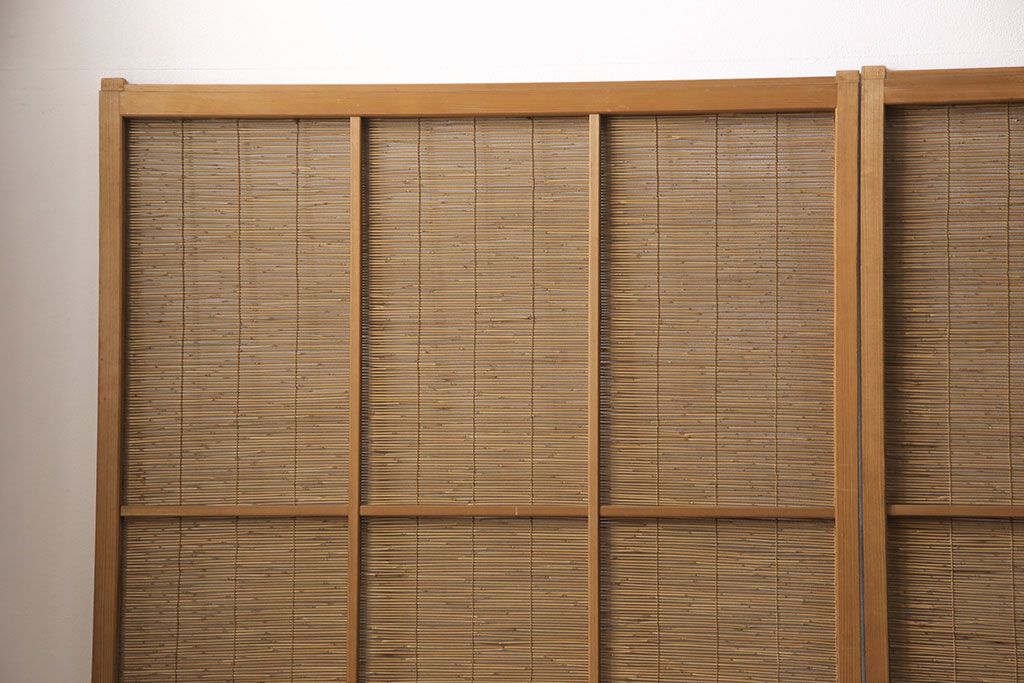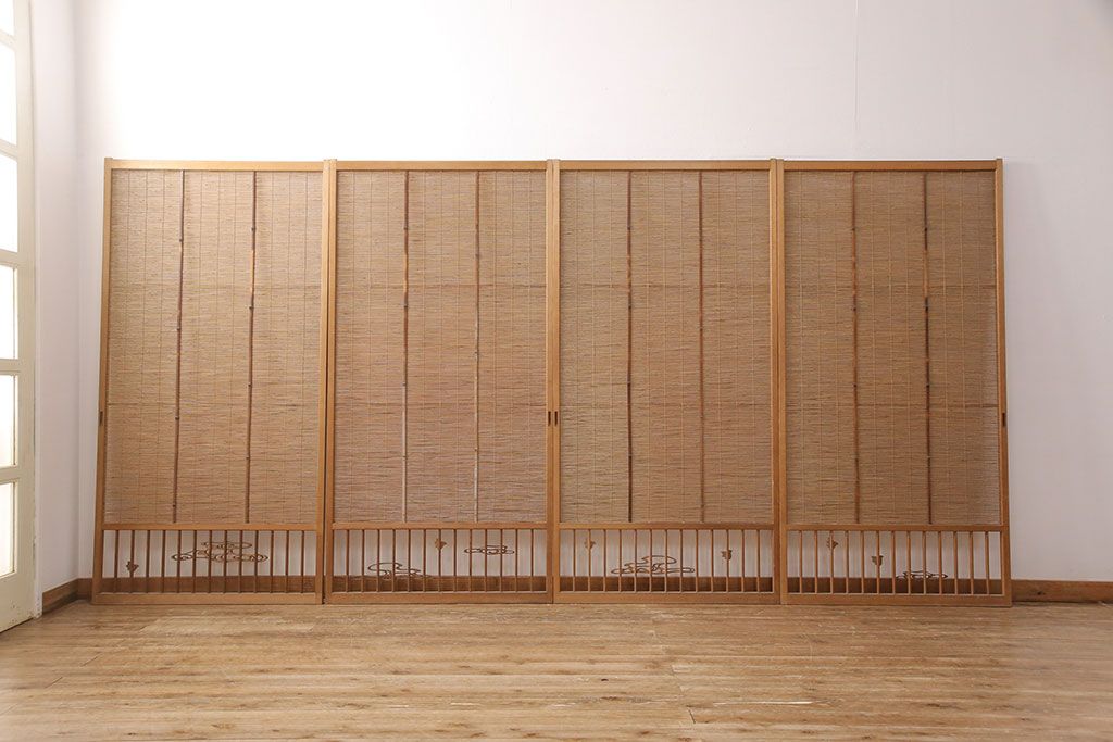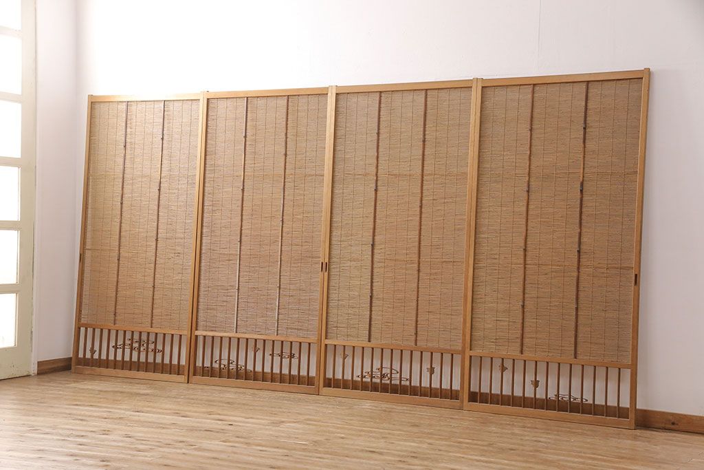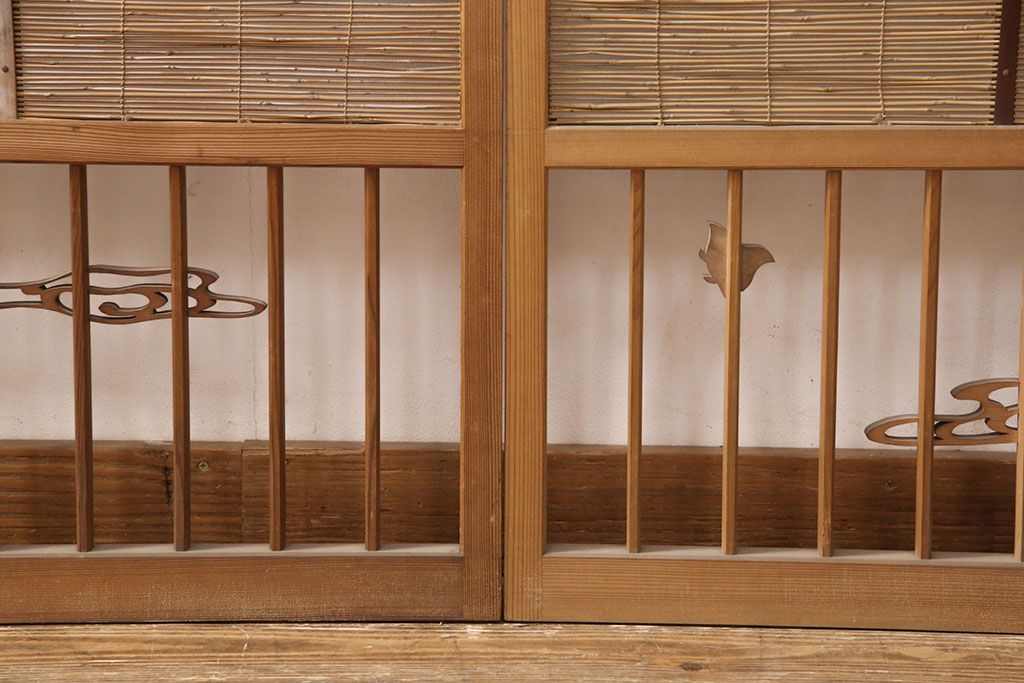和製アンティーク 千鳥と雲のモチーフがアクセントになる御簾戸4枚セット(建具、簾戸、簀戸、葭戸、夏障子、すど、葦戸)(R-052102)