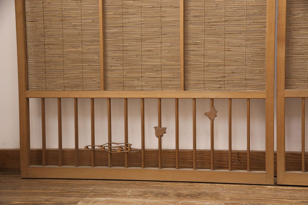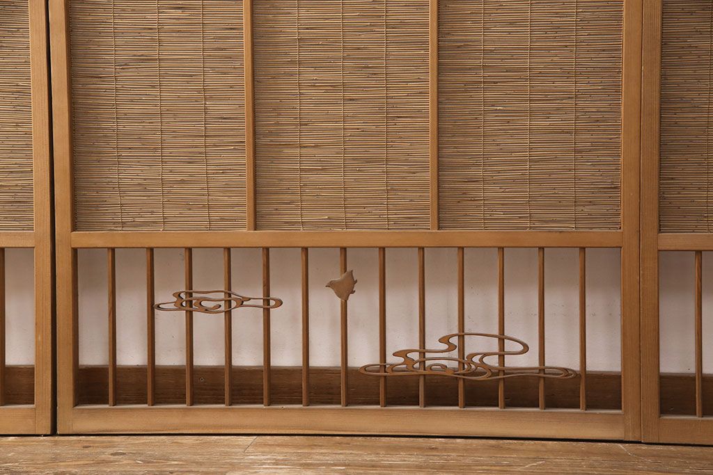 ラフジュ工房> ドア・建具> 4枚〜セット > 和製アンティーク 千鳥と雲のモチーフがアクセントになる御簾戸4枚セット(建具、簾戸、簀戸、葭戸、夏障子、すど、葦戸)(R-052102)