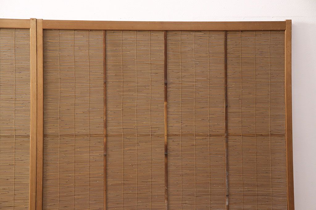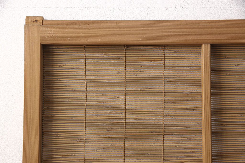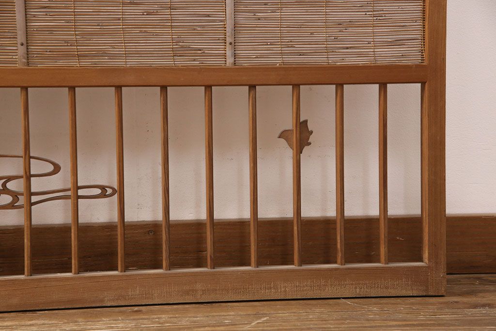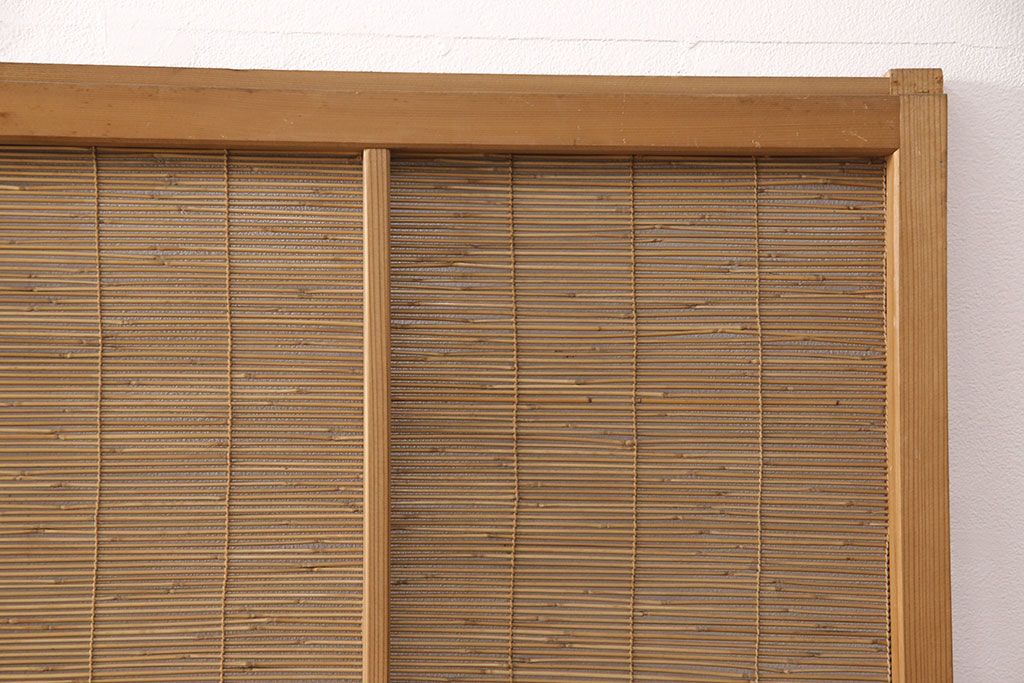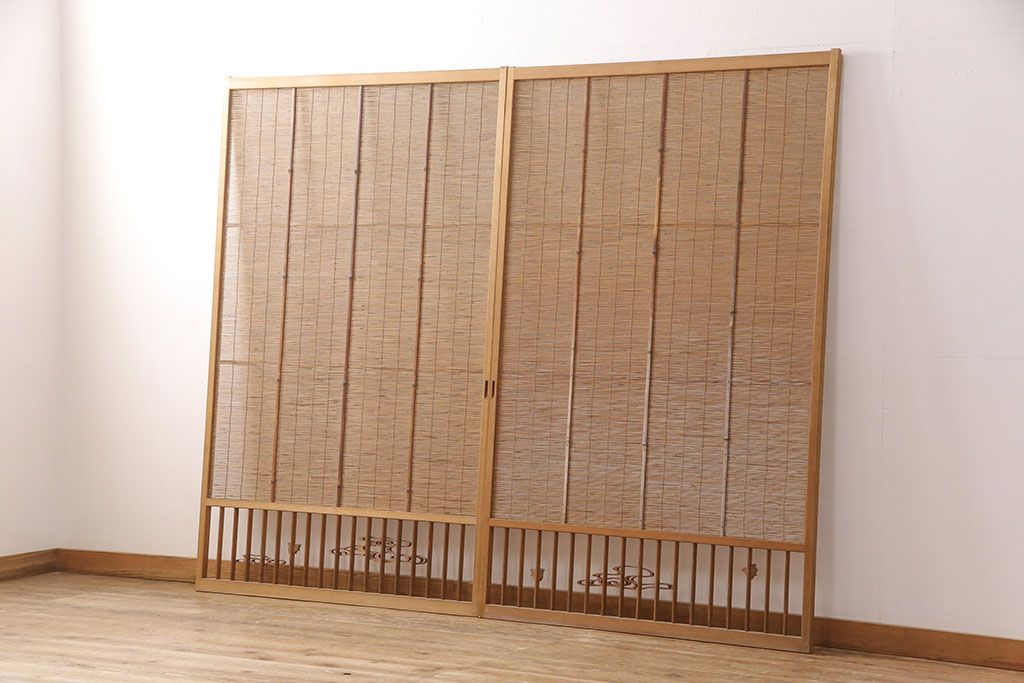 和製アンティーク 千鳥と雲のモチーフがアクセントになる幅広の御簾戸2枚セット(建具、簾戸、簀戸、葭戸、夏障子、すど、葦戸)(R-052103)