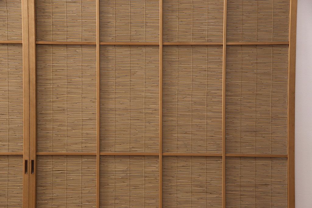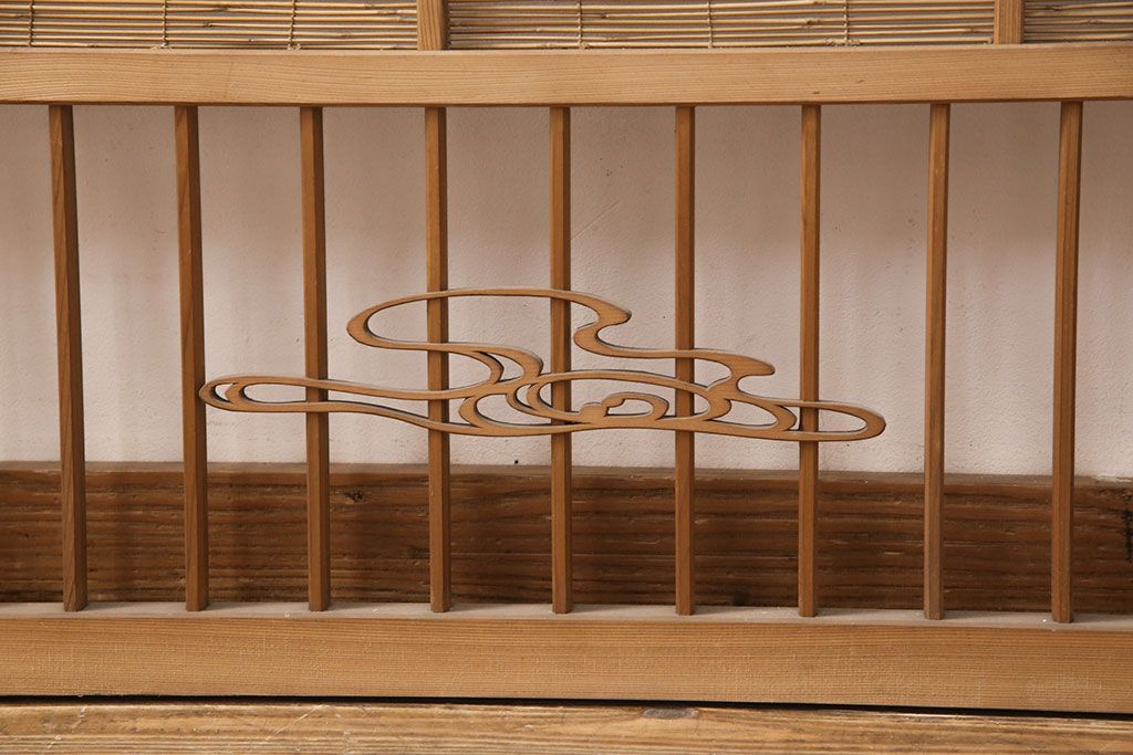 ラフジュ工房> ドア・建具> 簾戸・夏戸・網戸 > 和製アンティーク 千鳥と雲のモチーフがアクセントになる幅広の御簾戸2枚セット(建具、簾戸、簀戸、葭戸、夏障子、すど、葦戸)(R-052103)