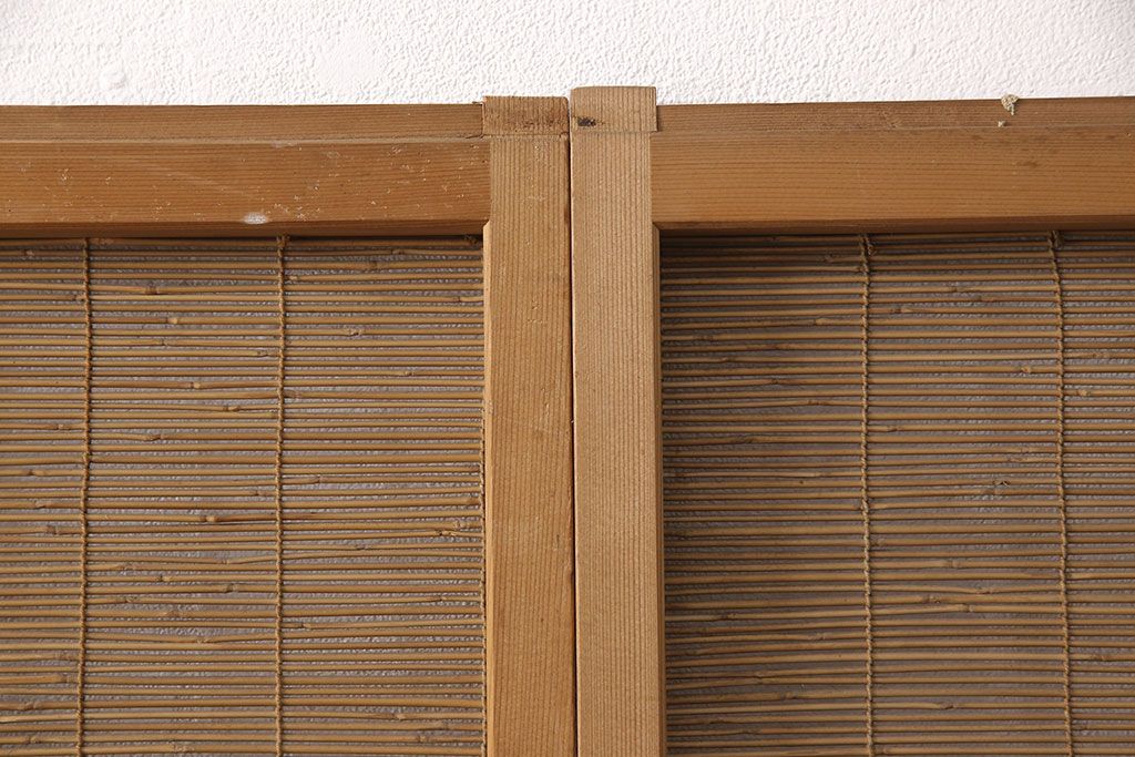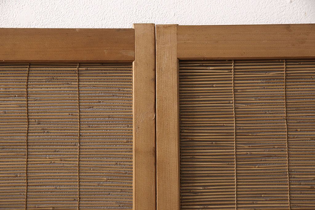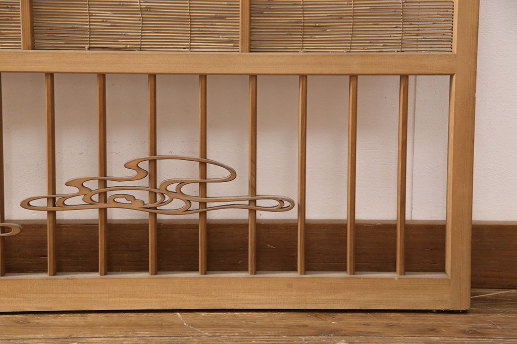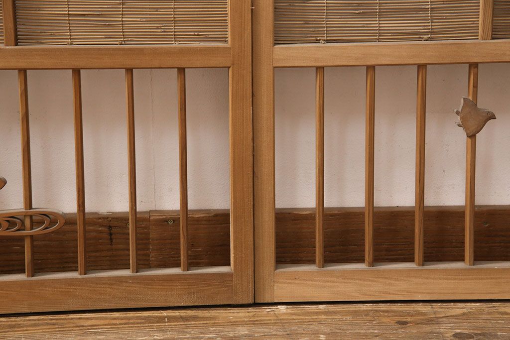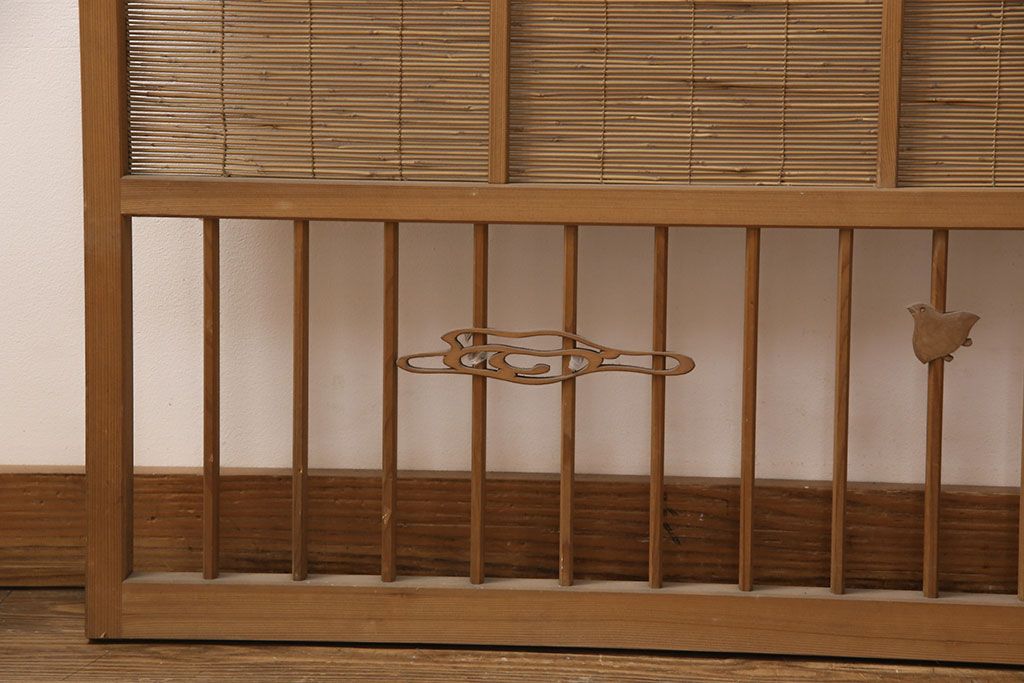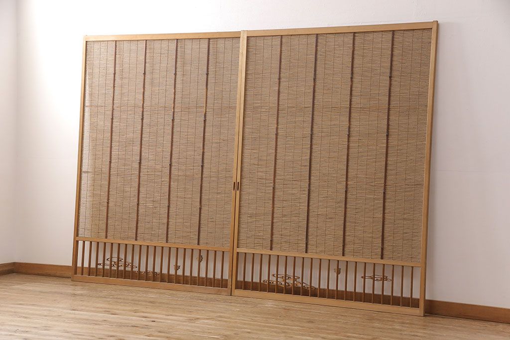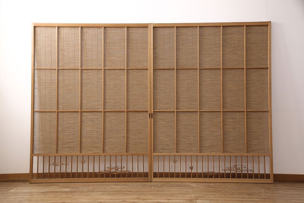 和製アンティーク 千鳥と雲のモチーフがアクセントになる幅広の御簾戸2枚セット(建具、簾戸、簀戸、葭戸、夏障子、すど、葦戸)(R-052107)