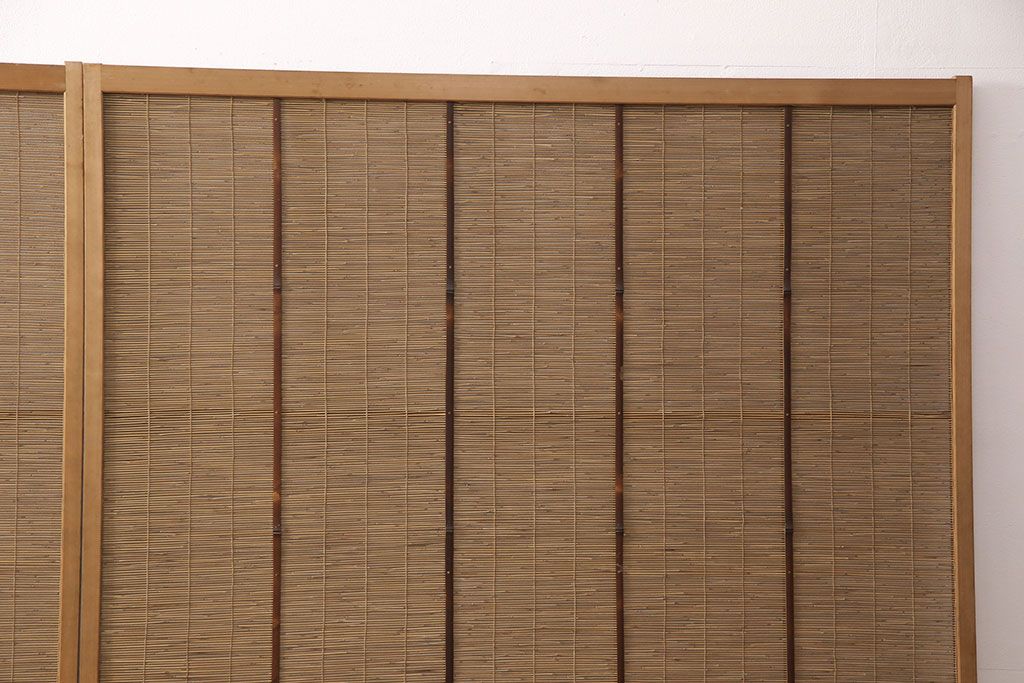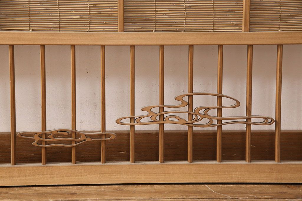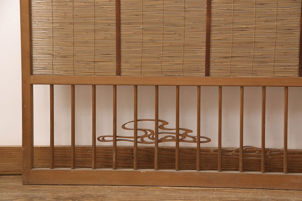 ラフジュ工房> ドア・建具> 簾戸・夏戸・網戸 > 和製アンティーク 千鳥と雲のモチーフがアクセントになる幅広の御簾戸2枚セット(建具、簾戸、簀戸、葭戸、夏障子、すど、葦戸)(R-052107)