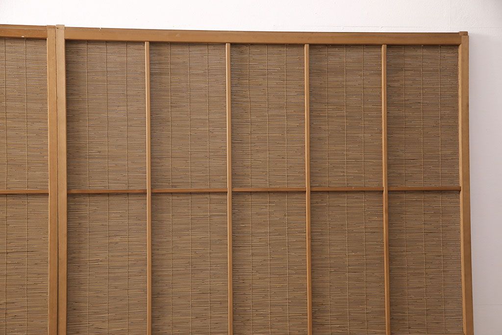 ラフジュ工房> ドア・建具> 引き戸 > 和製アンティーク 千鳥と雲のモチーフがアクセントになる幅広の御簾戸2枚セット(建具、簾戸、簀戸、葭戸、夏障子、すど、葦戸)(R-052107)