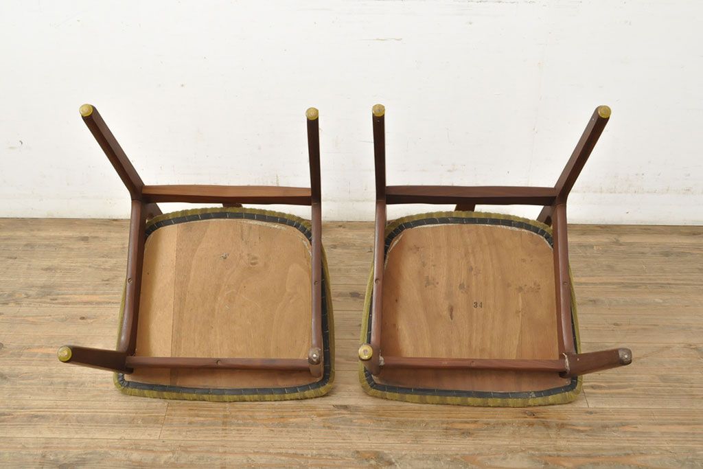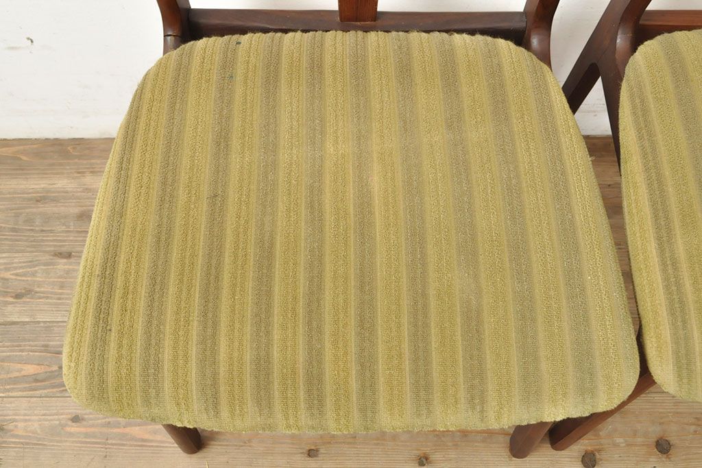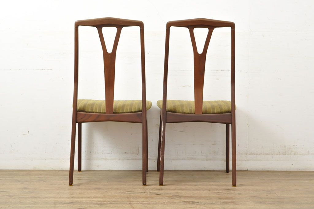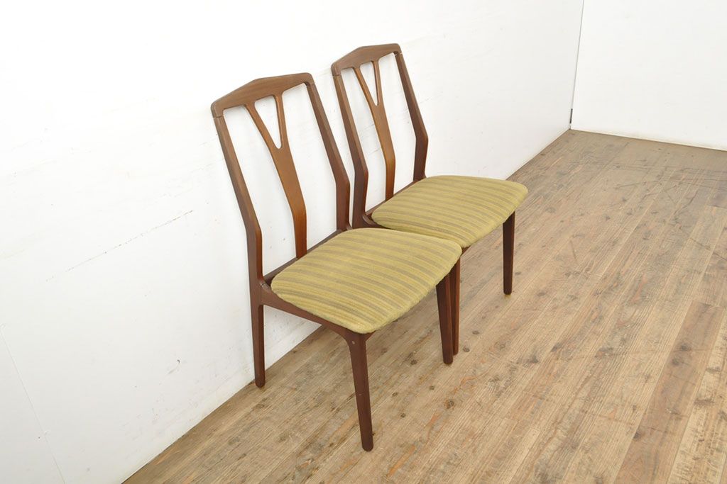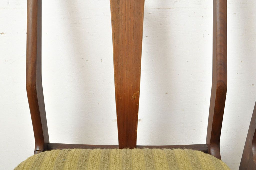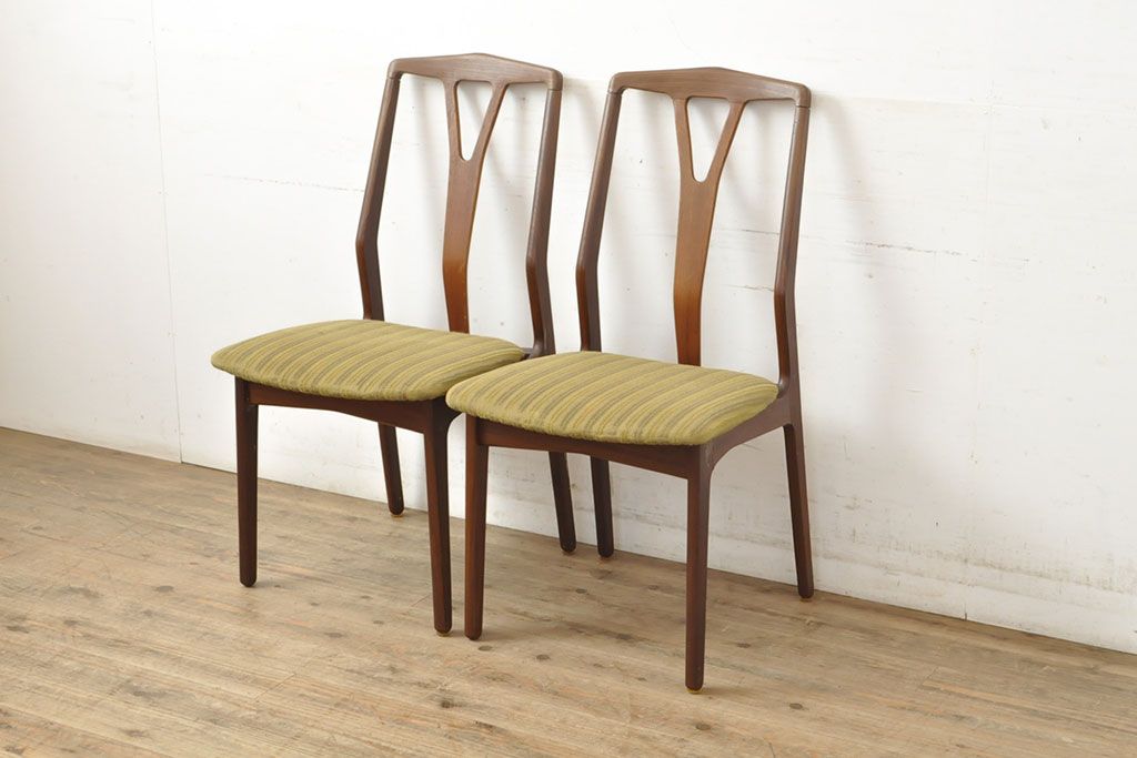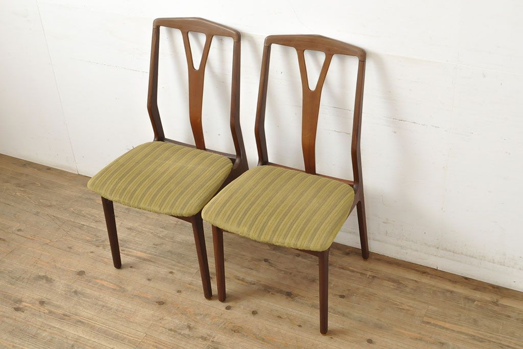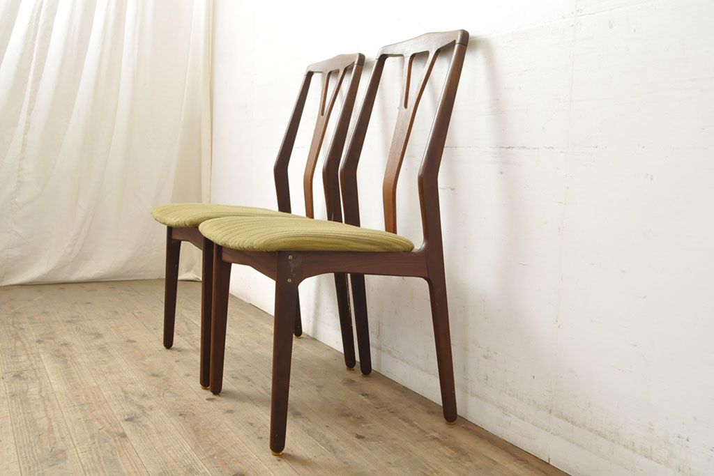 状態が気になる方には現状販売はおすすめできませんので、慎重なご検討をお願いいたします。デンマークビンテージ チーク材 洗練された佇まいが目を引くダイニングチェア2脚セット(イス、椅子、ヴィンテージ)(R-052635)です。