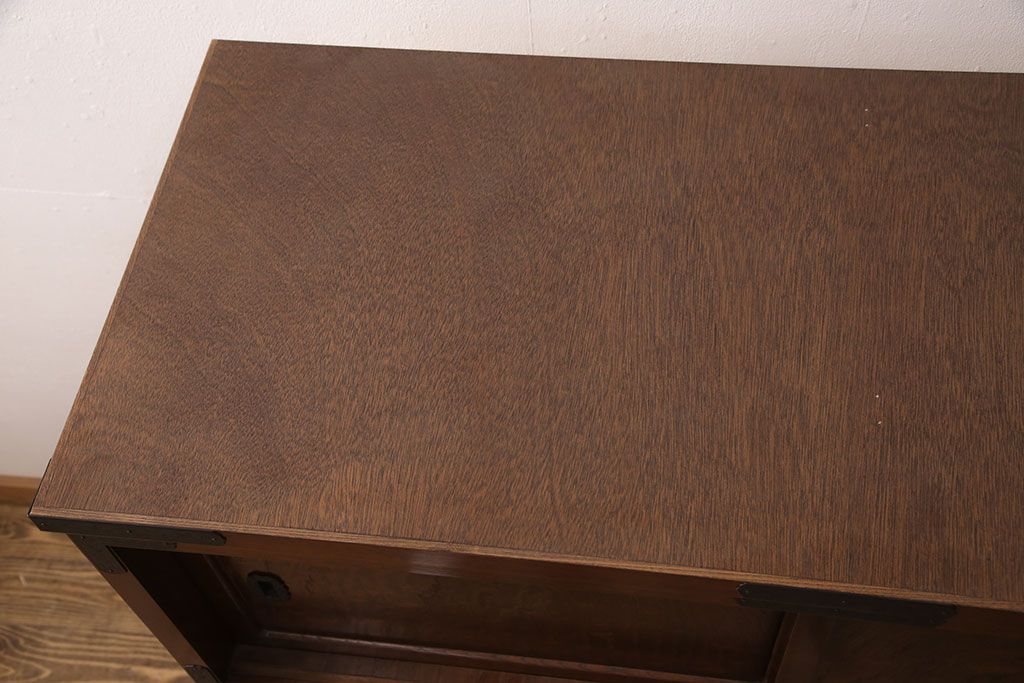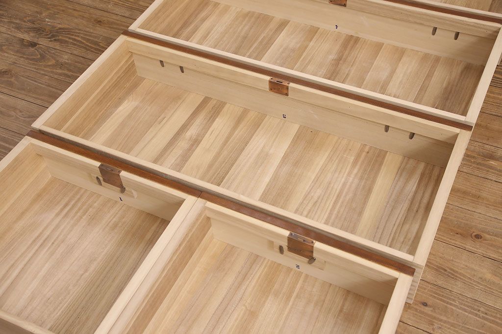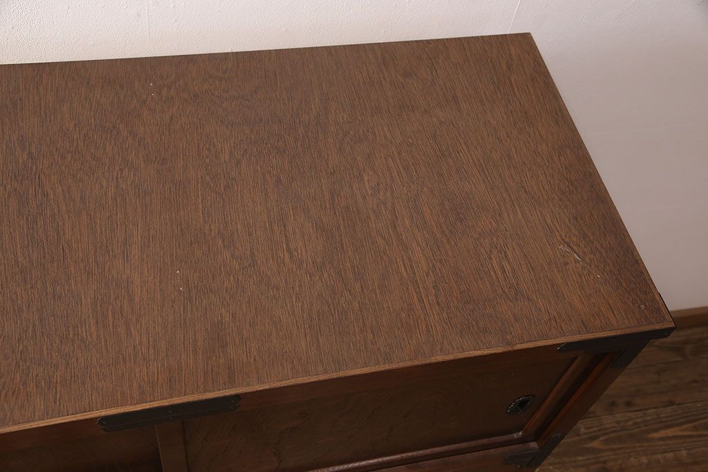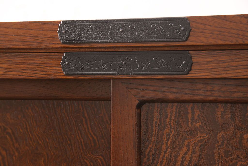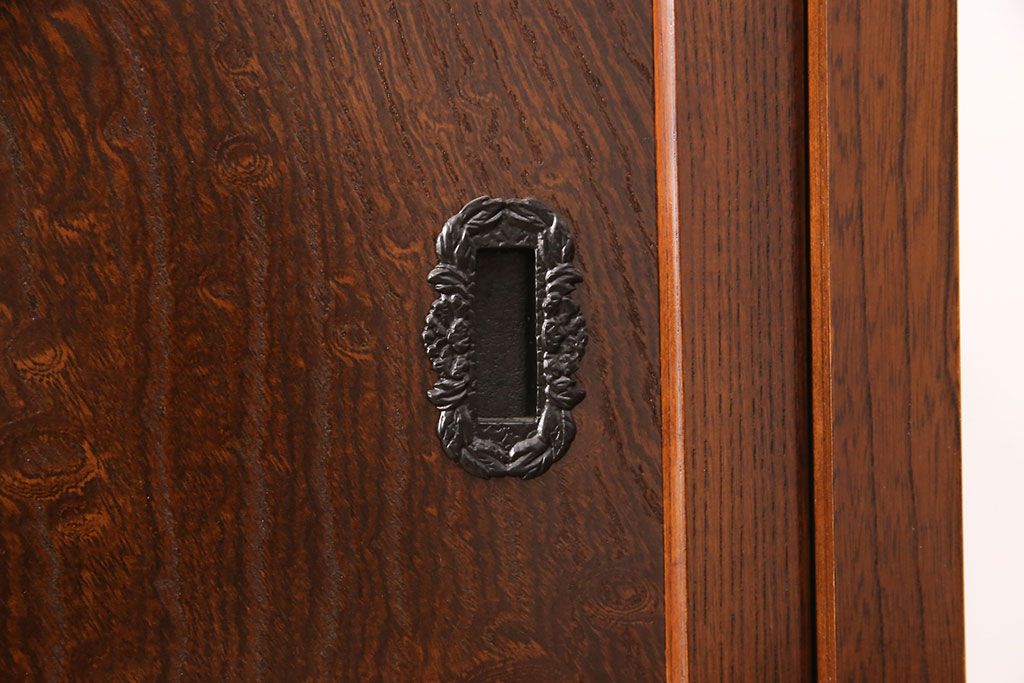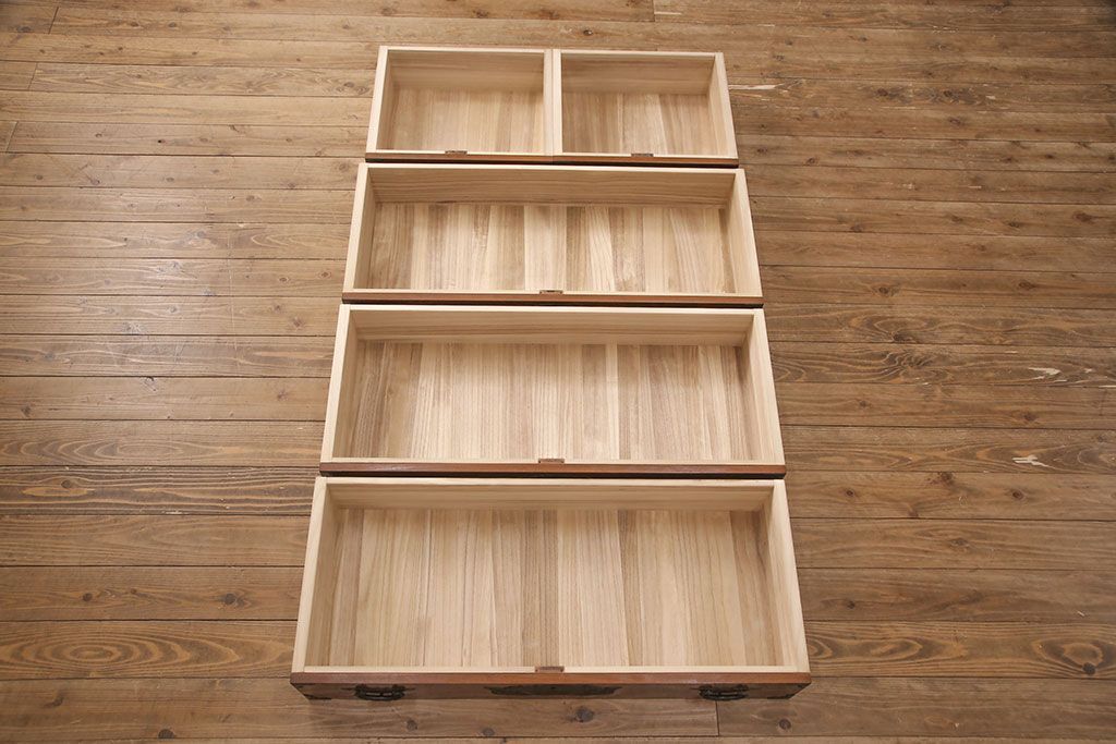 ラフジュ工房> 民芸家具 > 中古 美品 脚(台輪)付きリメイク 国産手造り民芸家具 凝ったデザインの金具と深みのある色合いが美しい和タンス(和箪笥、チェスト、引き出し)(R-052654)