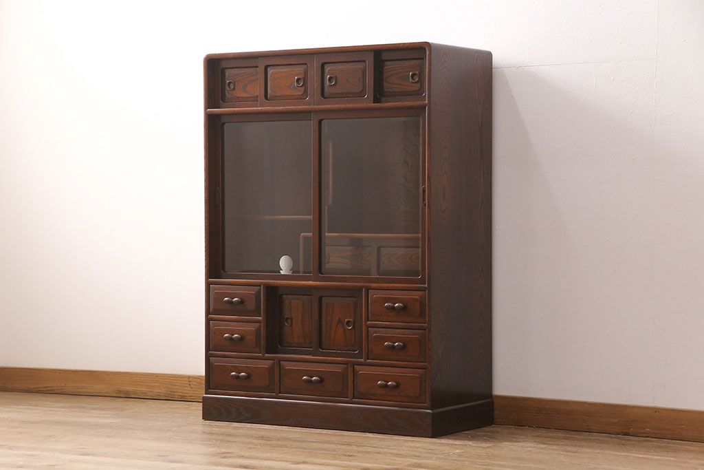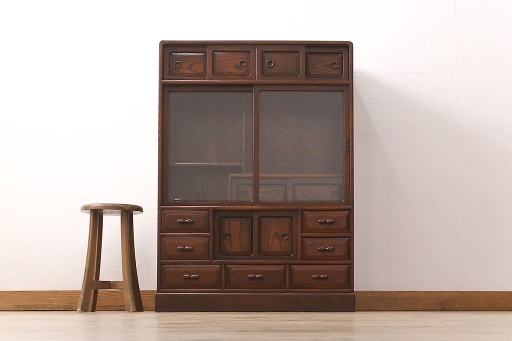 和箪笥> 茶箪笥・茶棚 > 茶箪笥をリペア&カスタム!指定の棚板を取り外し、穴開け加工。蜜蝋ワックス仕上げ。(飾り棚、収納棚、戸棚)