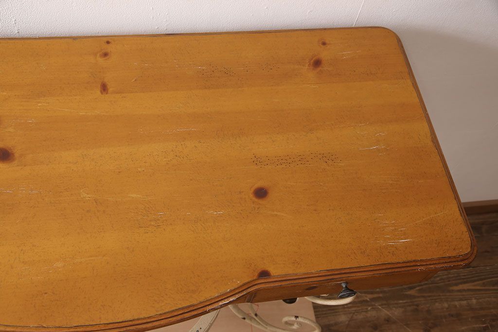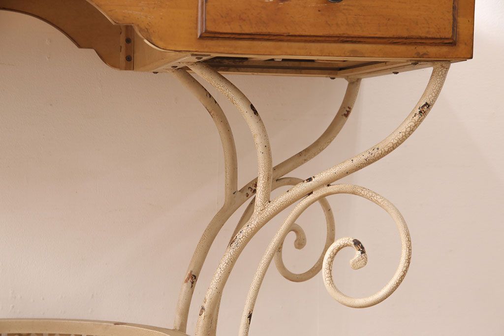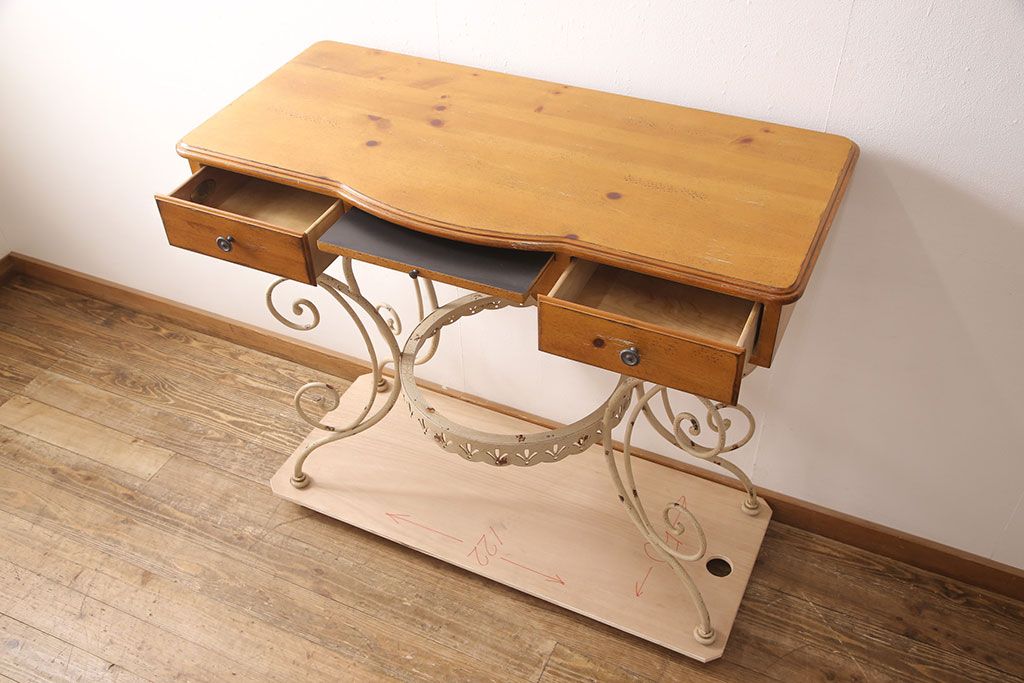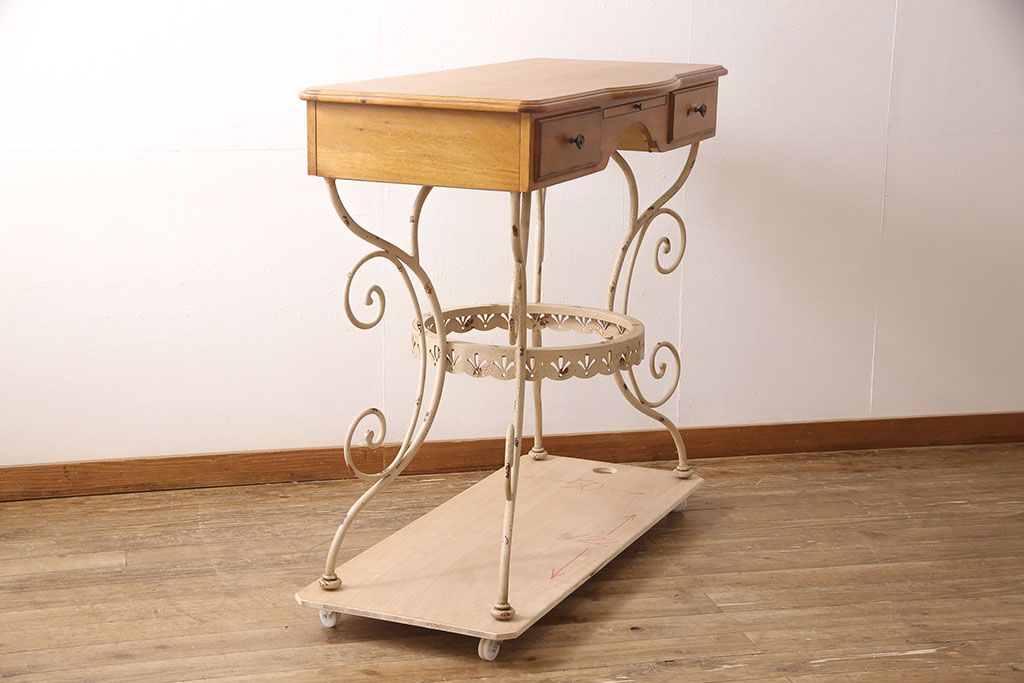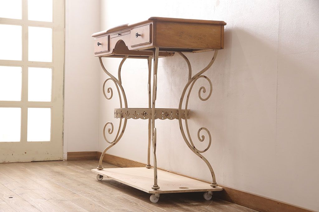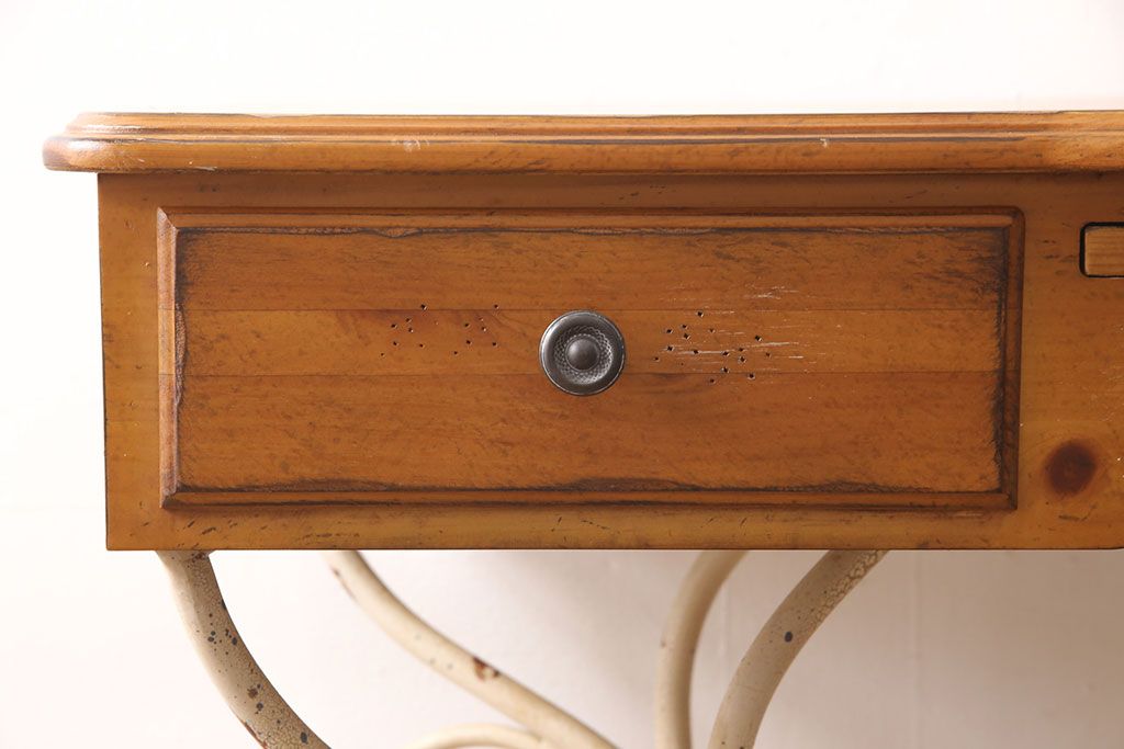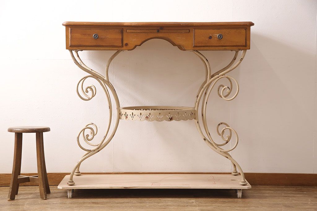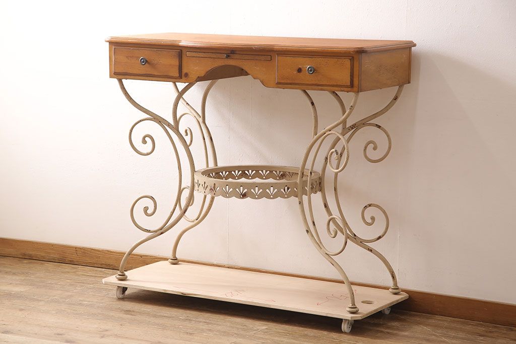 中古 DREXEL HERITAGE(ドレクセルヘリテイジ) アメリカ輸入モデル 異素材ミックスなデザインが面白いコンソールテーブル(ハイデスク、在宅ワーク、在宅用サイドテーブル)(R-052882)