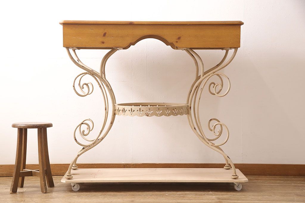 テーブル> サイドテーブル > 中古 DREXEL HERITAGE(ドレクセルヘリテイジ) アメリカ輸入モデル 異素材ミックスなデザインが面白いコンソールテーブル(ハイデスク、在宅ワーク、在宅用サイドテーブル)(R-052882)