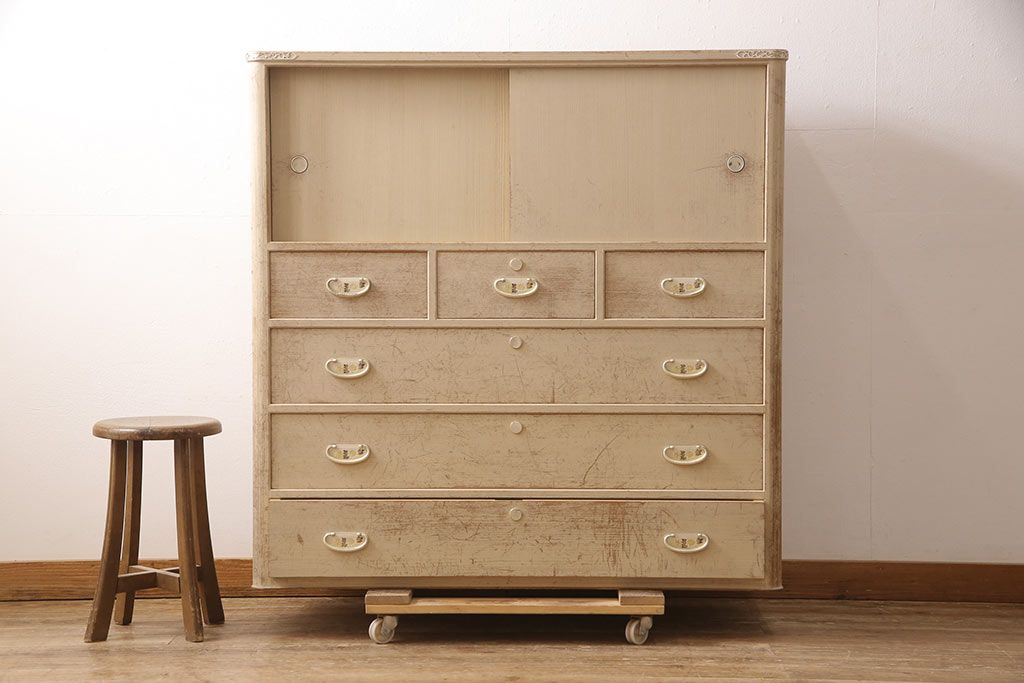 ラフジュ工房> 和箪笥> 着物箪笥 > 中古 リメイク 伝統工芸士・中沢和夫作 一峰 上品な和を演出する細やかな金具が魅力的な加茂桐箪笥・上段(胴丸、桐たんす、衣装箪笥、和タンス、洋服タンス)(R-053390)