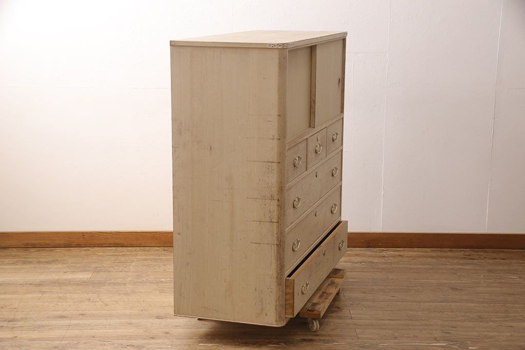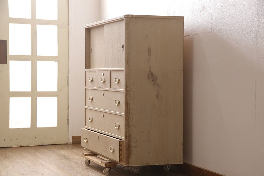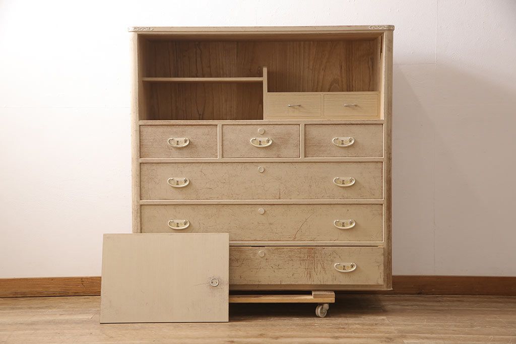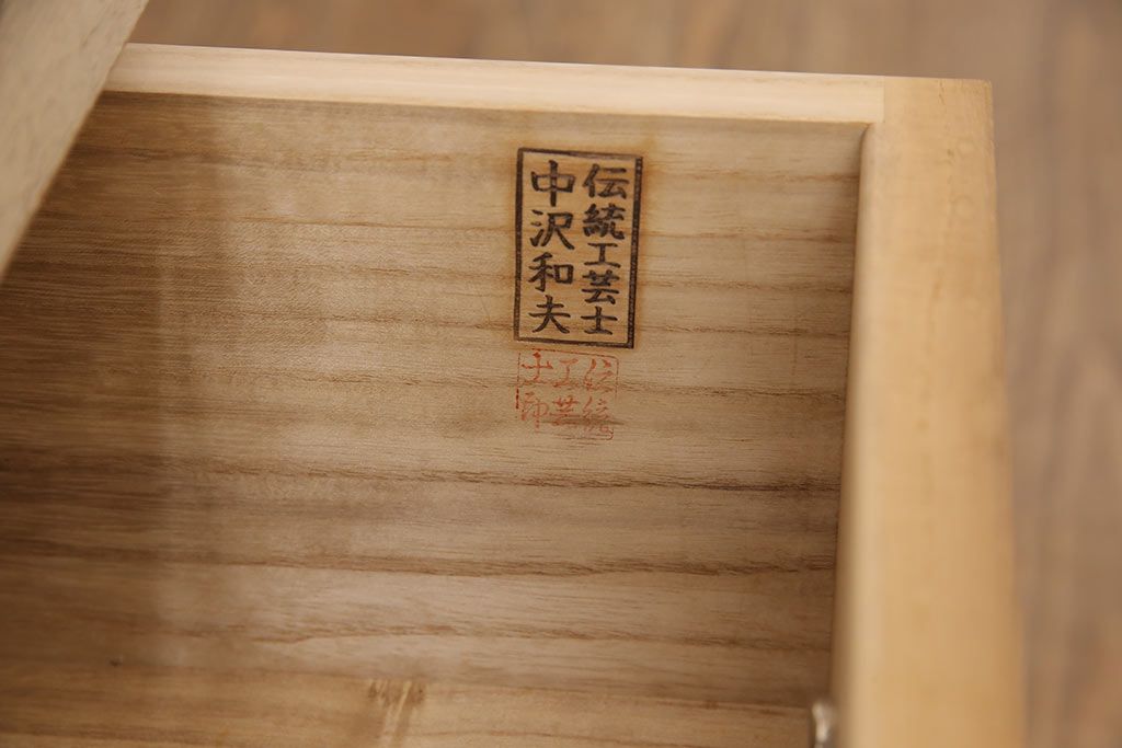 中古 リメイク 伝統工芸士・中沢和夫作 一峰 上品な和を演出する細やかな金具が魅力的な加茂桐箪笥・上段(胴丸、桐たんす、衣装箪笥、和タンス、洋服タンス)(R-053390)
