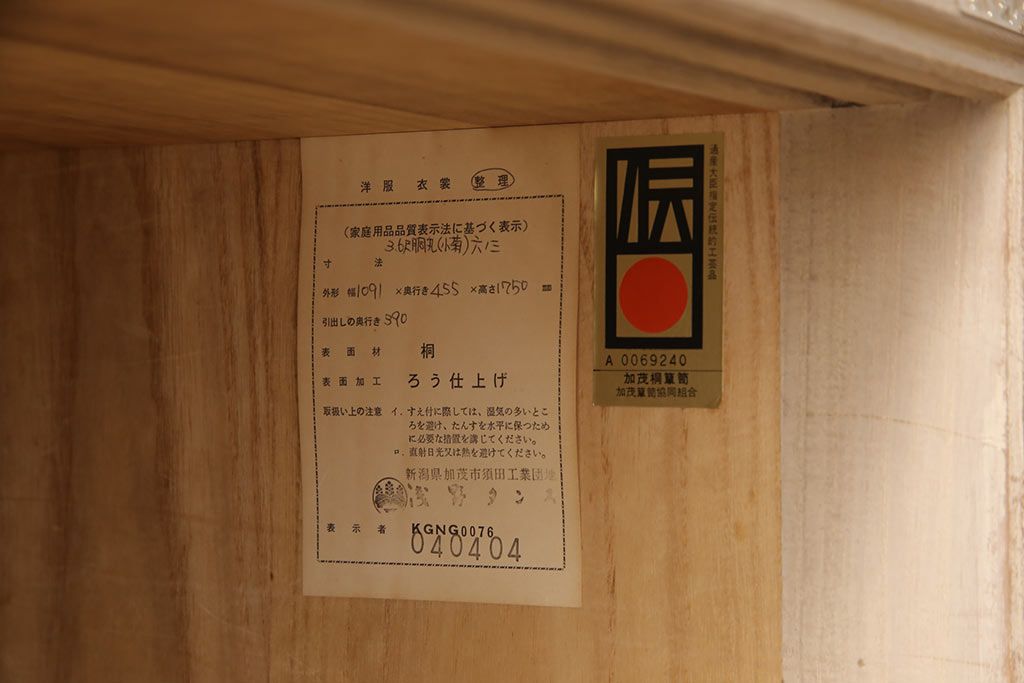 ラフジュ工房> 和箪笥> 衣装箪笥 > 中古 リメイク 伝統工芸士・中沢和夫作 一峰 上品な和を演出する細やかな金具が魅力的な加茂桐箪笥・上段(胴丸、桐たんす、衣装箪笥、和タンス、洋服タンス)(R-053390)