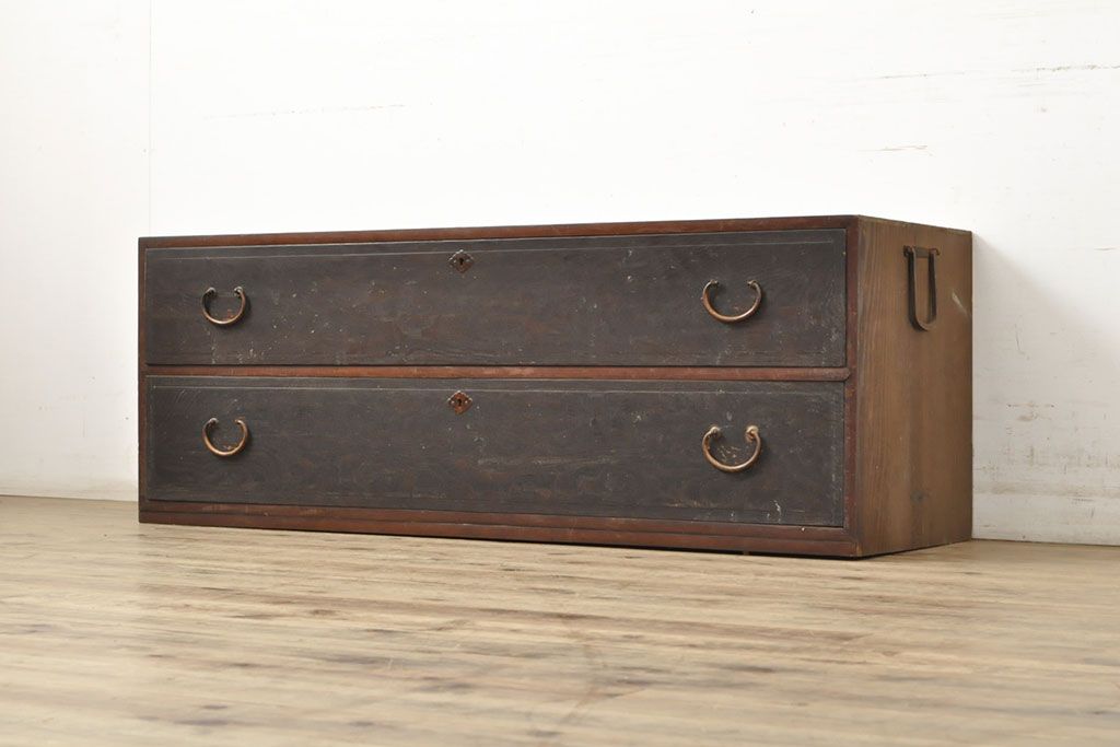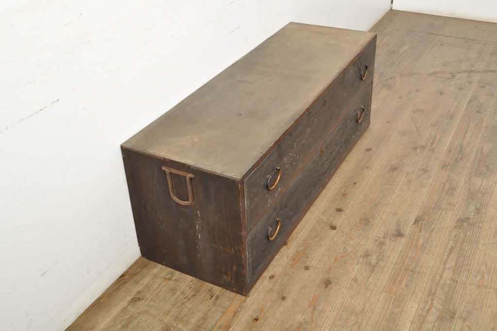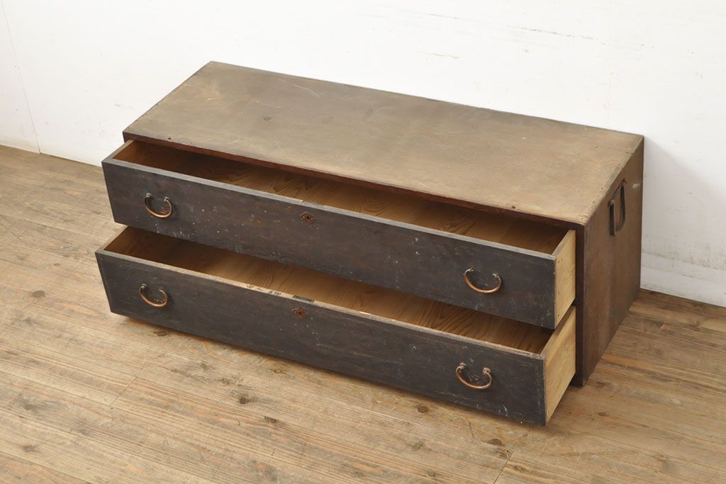 和箪笥 > 和製アンティーク 前面栗材 味のある佇まいが目を引く時代箪笥(たんす)ローボード(ローチェスト、引き出し、和箪笥)(R-052723)
