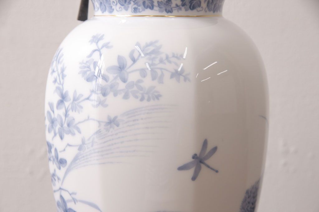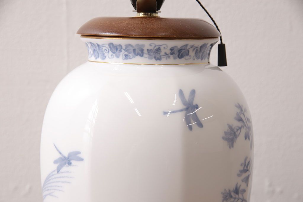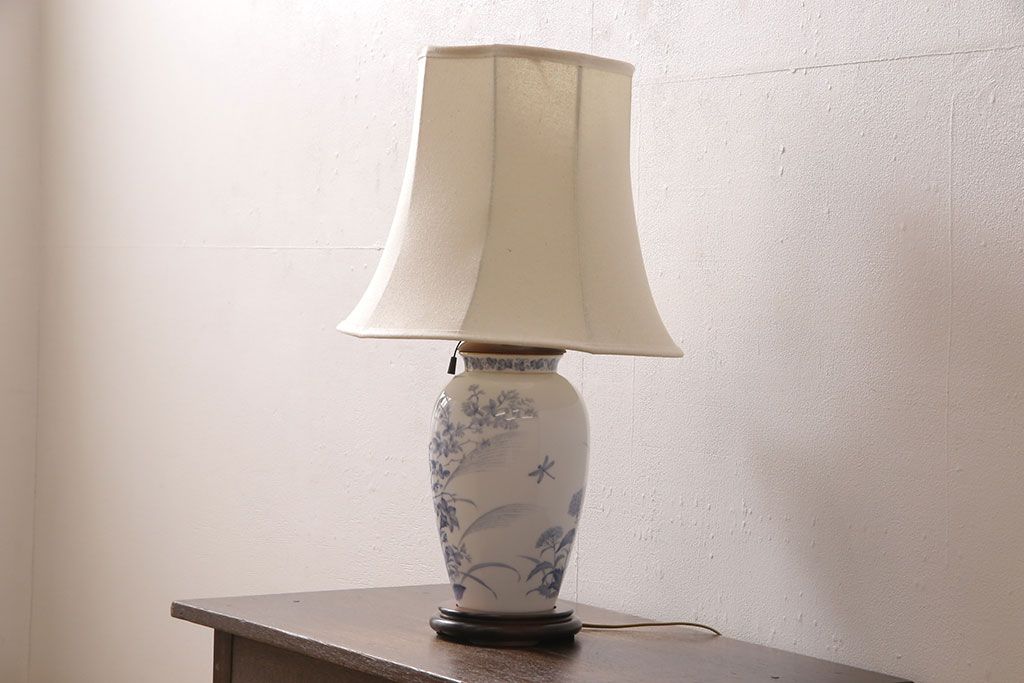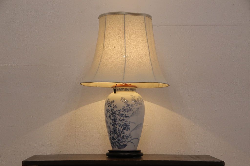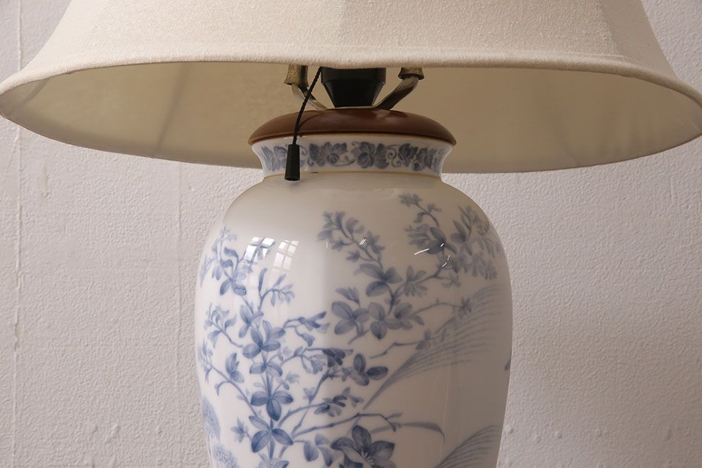 中古 大倉陶園 気品ある佇まいが魅力的なランプスタンド(テーブルスタンド、卓上照明)(R-053346)