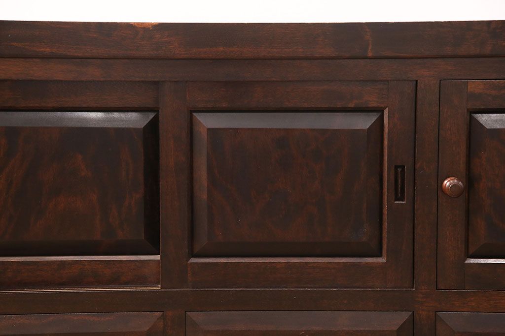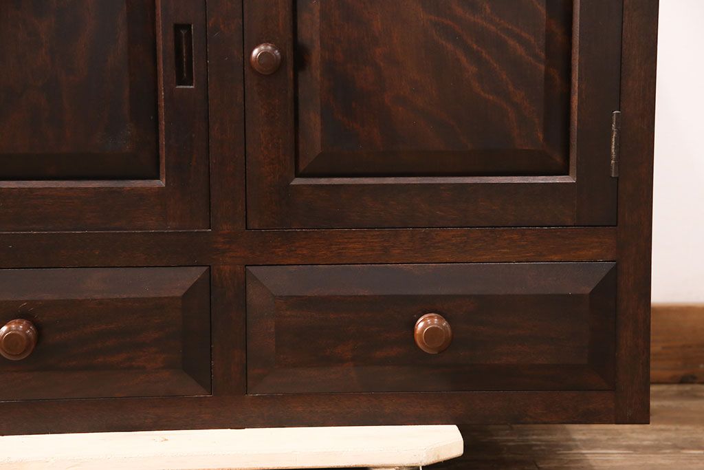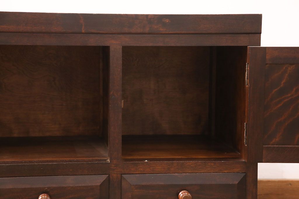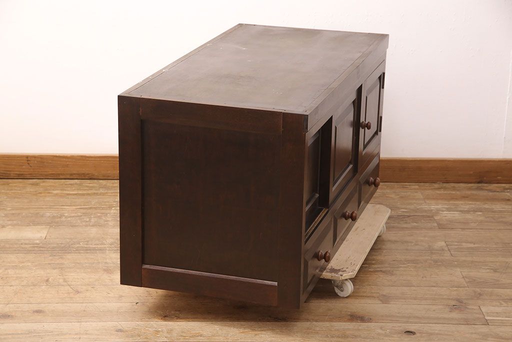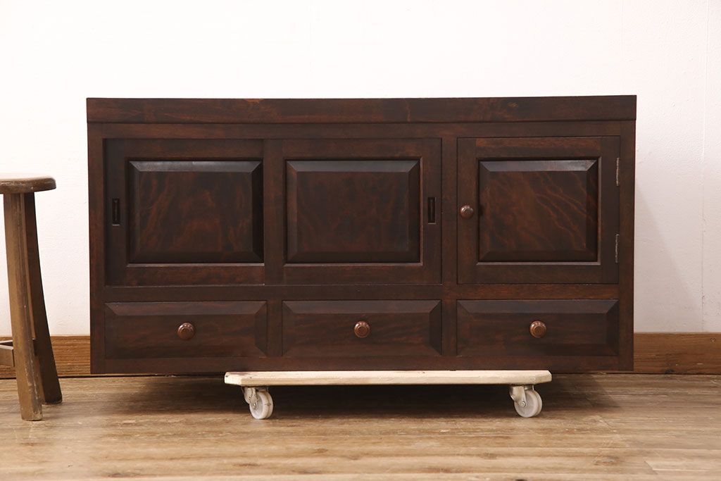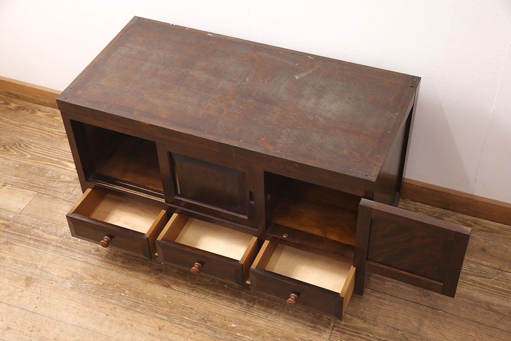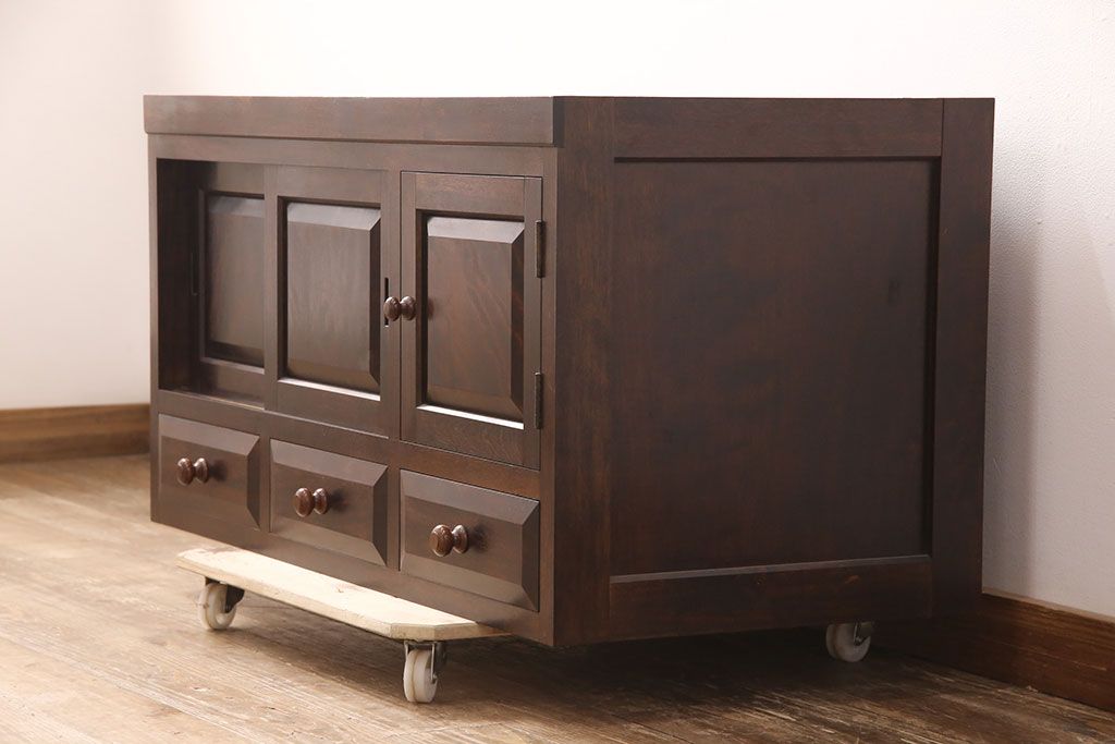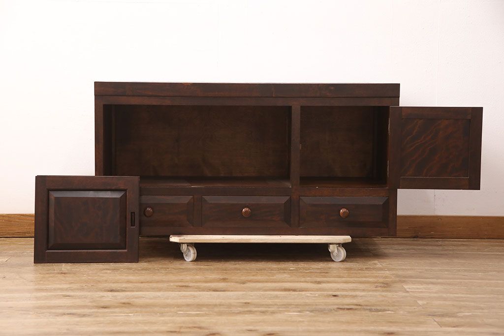 民芸家具 > 中古 松本民芸家具 ヒノキ天板・脚(台輪)付きリメイク 和モダンの空間づくりに活躍するローボード(テレビ台、テレビボード、リビングボード、収納棚)(R-052694)