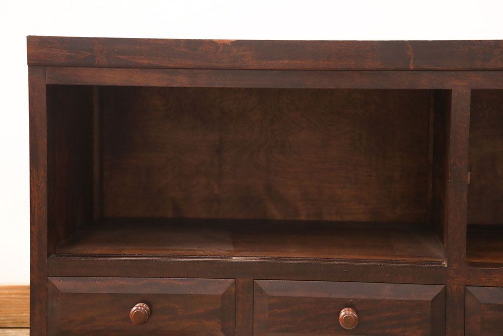 キャビネット・戸棚> テレビ台・ローボード > 中古 松本民芸家具 ヒノキ天板・脚(台輪)付きリメイク 和モダンの空間づくりに活躍するローボード(テレビ台、テレビボード、リビングボード、収納棚)(R-052694)