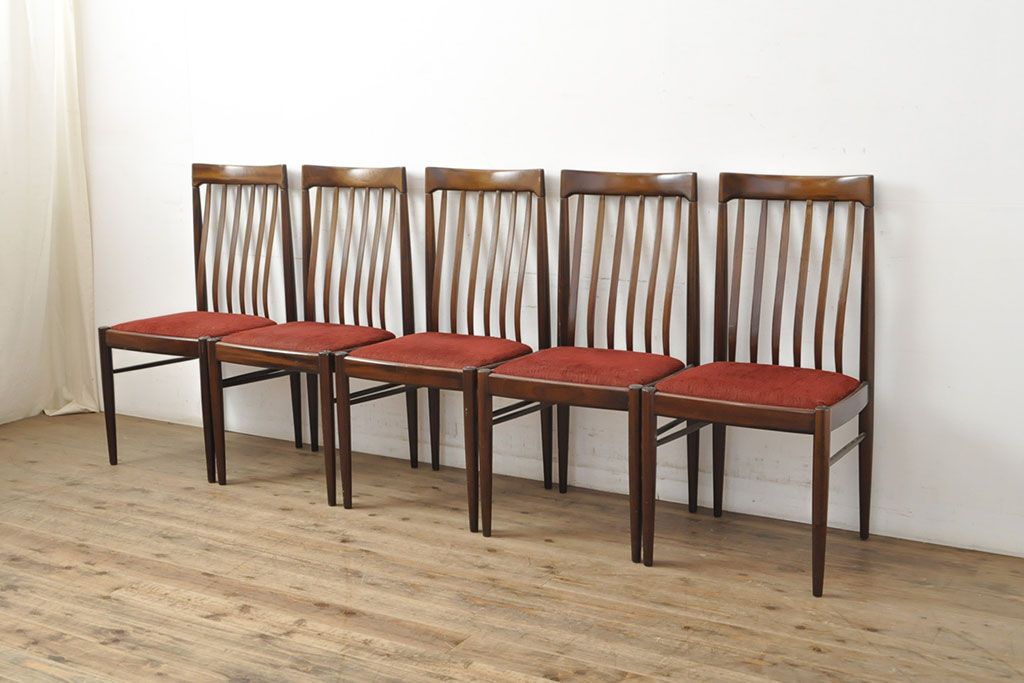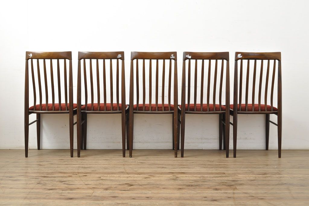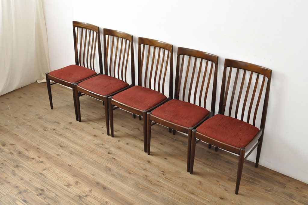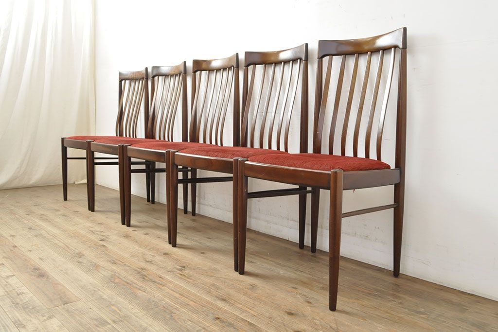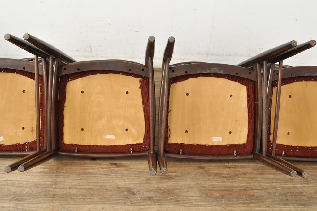 状態が気になる方には現状販売はおすすめできませんので、慎重なご検討をお願いいたします。北欧ビンテージ バーチ材 落ち着いた色合いがクラシカルな雰囲気を醸し出すダイニングチェア5脚セット(椅子、イス、ヴィンテージ)(R-050120)です。