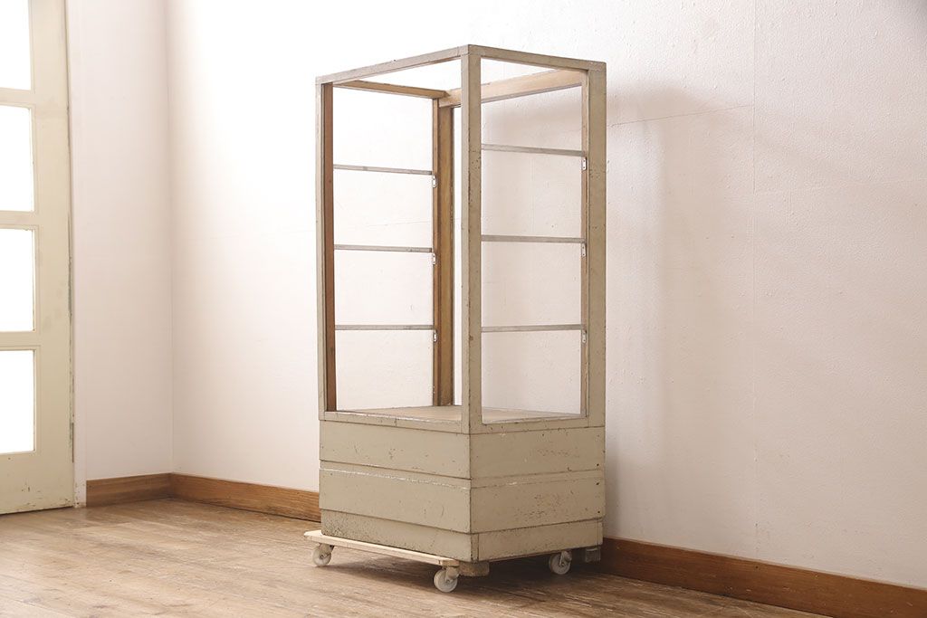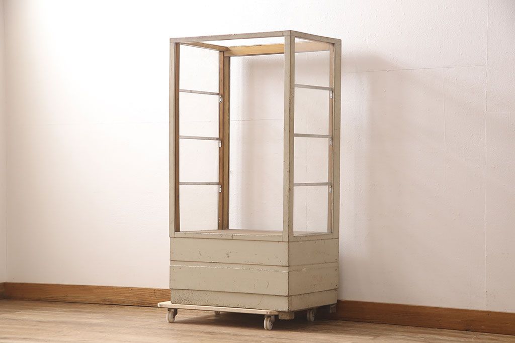 お問い合わせいただければ、優先してアップいたします。和製アンティーク シンプルなデザインで使い勝手のいい縦型ガラスケース(ショーケース、店舗什器)(R-052893)です。
