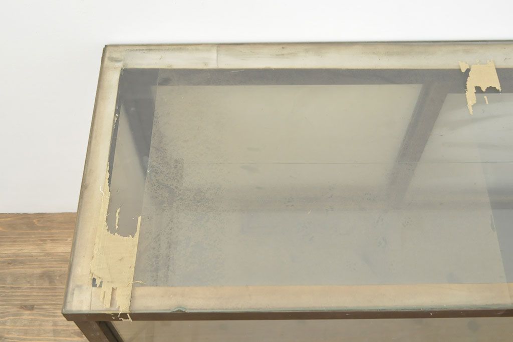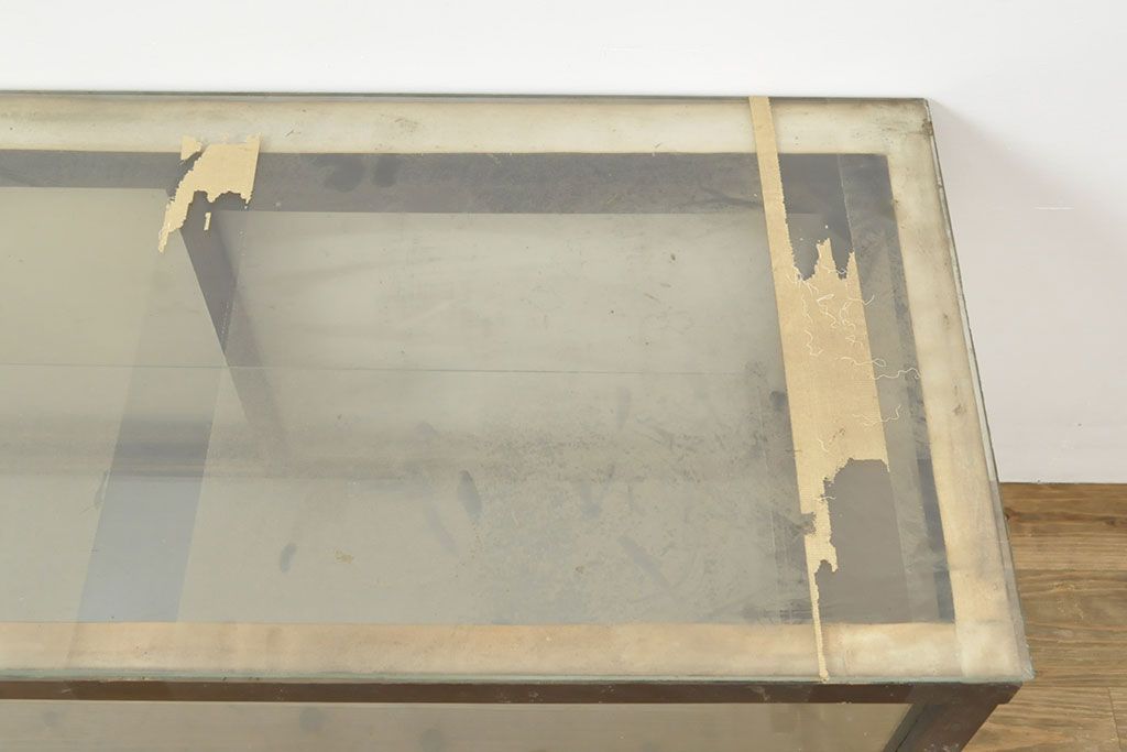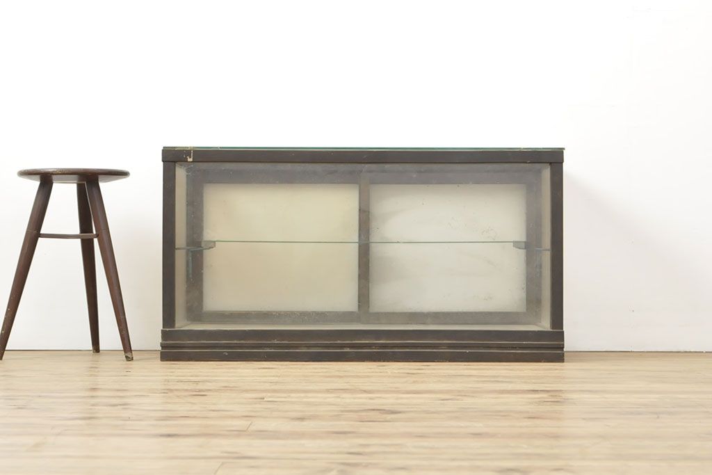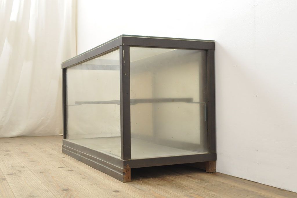 お問い合わせいただければ、優先してアップいたします。和製アンティーク シンプルなデザインで取り入れやすい横長ガラスケース(ショーケース、店舗什器)(R-052987)です。