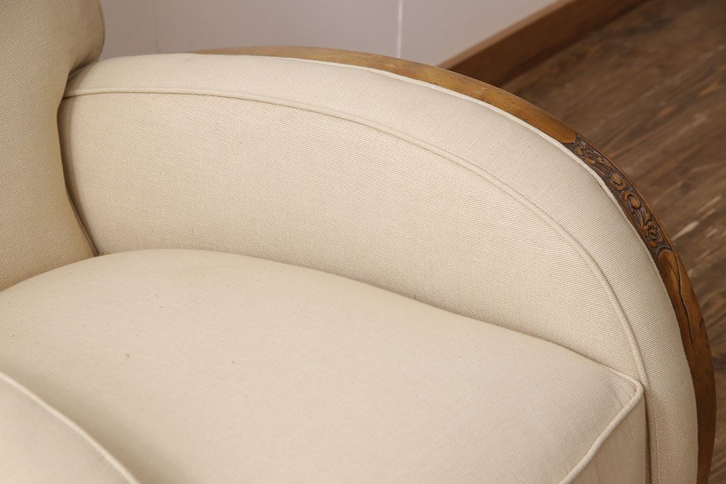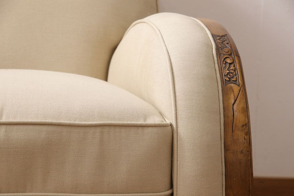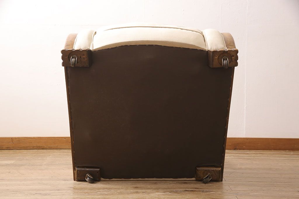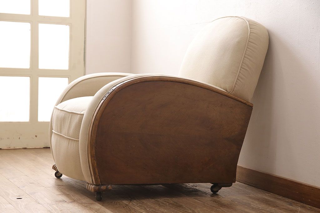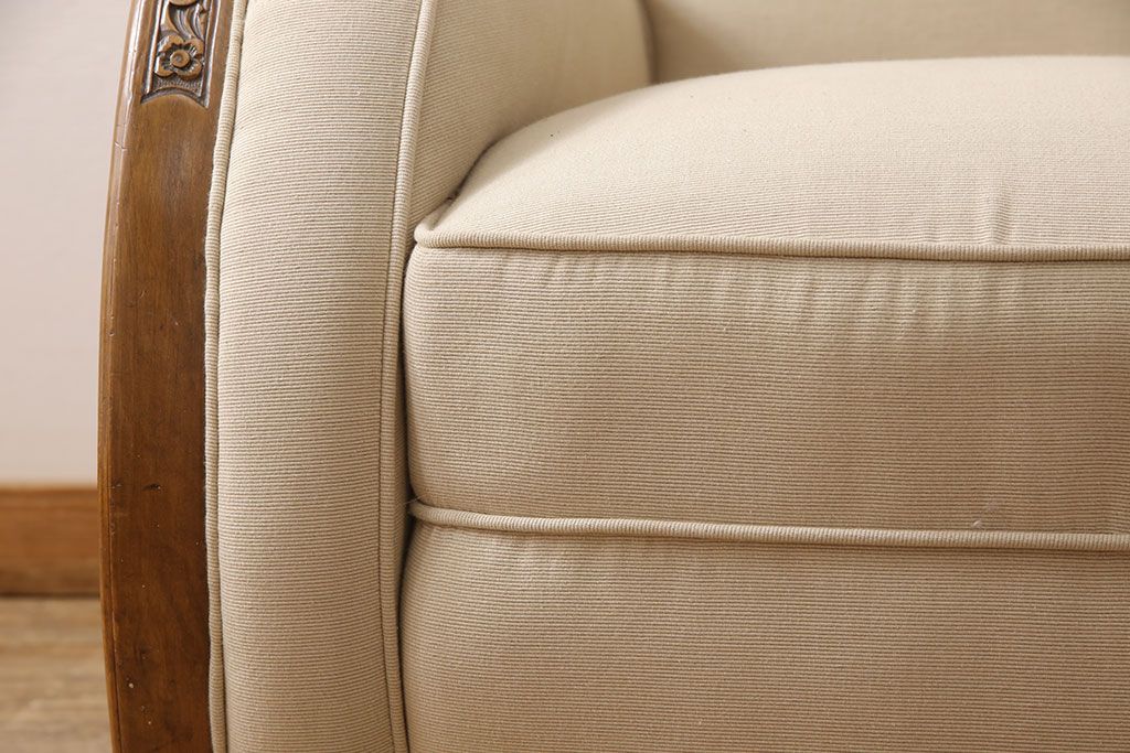 椅子・ベンチ> アームチェア > イギリスアンティーク 美品 高級品 脚やアームの凝ったつくりと、丸みを帯びたフォルムが目を引く1人掛けソファ(一人掛けソファ、アームチェア)(R-053356)