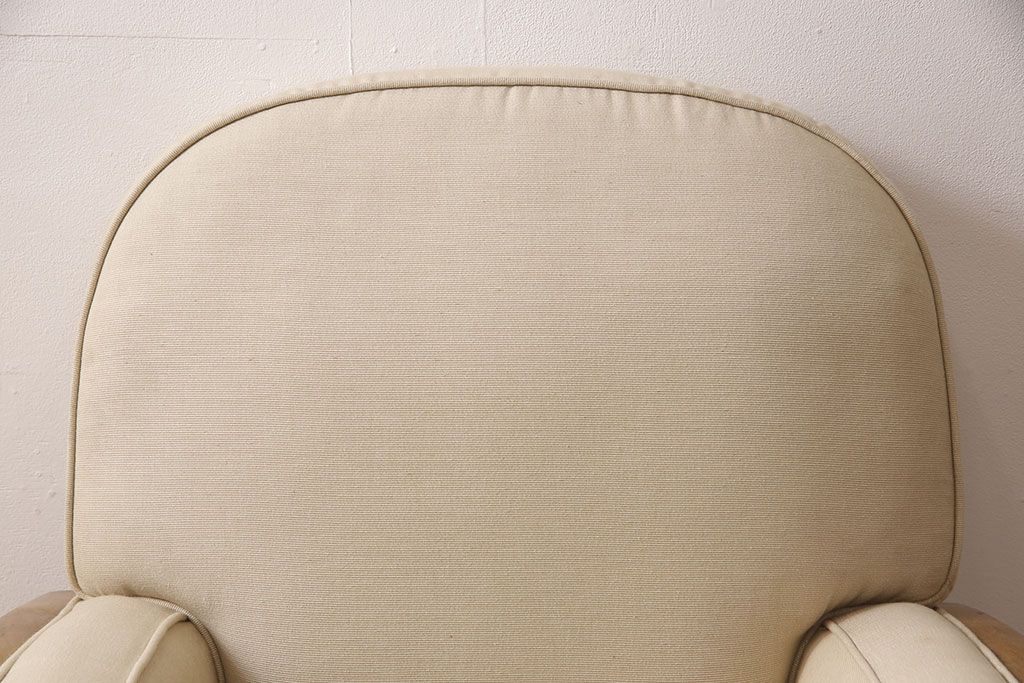 イギリスアンティーク 美品 高級品 脚やアームの凝ったつくりと、丸みを帯びたフォルムが目を引く1人掛けソファ(一人掛けソファ、アームチェア)(R-053356)