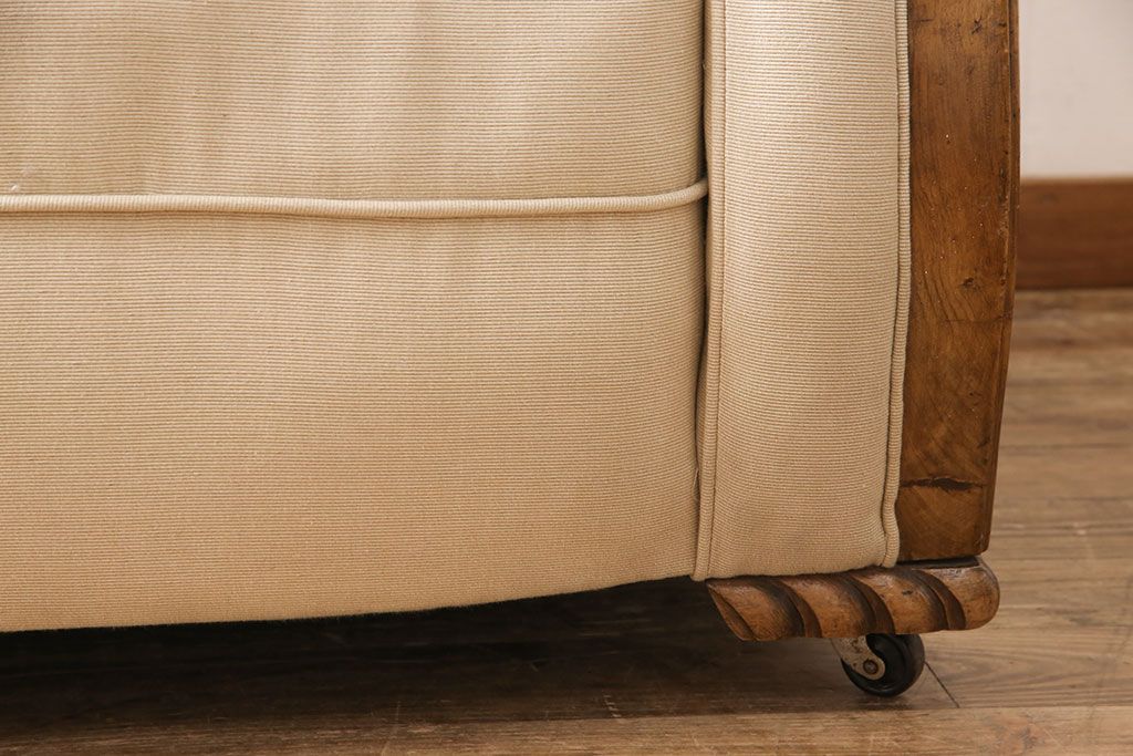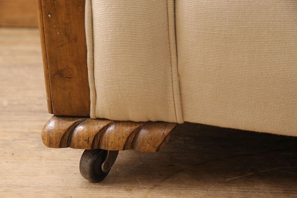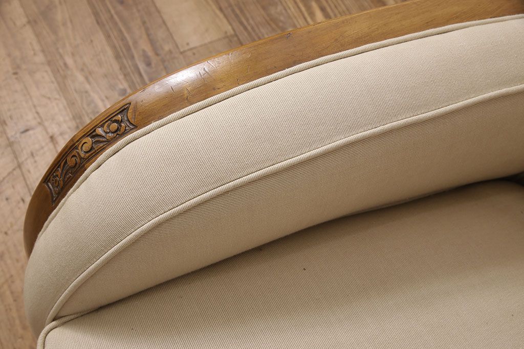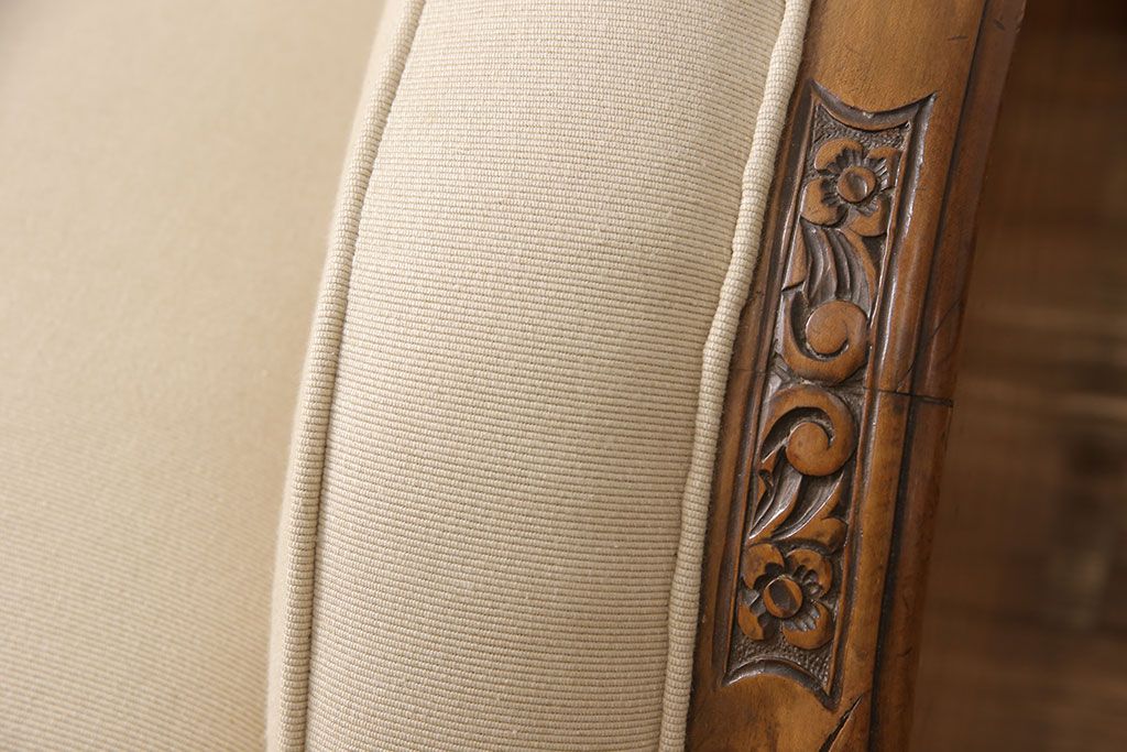 ソファ> 1人掛けソファ > イギリスアンティーク 美品 高級品 脚やアームの凝ったつくりと、丸みを帯びたフォルムが目を引く1人掛けソファ(一人掛けソファ、アームチェア)(R-053356)
