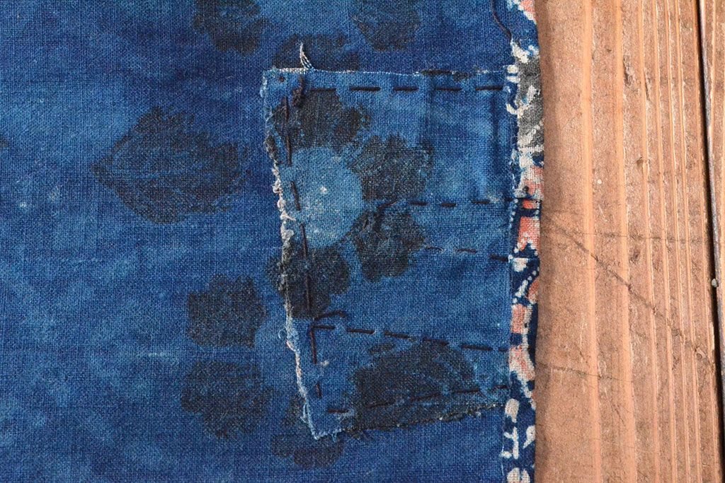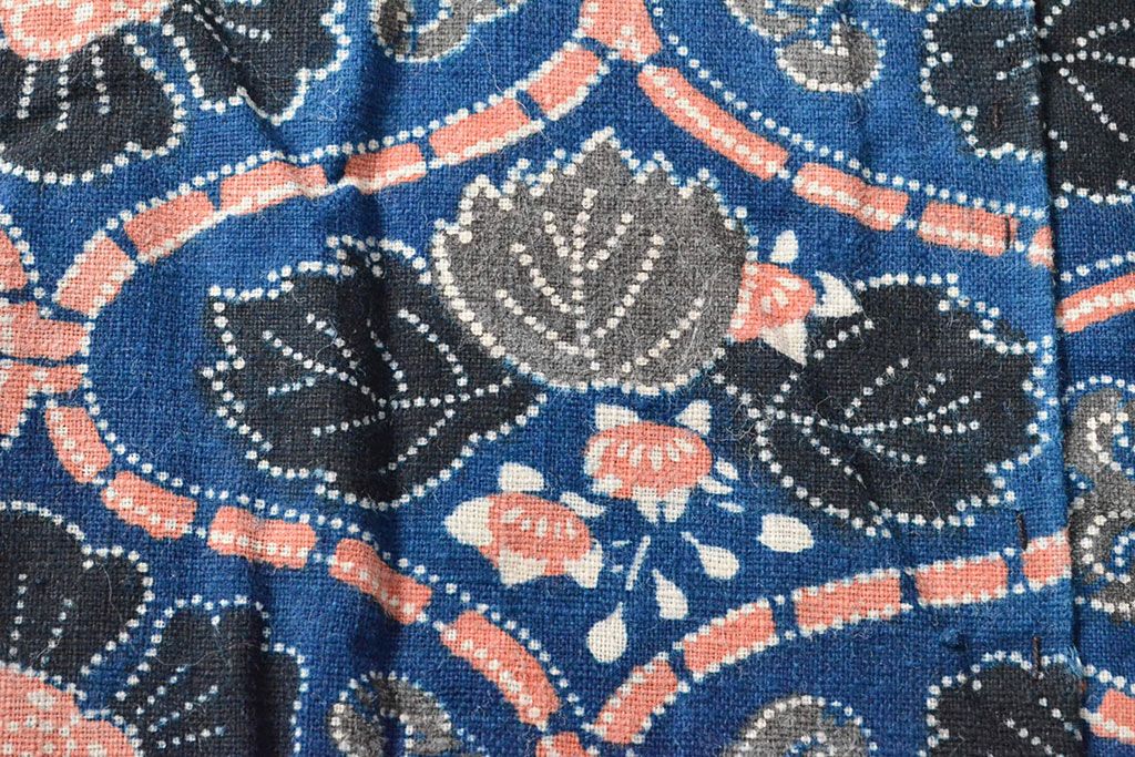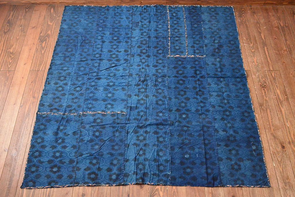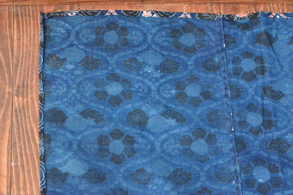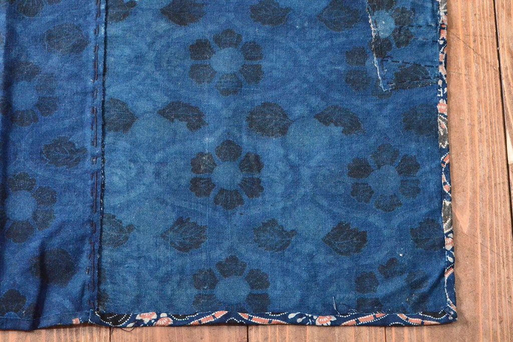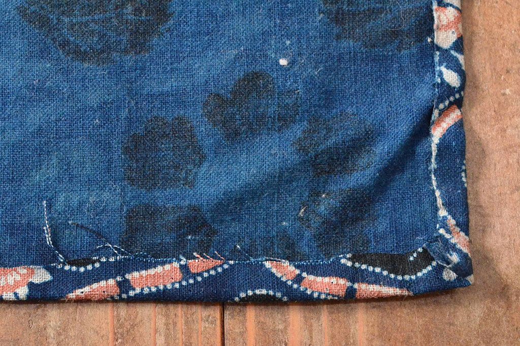 明治期 赤入り藍型染木綿古布(布団皮、藍染)(R-052913)