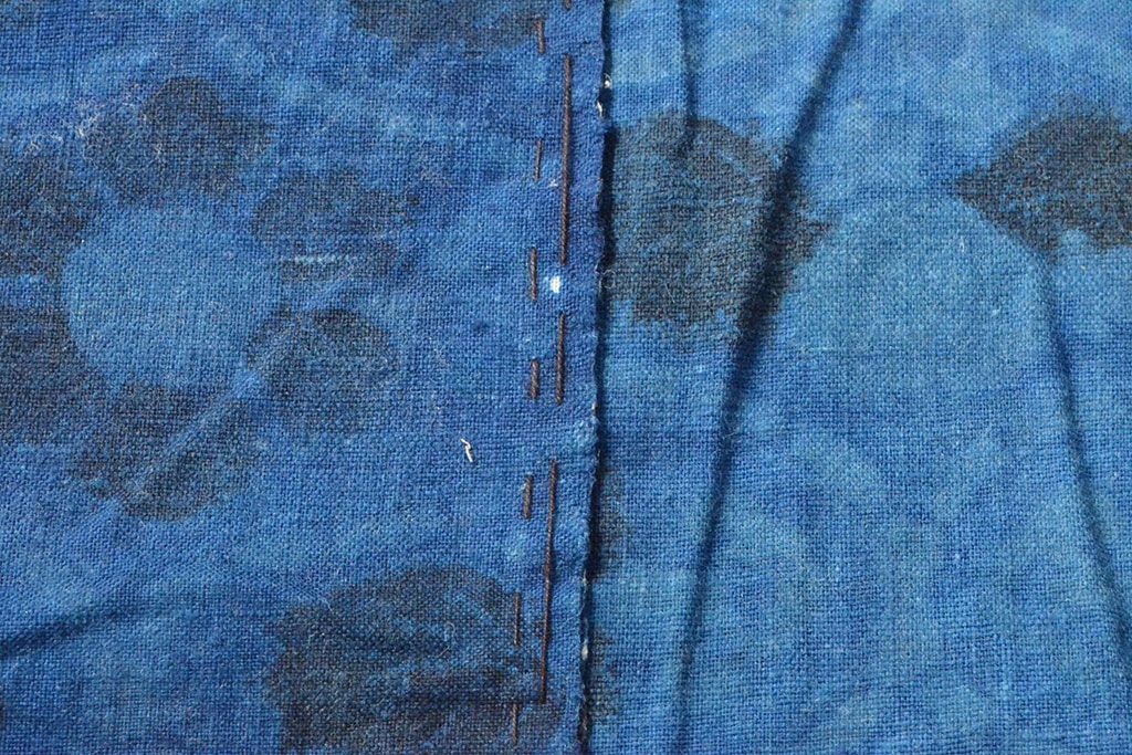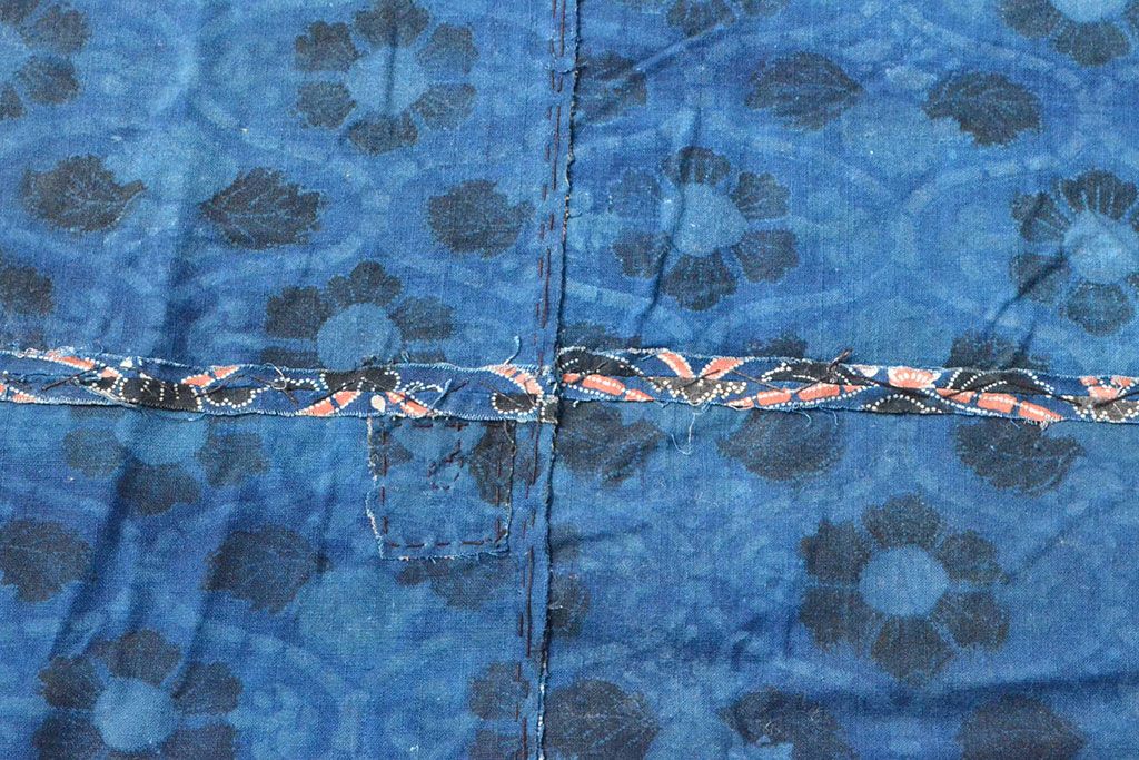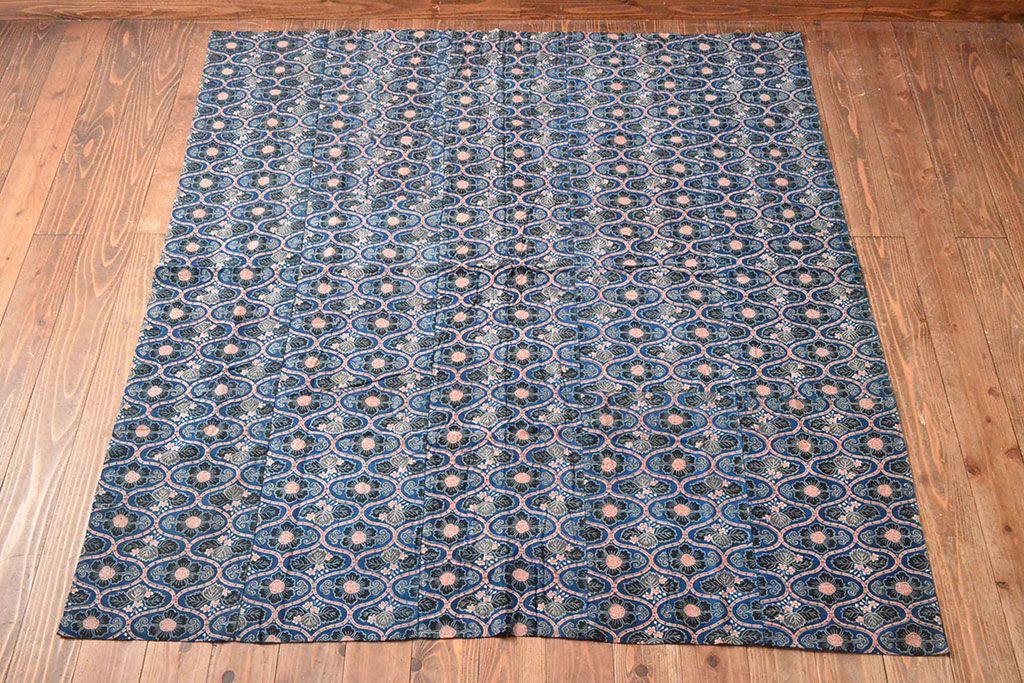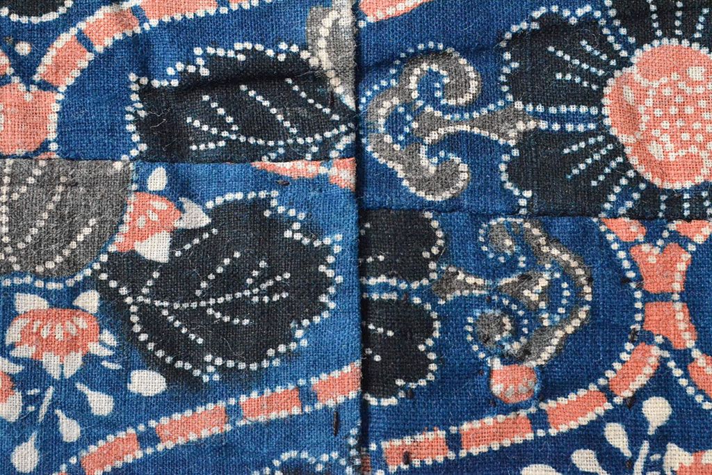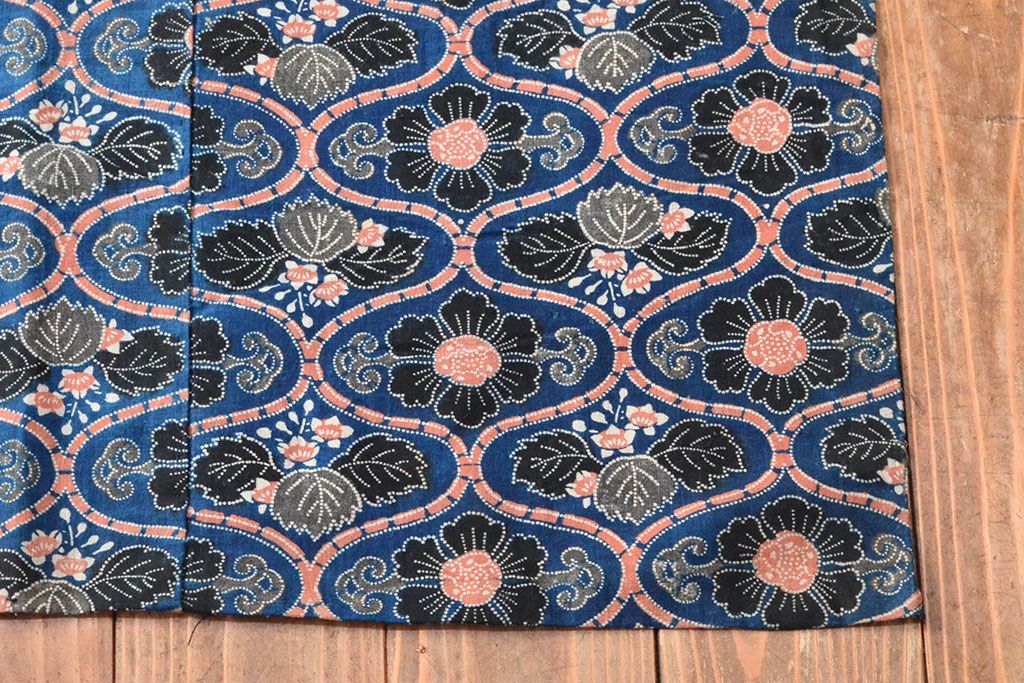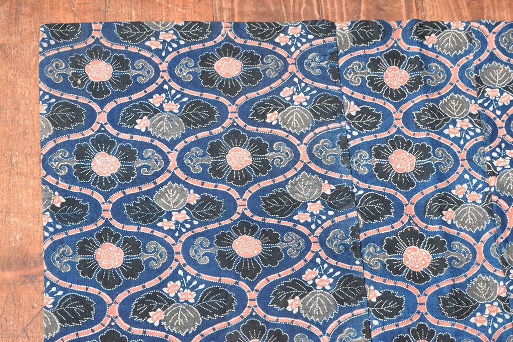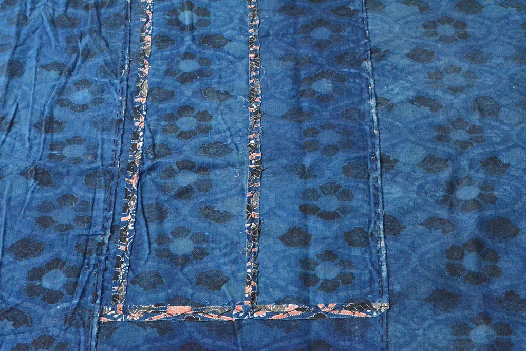 明治期 赤入り藍型染木綿古布(布団皮、藍染)(R-052913)
