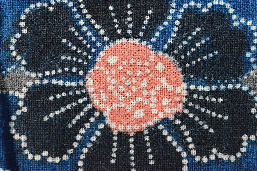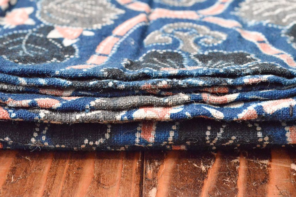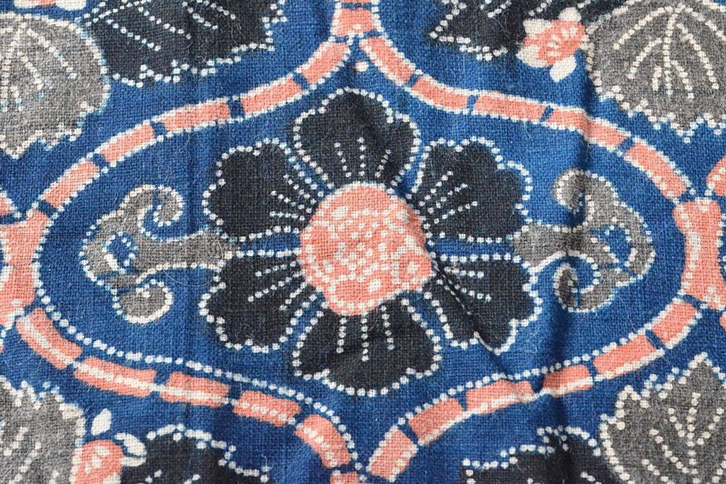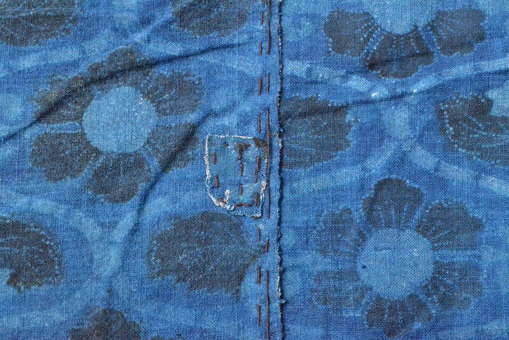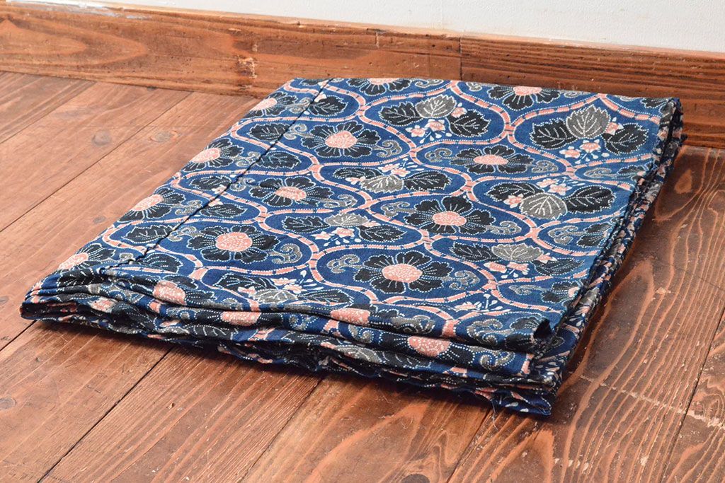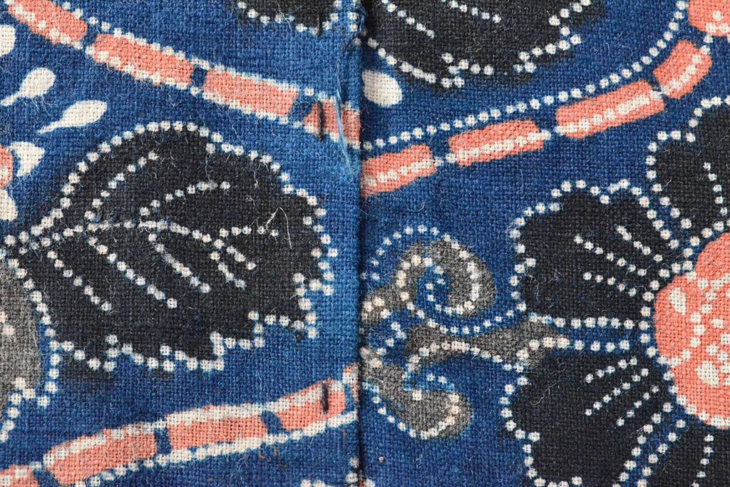 明治期 赤入り藍型染木綿古布(布団皮、藍染)(R-052913)