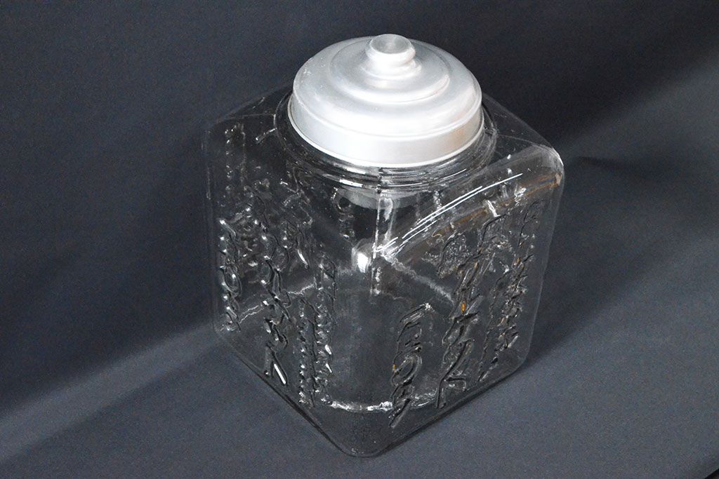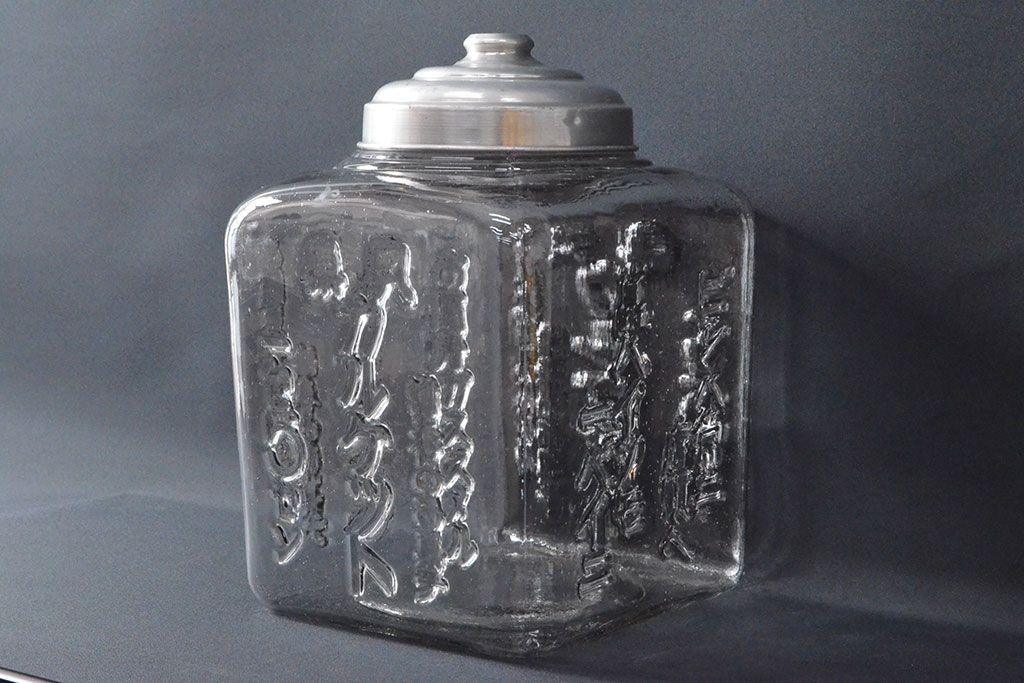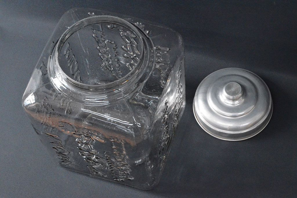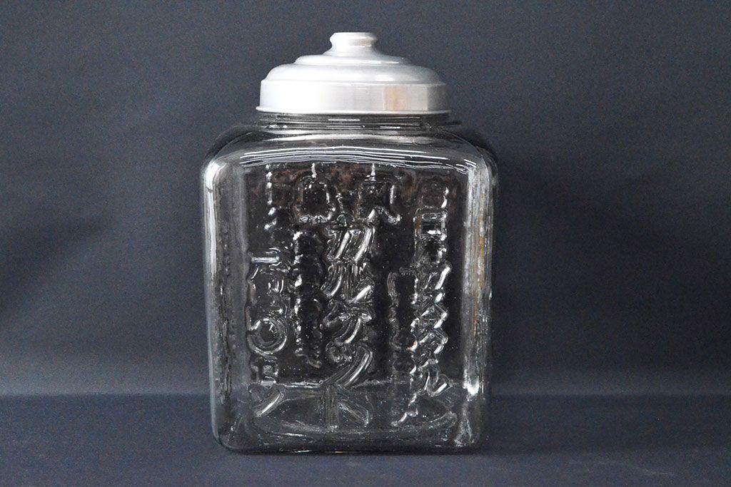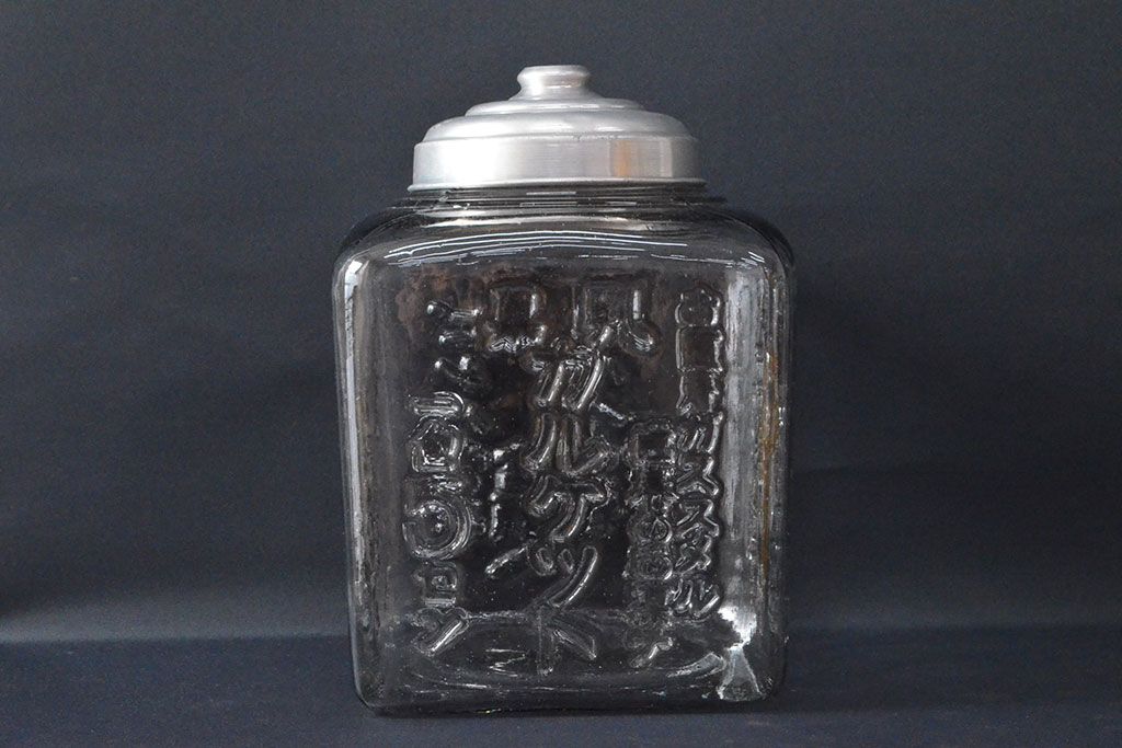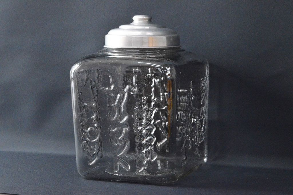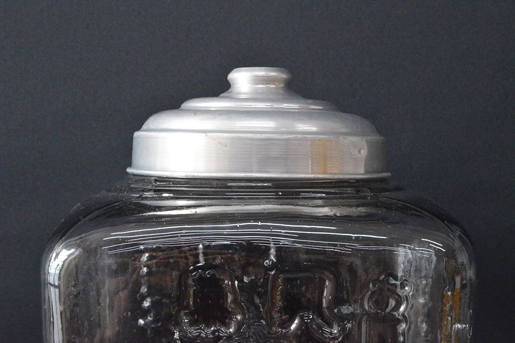 ラフジュ工房> 洋食器・キッチン用品> キャニスター > 昭和レトロ 乳菓カルケット ガラス瓶(エンボス、アルミ蓋、ガラスビン、小物収納、ディスプレイ)(R-052944)
