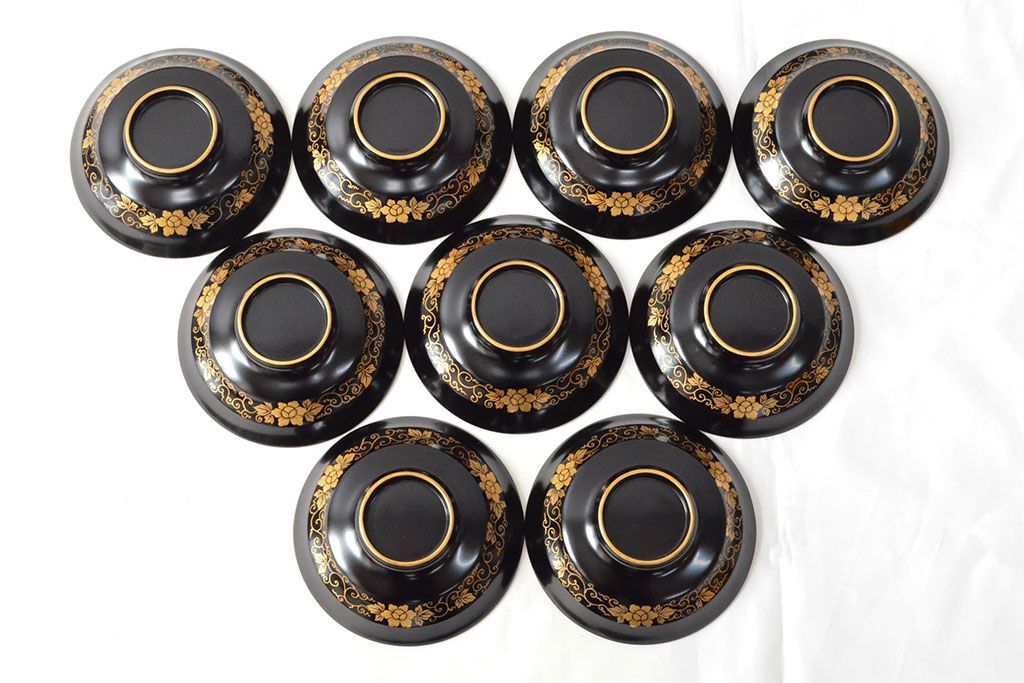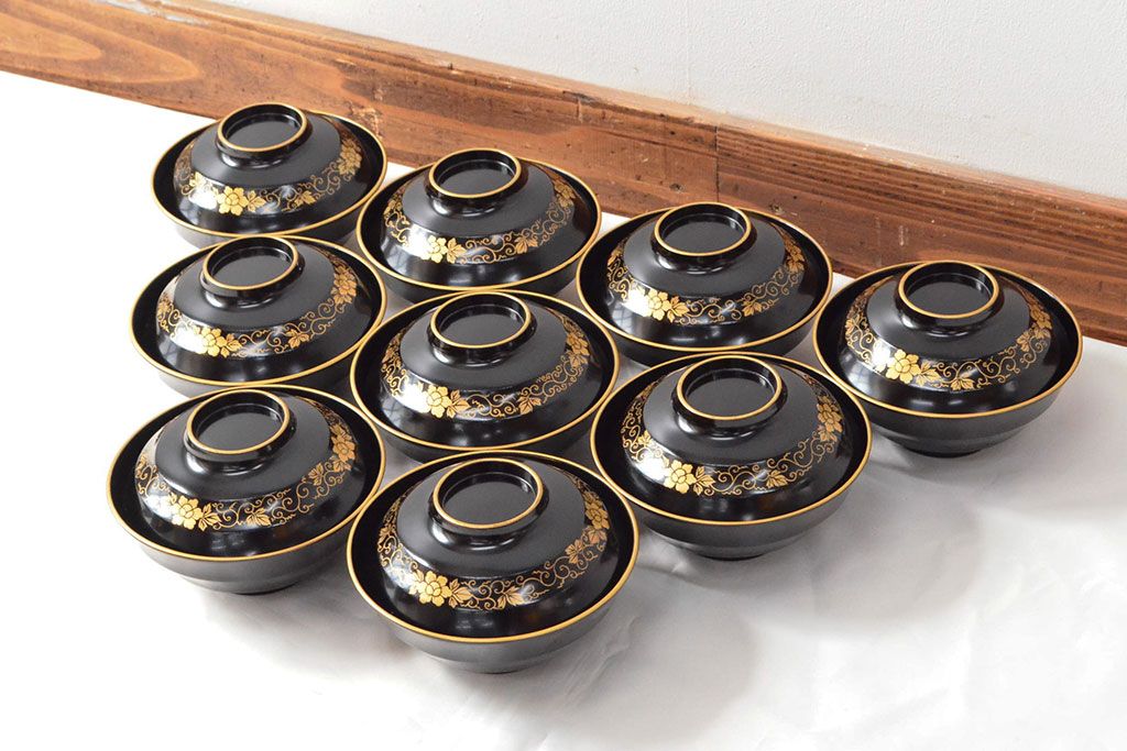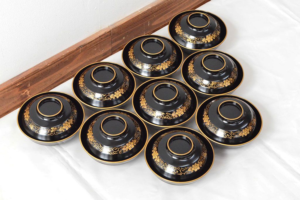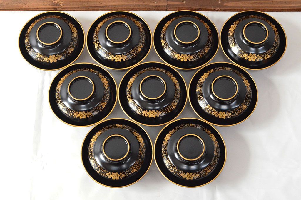 ラフジュ工房> 和食器・茶道具> お椀・茶碗 > 大正〜昭和初期 黒漆金蒔絵 木製椀9客(お椀、漆器)(R-052946)