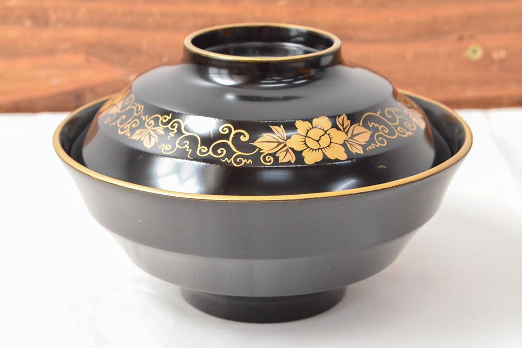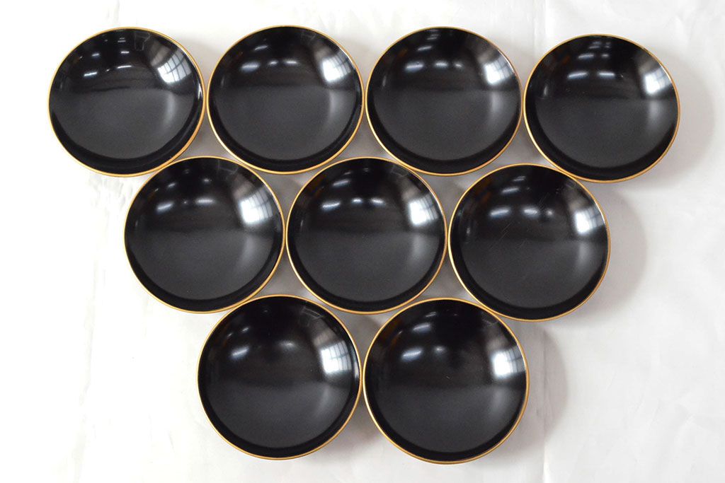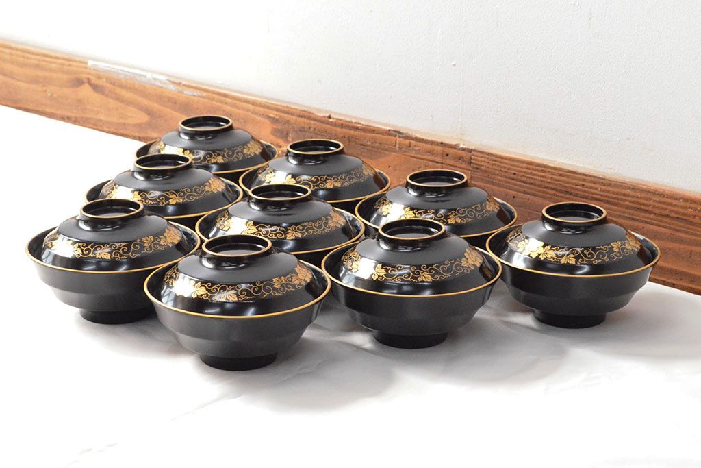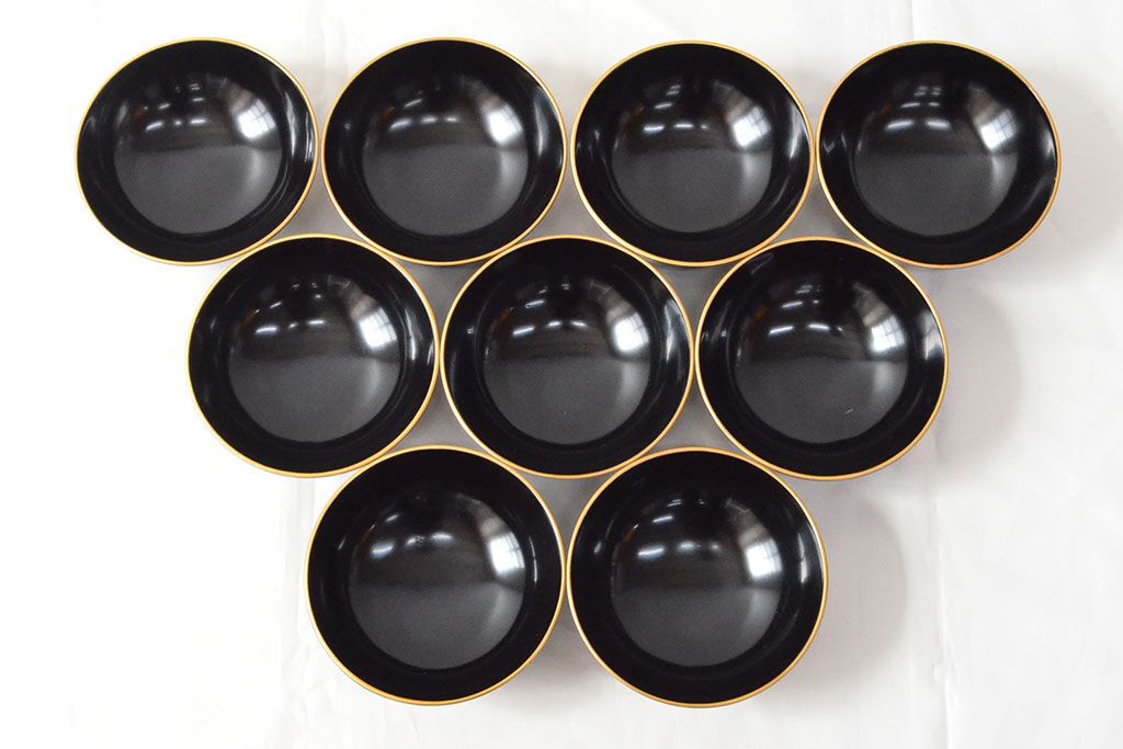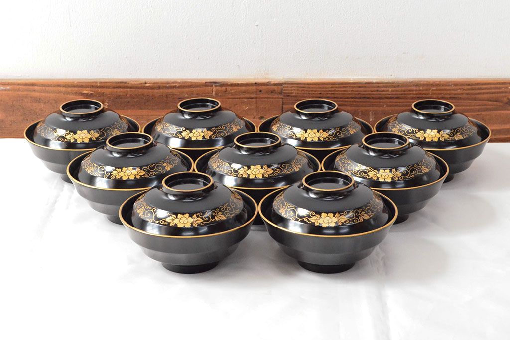 ラフジュ工房> 和食器・茶道具> お椀・茶碗 > 大正〜昭和初期 黒漆金蒔絵 木製椀9客(お椀、漆器)(R-052946)