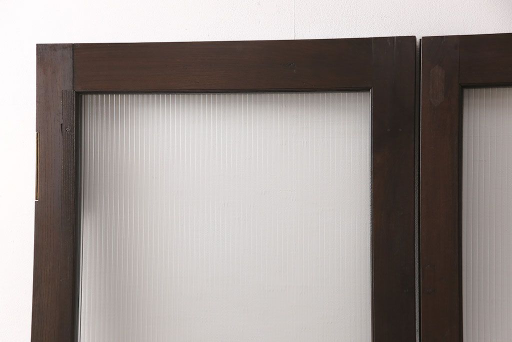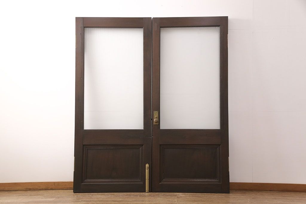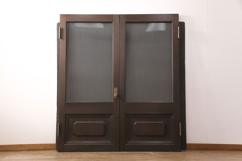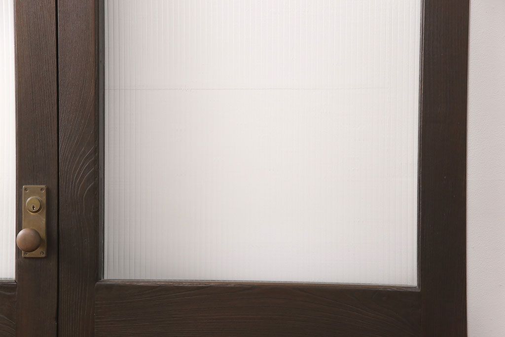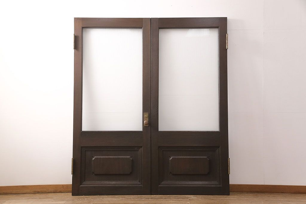 ドア・建具> 2枚・3枚セット > 明治大正期のドアをリペア&カスタム!設置場所に合わせてリサイズ。クリアガラスからモールガラスへ変更。現状の色味そのままで仕上げ。(木製扉、建具)
