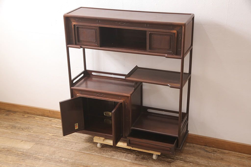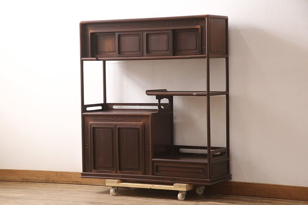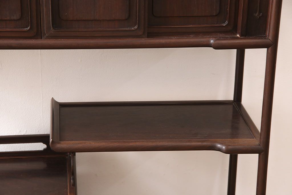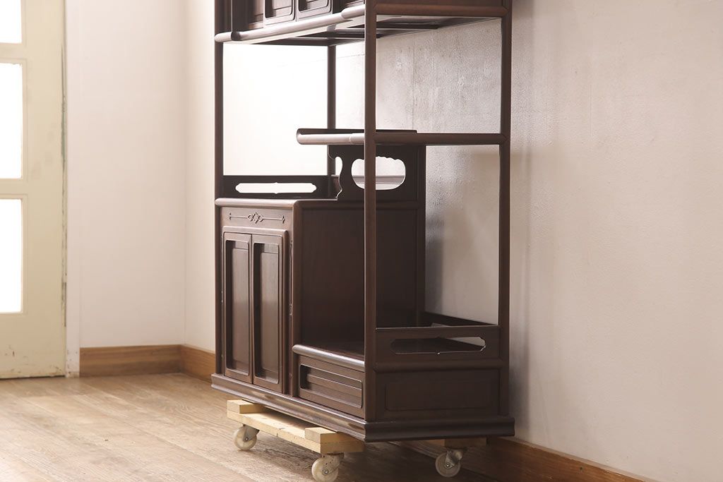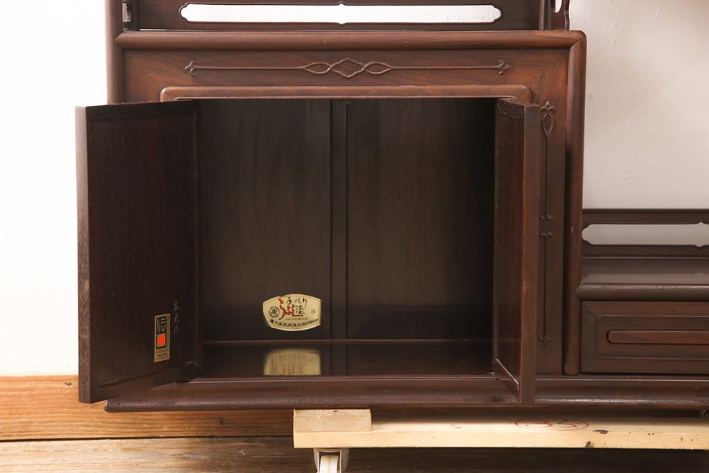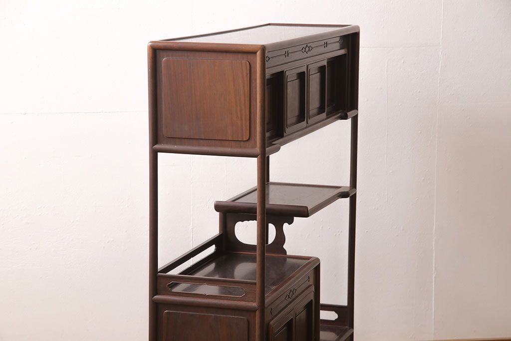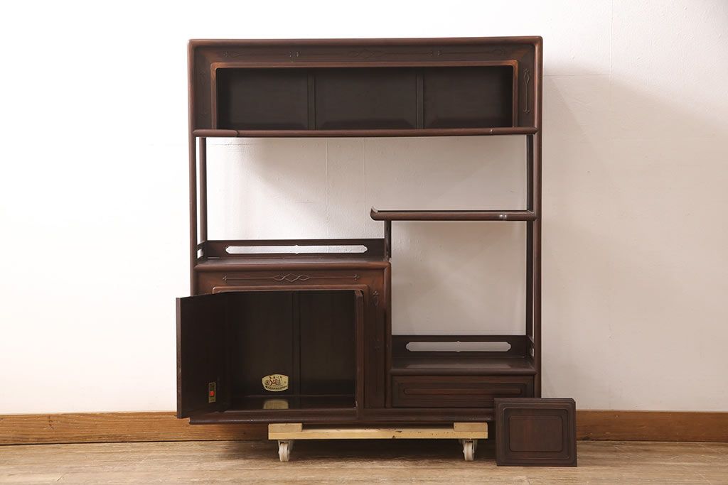 和箪笥 > 中古 伝統工芸品 大阪唐木指物 立花作 カリン(花梨)材 漆塗り 格式高い和の空間づくりにおすすめな飾り棚(茶棚、収納棚、戸棚)(R-053397)