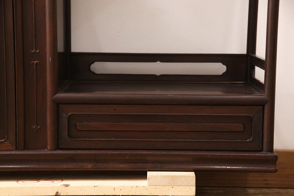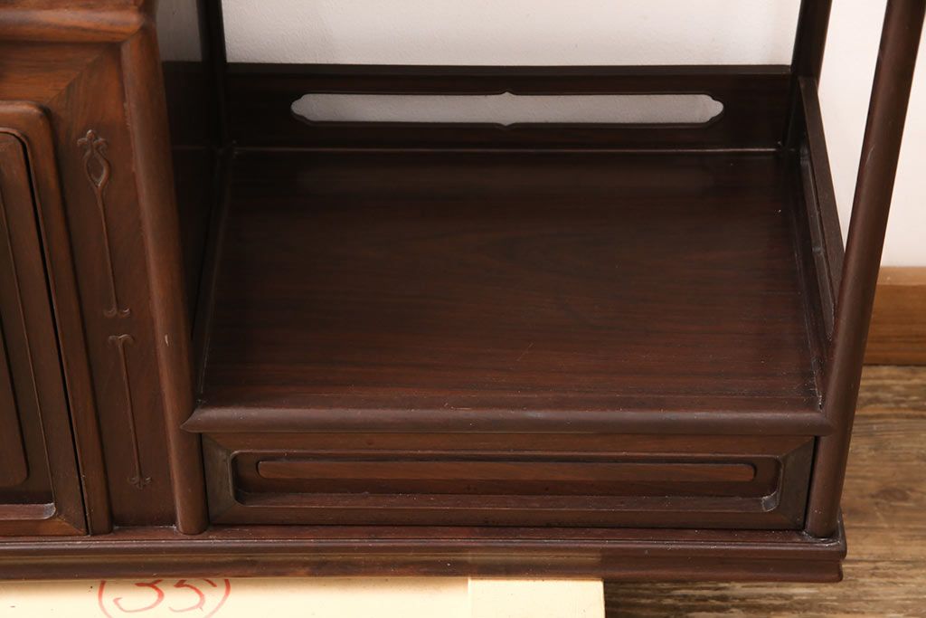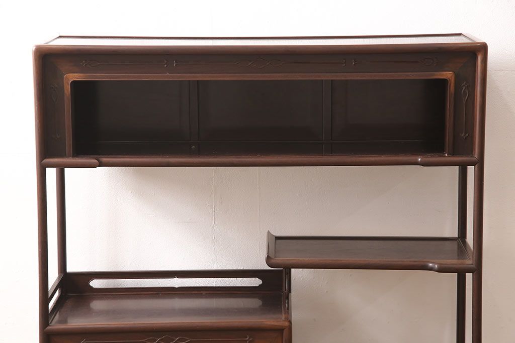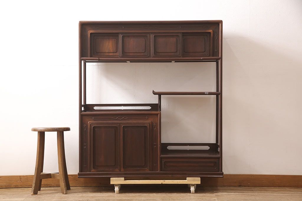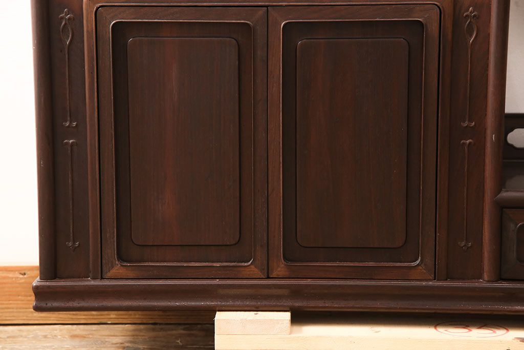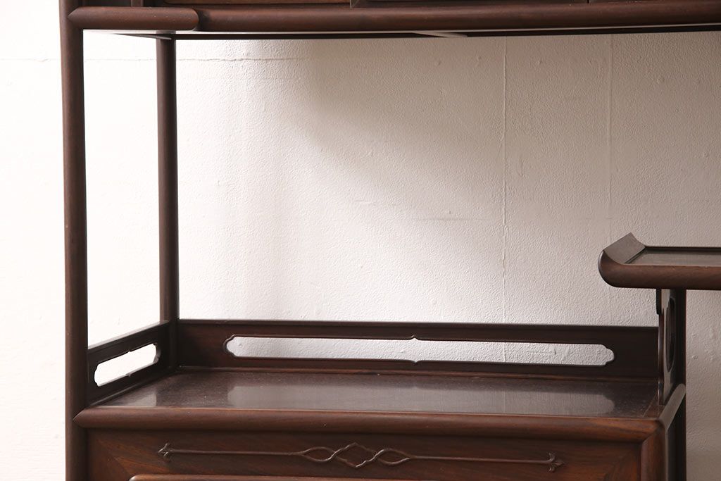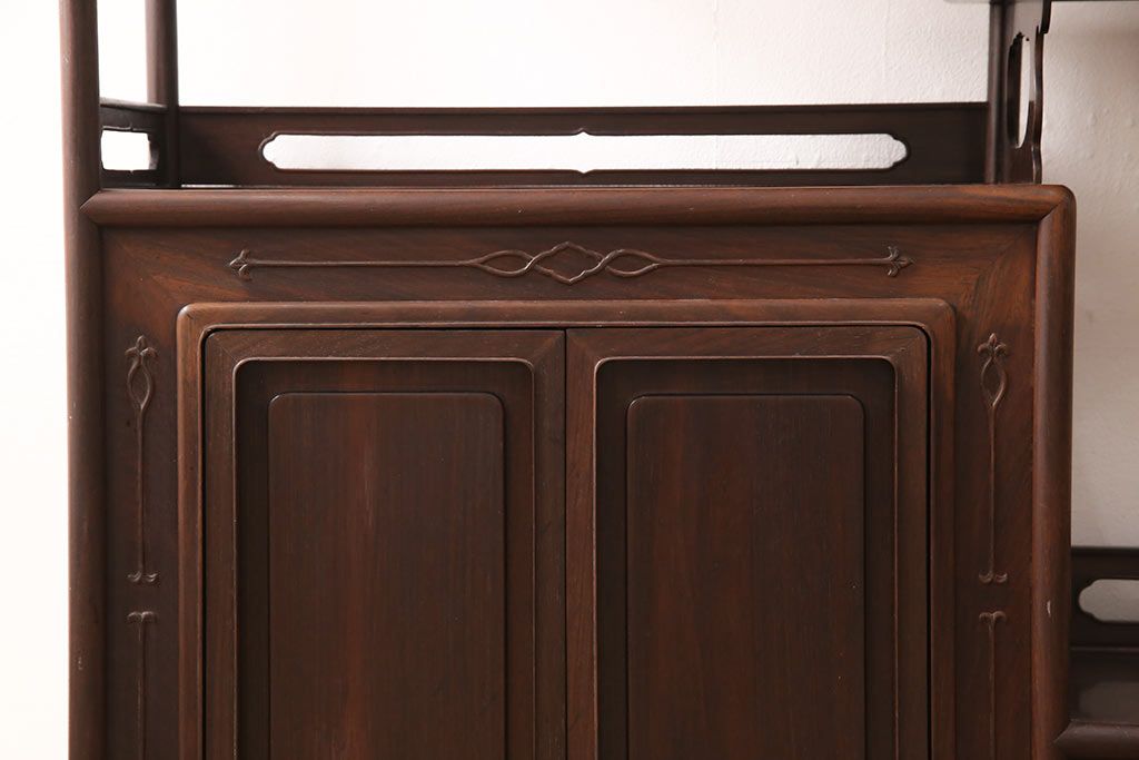 和箪笥 > 中古 伝統工芸品 大阪唐木指物 立花作 カリン(花梨)材 漆塗り 格式高い和の空間づくりにおすすめな飾り棚(茶棚、収納棚、戸棚)(R-053397)