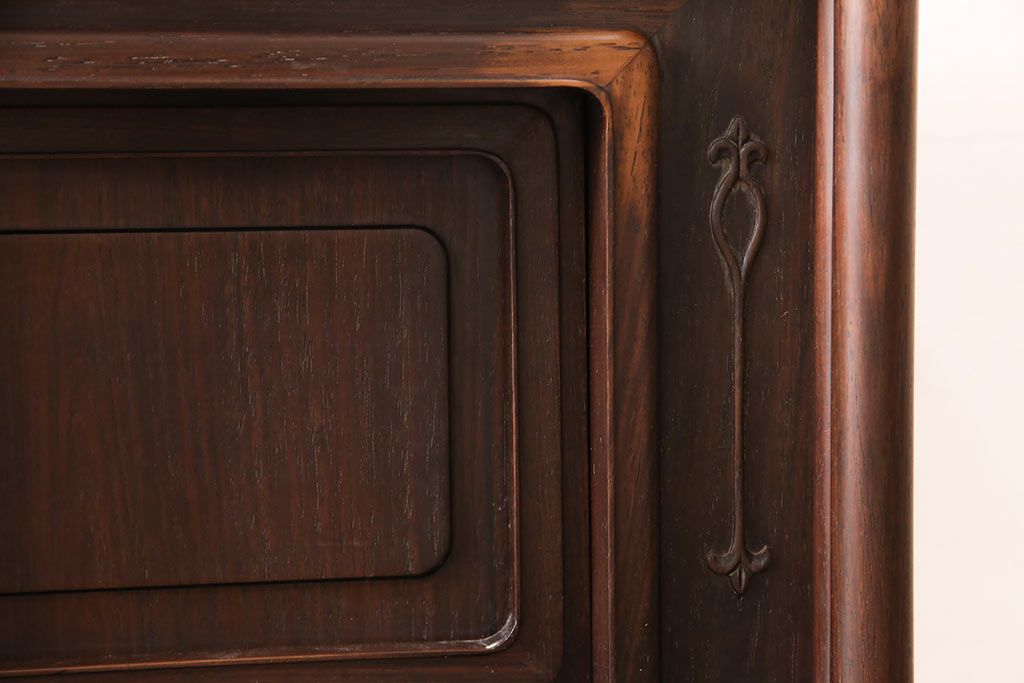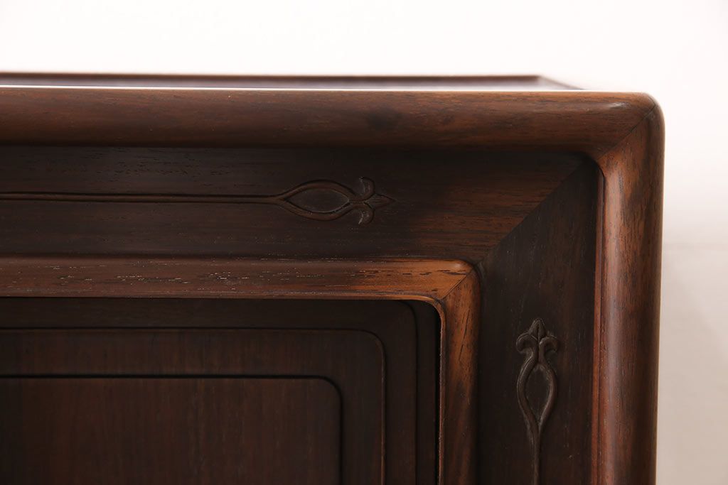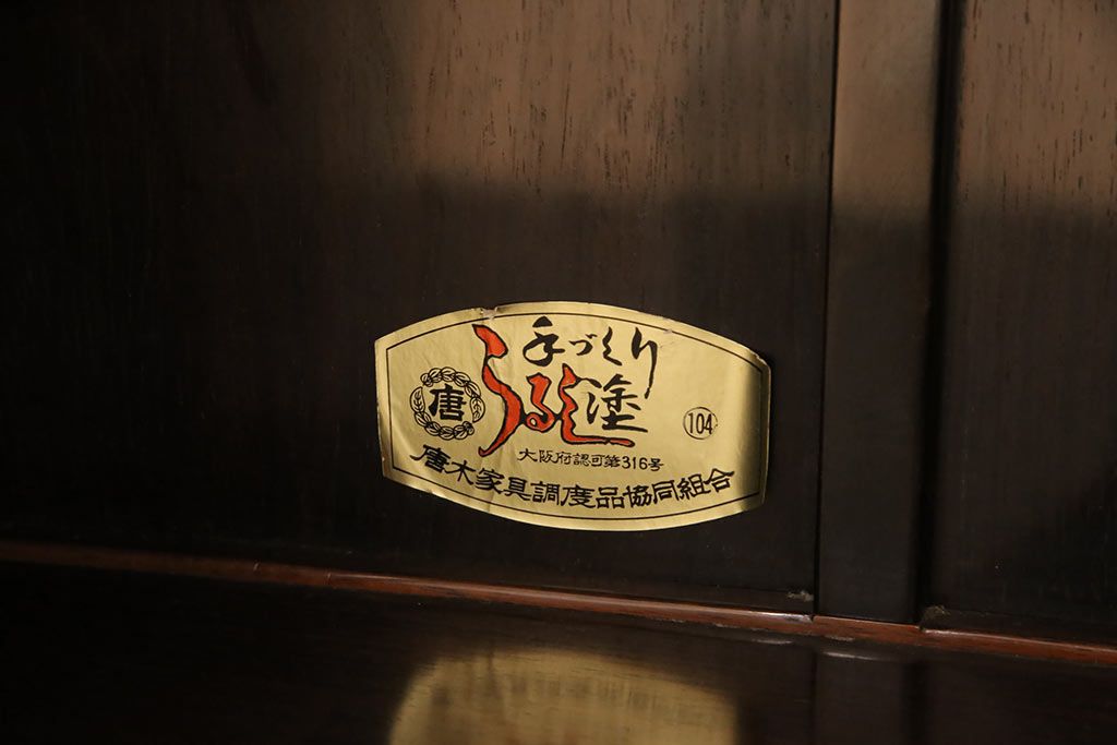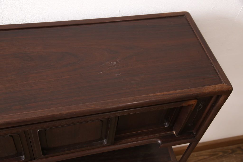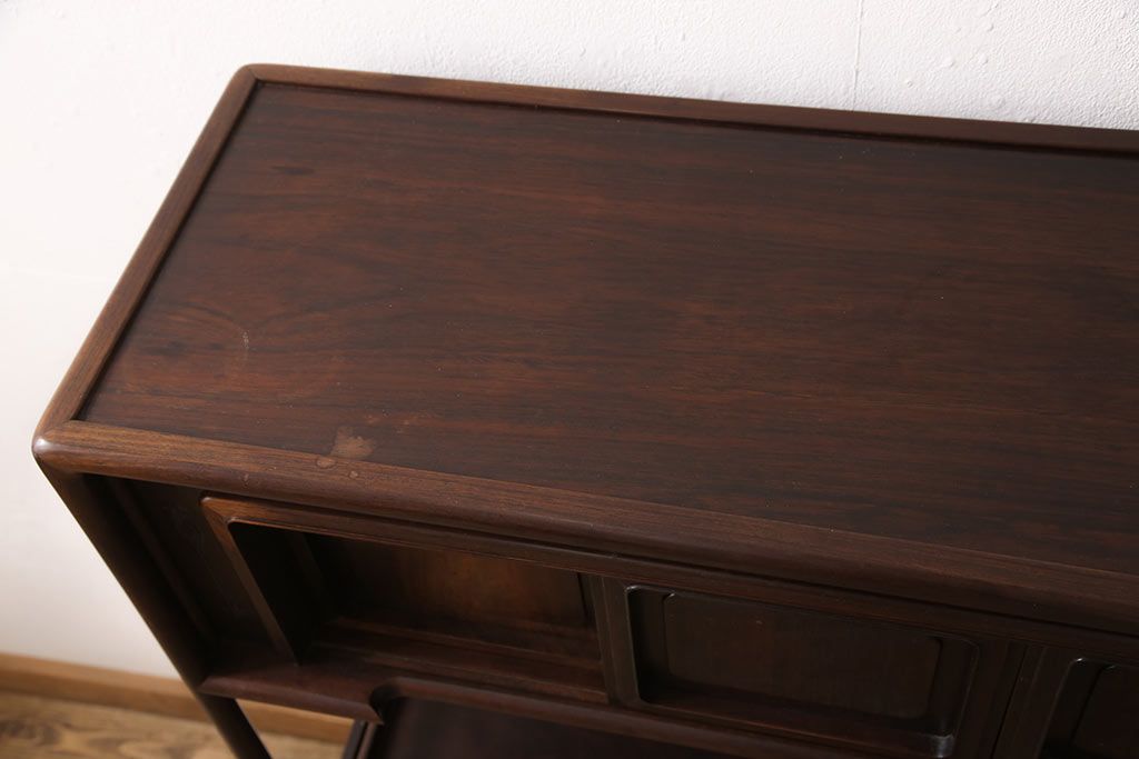 和箪笥> 茶箪笥・茶棚 > 中古 伝統工芸品 大阪唐木指物 立花作 カリン(花梨)材 漆塗り 格式高い和の空間づくりにおすすめな飾り棚(茶棚、収納棚、戸棚)(R-053397)