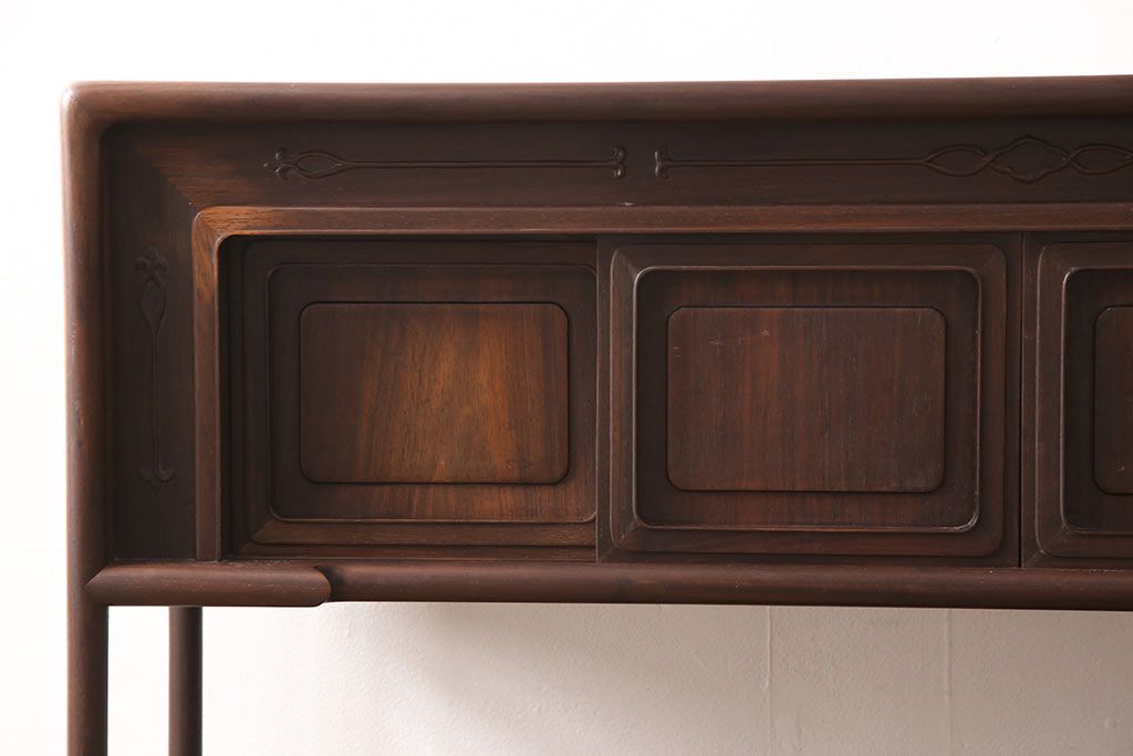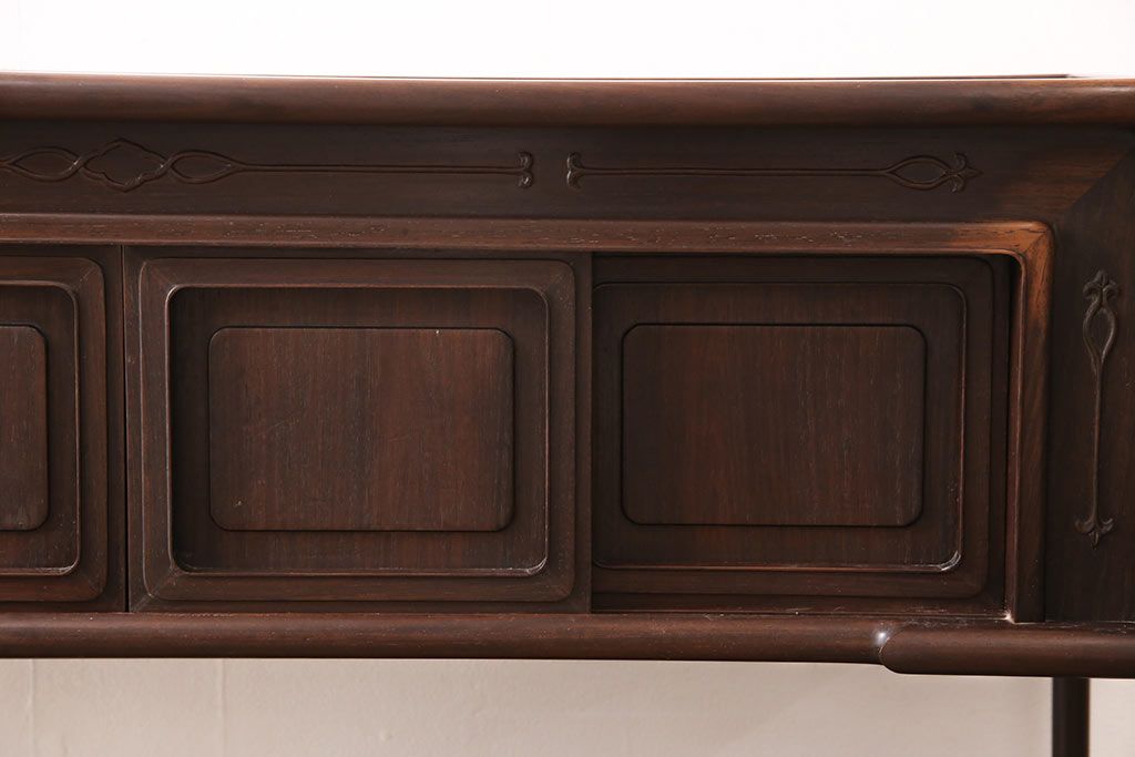 中古 伝統工芸品 大阪唐木指物 立花作 カリン(花梨)材 漆塗り 格式高い和の空間づくりにおすすめな飾り棚(茶棚、収納棚、戸棚)(R-053397)