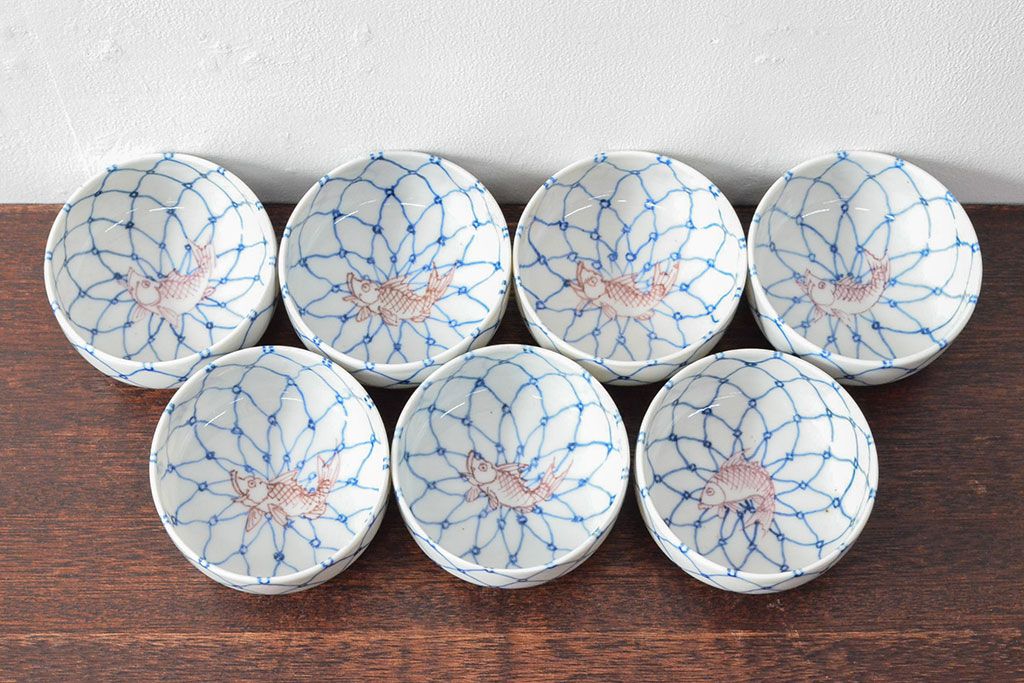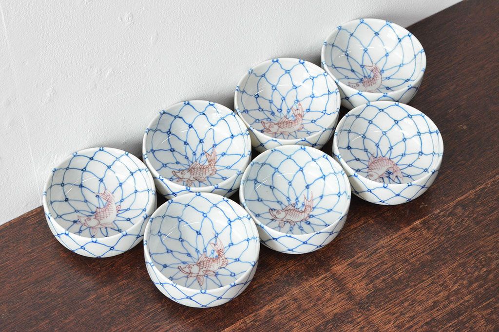 ラフジュ工房> 和食器・茶道具 > 大日本米禽製 鯉の図 染付湯呑7客セット(茶道具、和食器)(R-052851)