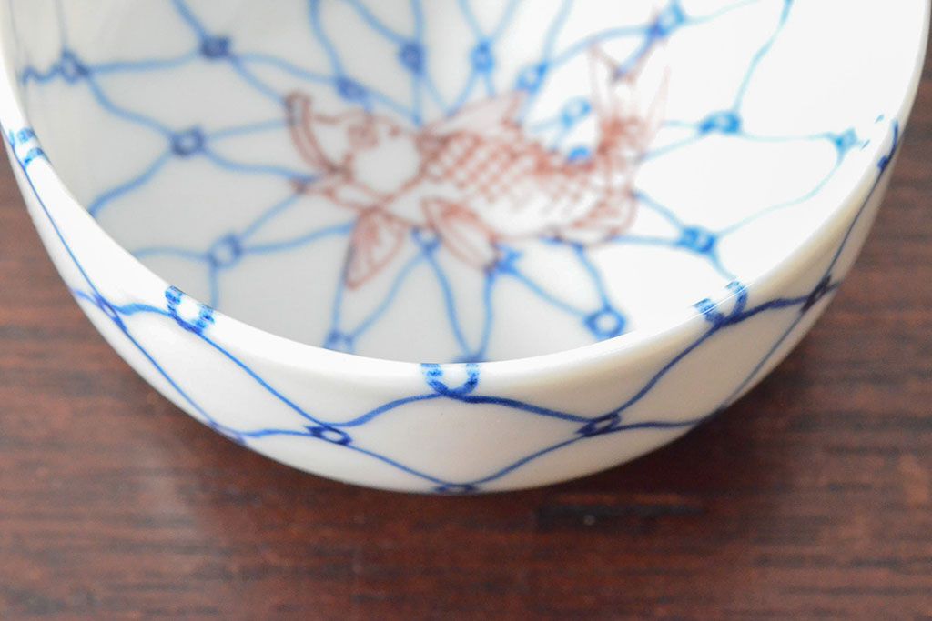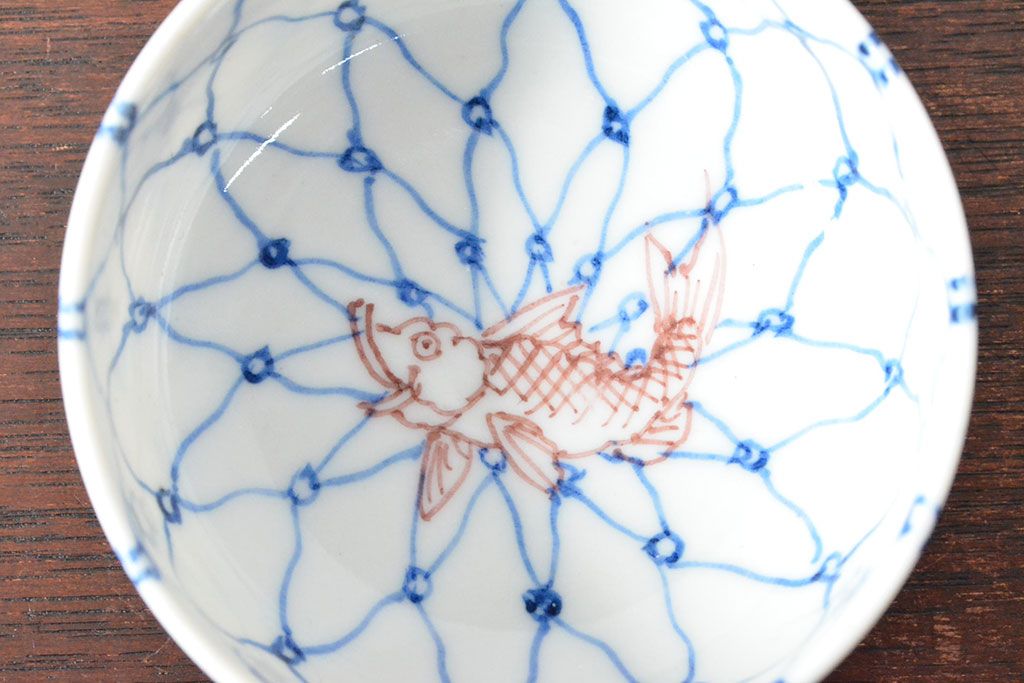 ラフジュ工房> 和食器・茶道具> 茶道具・鉄瓶 > 大日本米禽製 鯉の図 染付湯呑7客セット(茶道具、和食器)(R-052851)