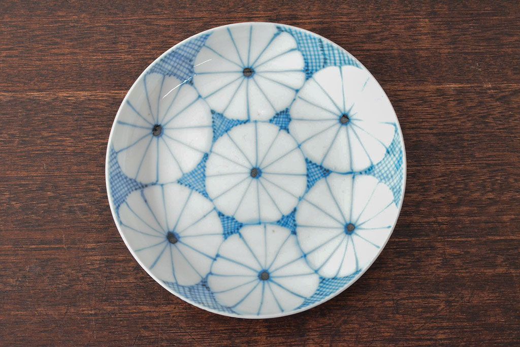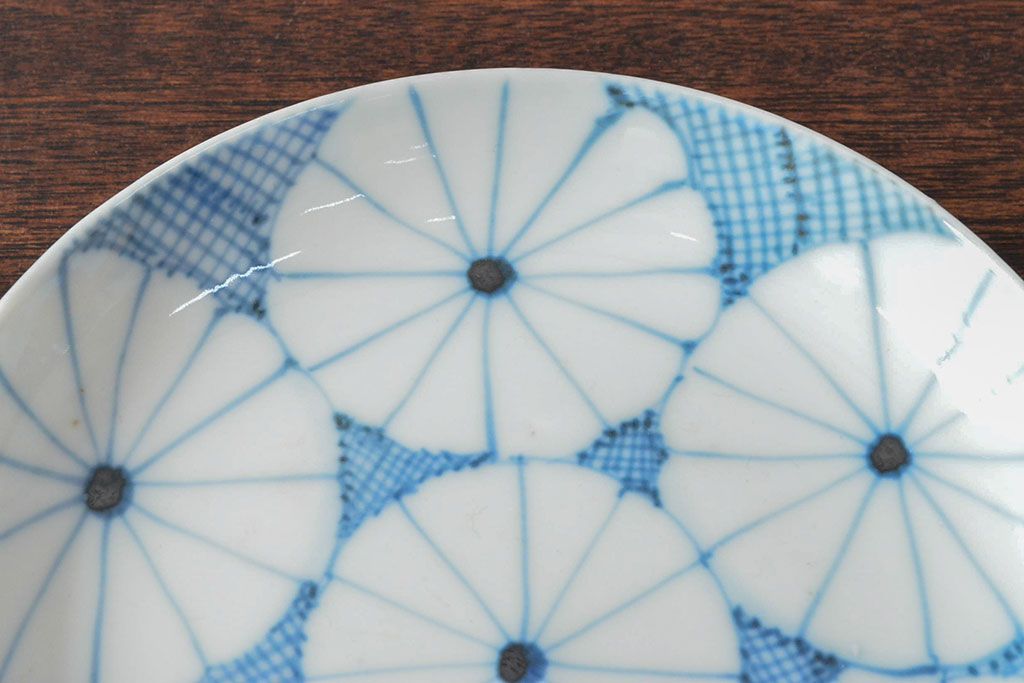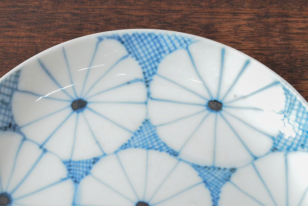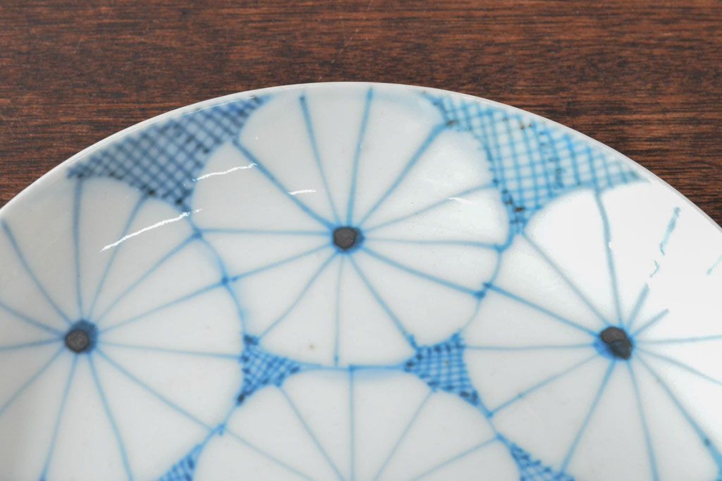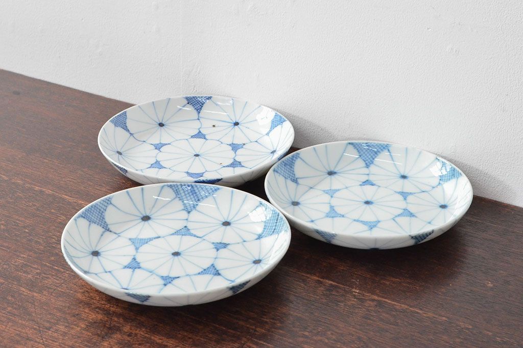 ラフジュ工房> 和食器・茶道具 > 江戸期 古伊万里 菊花尽し 染付五寸五分皿3枚セット(和食器、小皿)(R-052852)