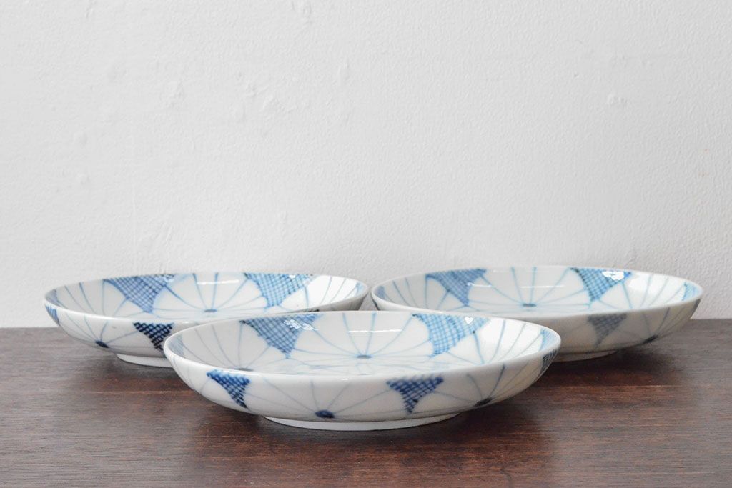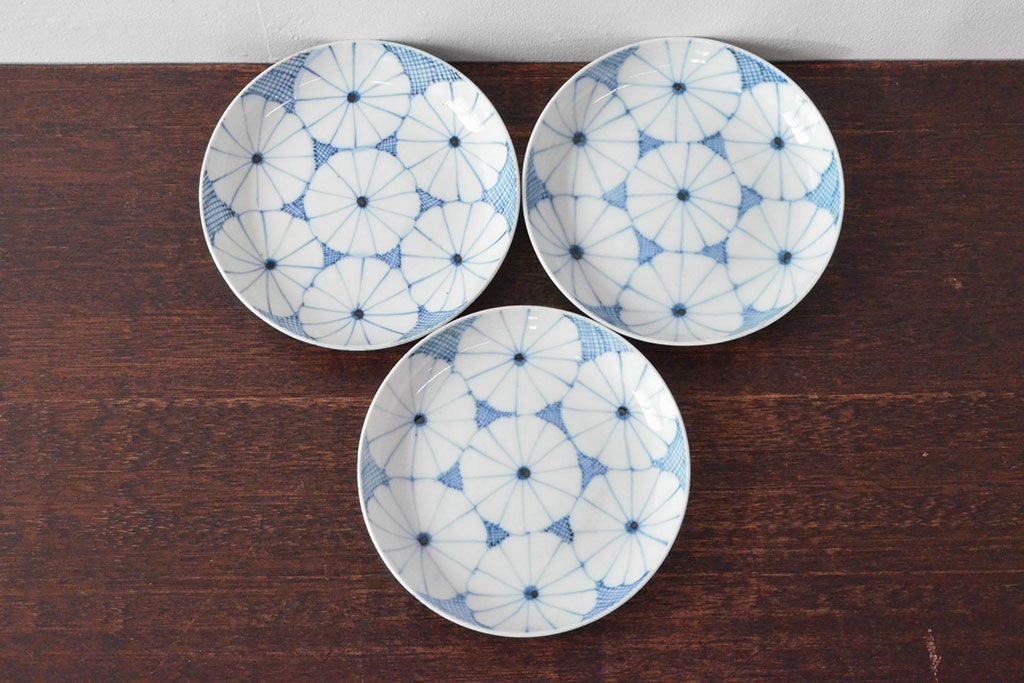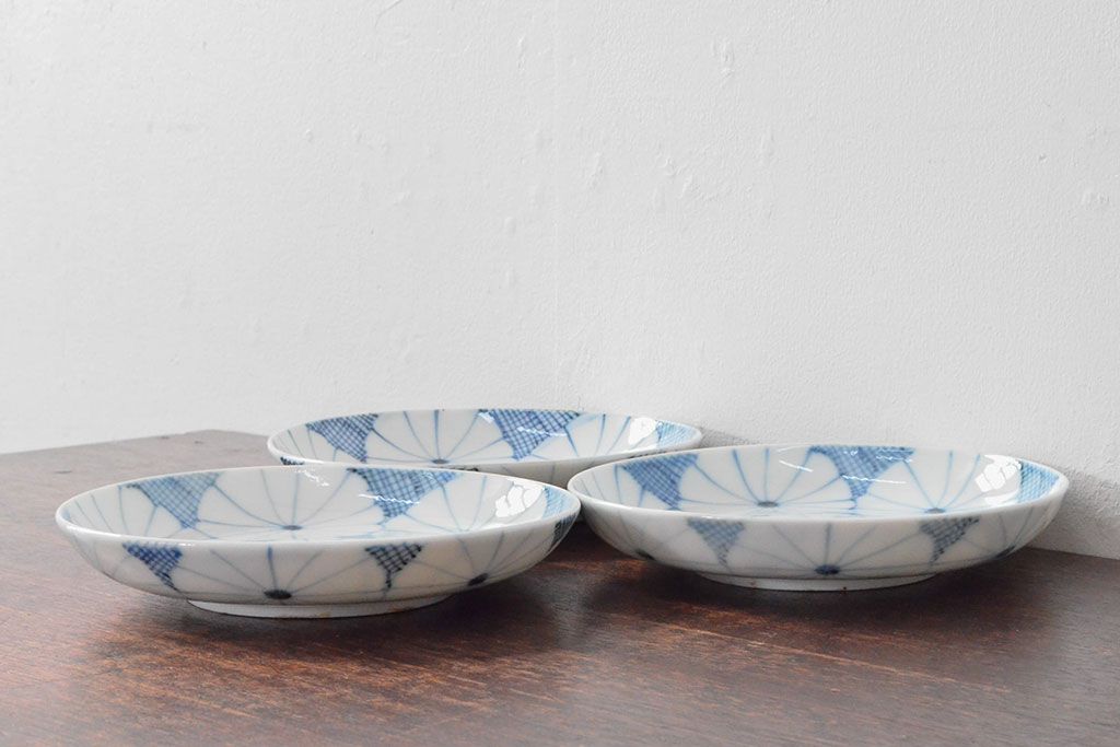 ラフジュ工房> 和食器・茶道具 > 江戸期 古伊万里 菊花尽し 染付五寸五分皿3枚セット(和食器、小皿)(R-052854)