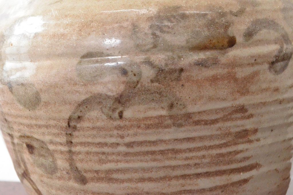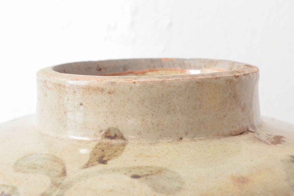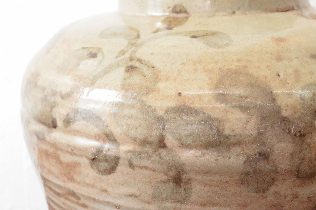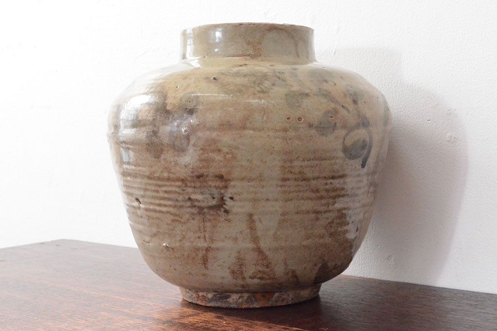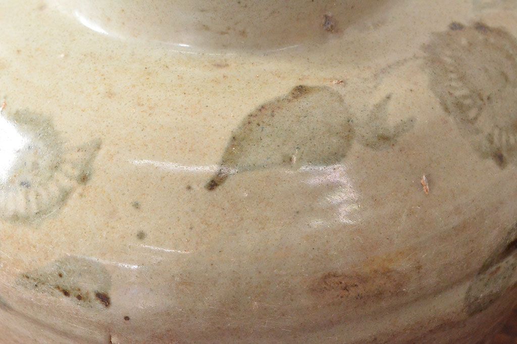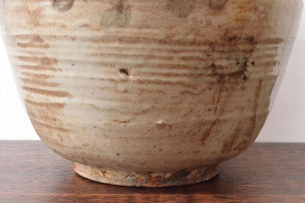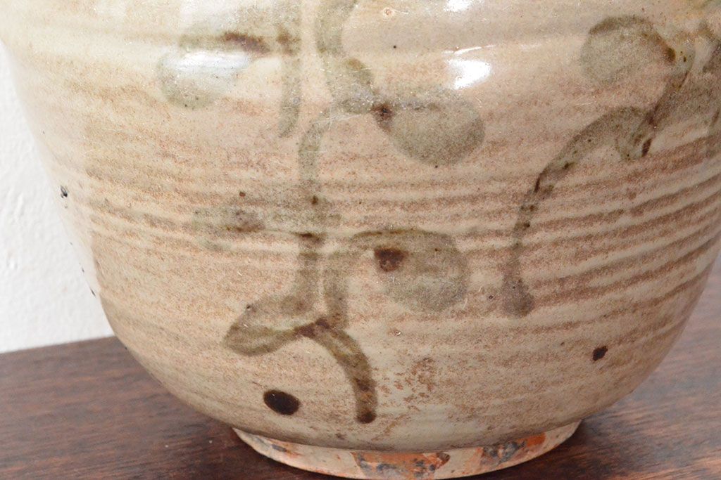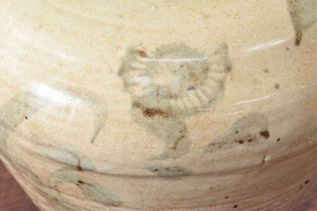 古い 李朝青磁 染付草花文瓶(壷、花瓶、花入)(R-052906)