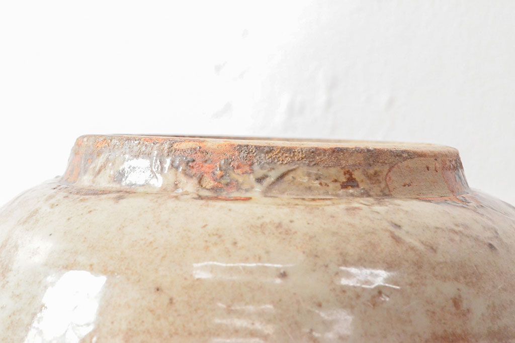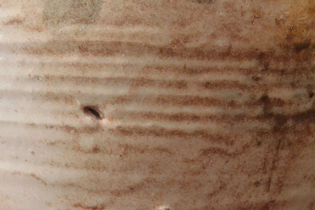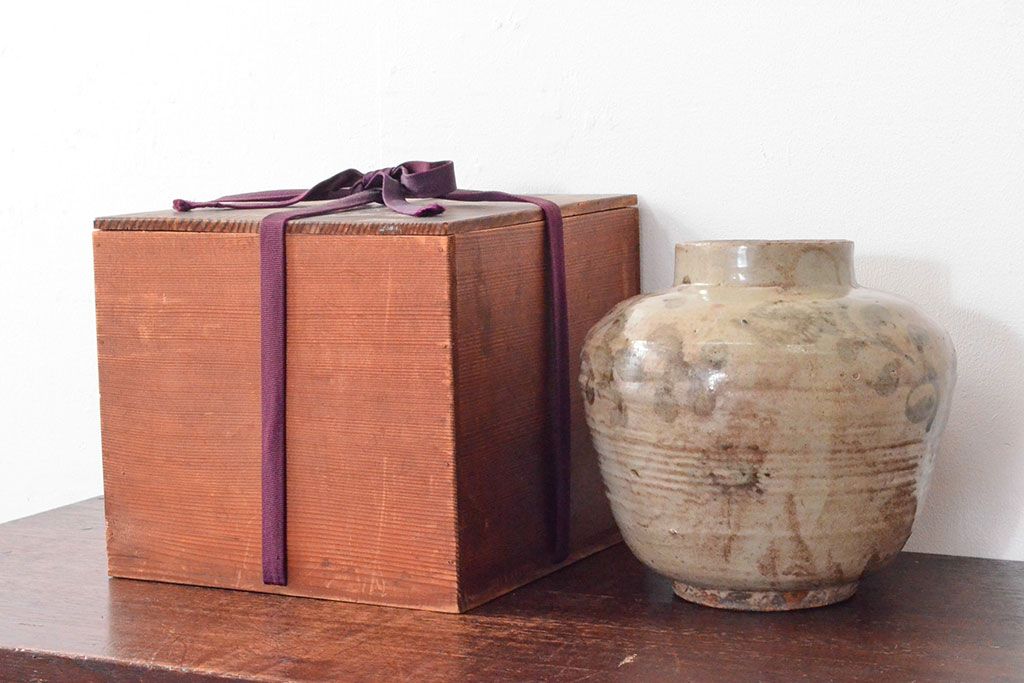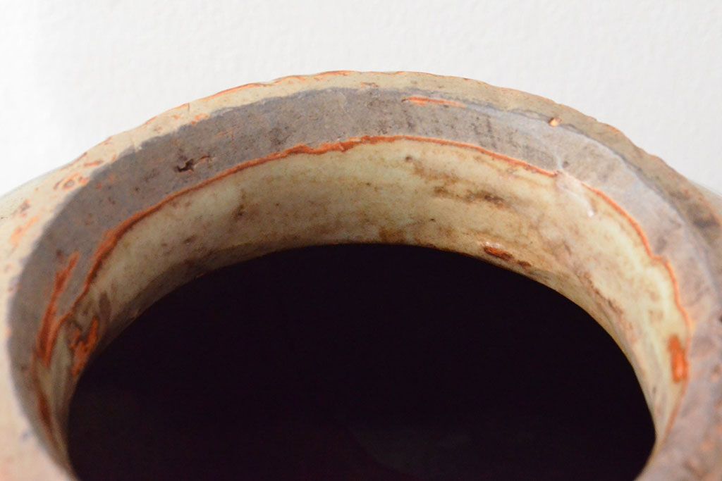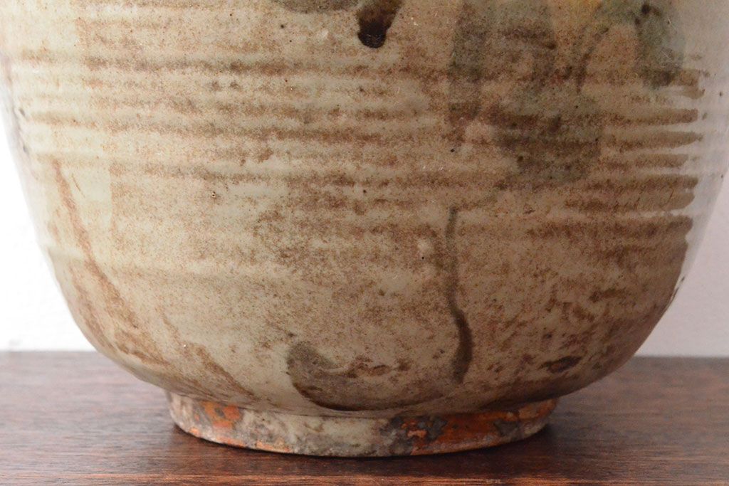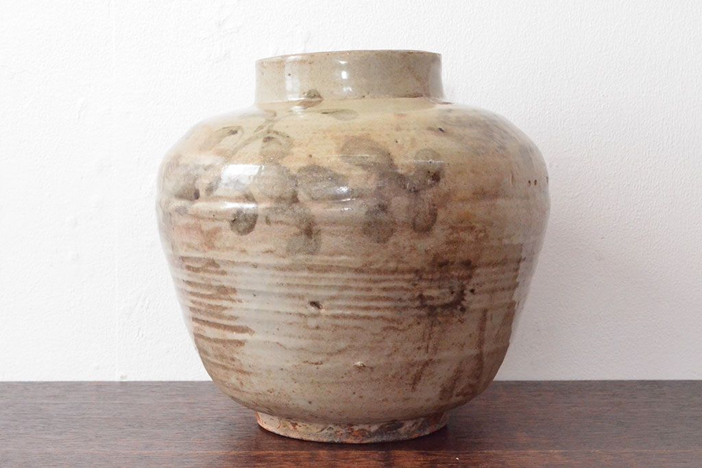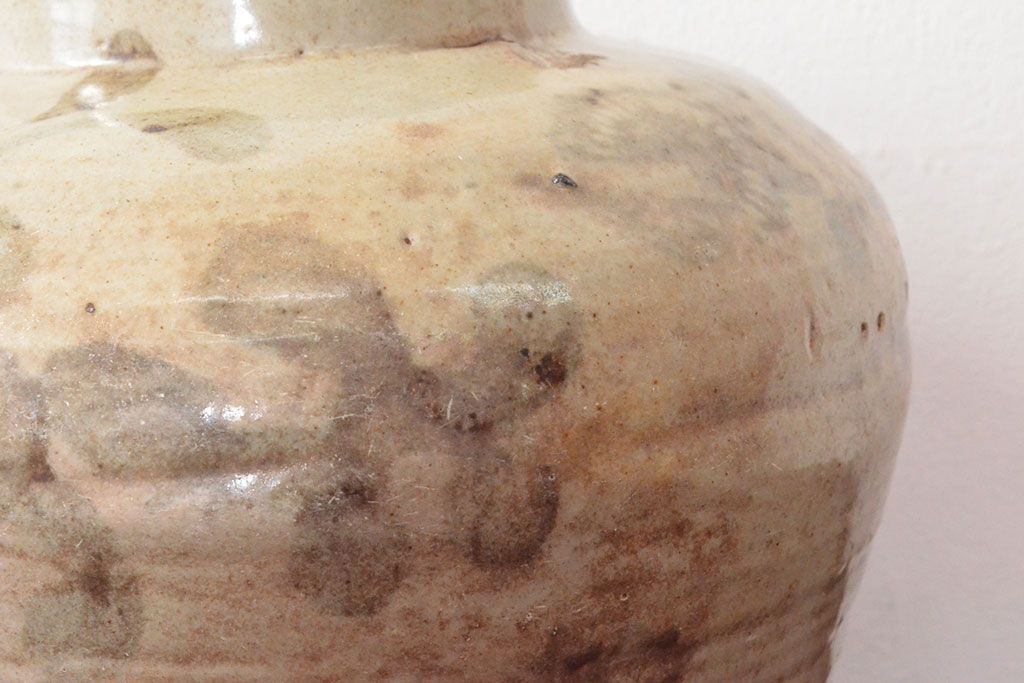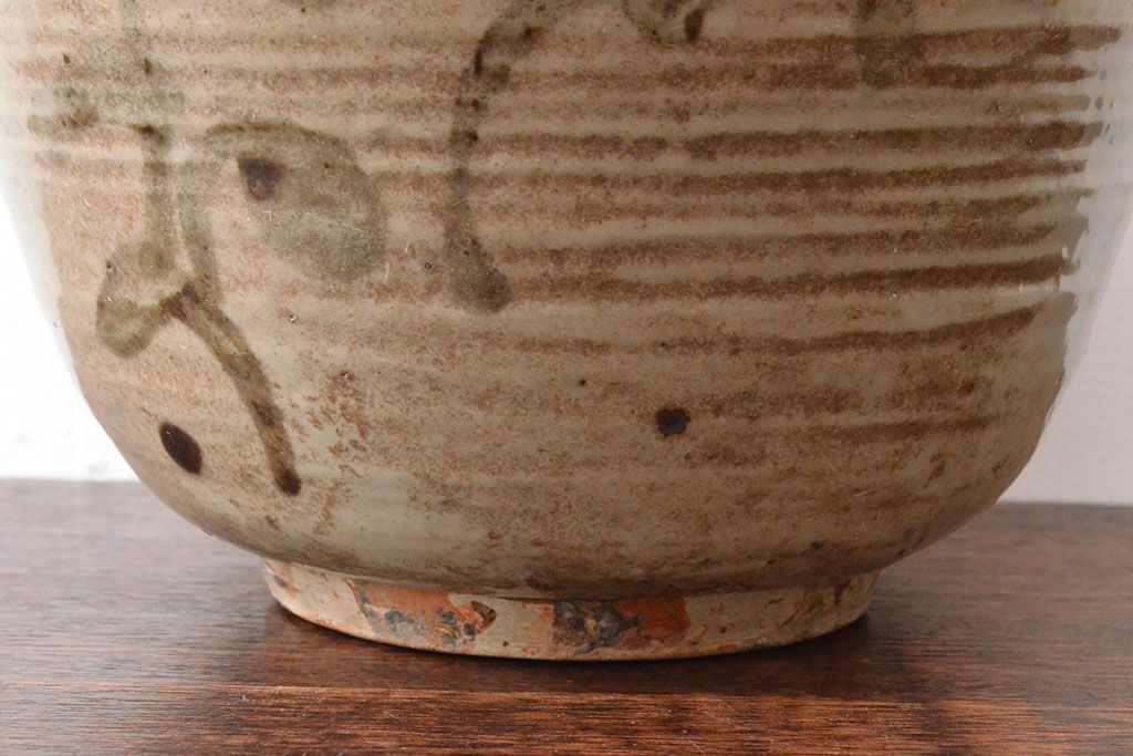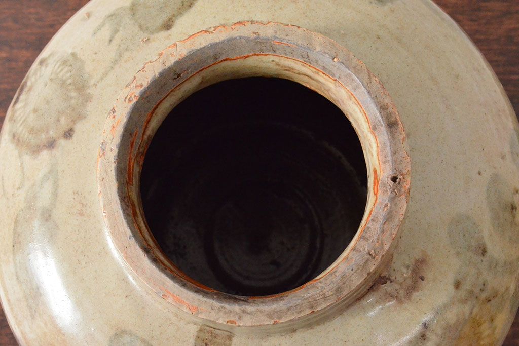 古い 李朝青磁 染付草花文瓶(壷、花瓶、花入)(R-052906)