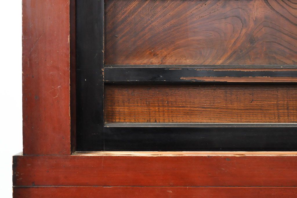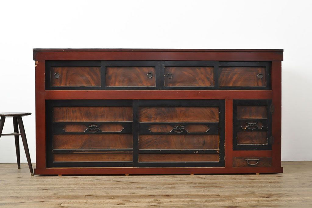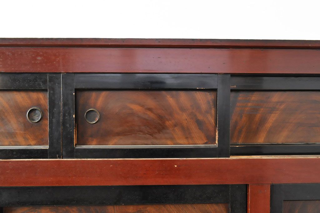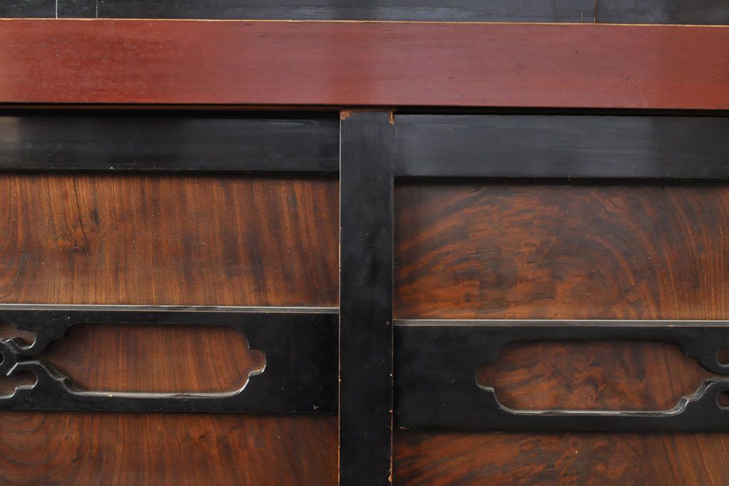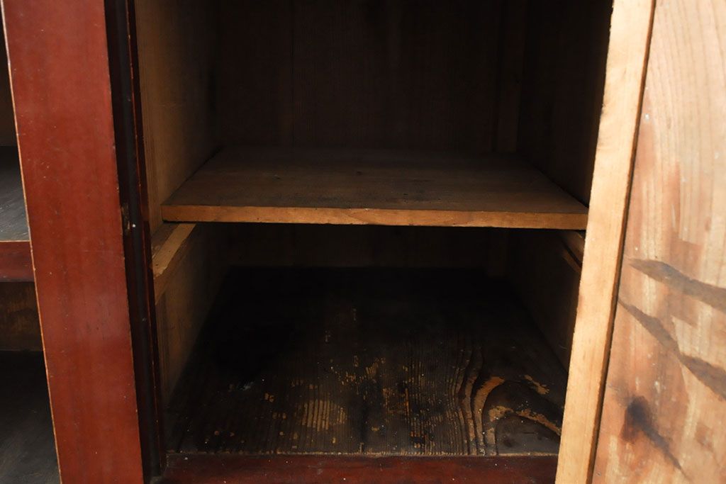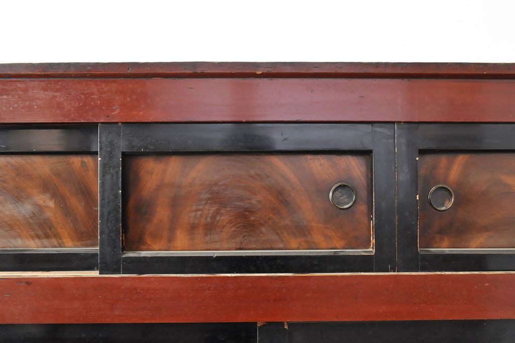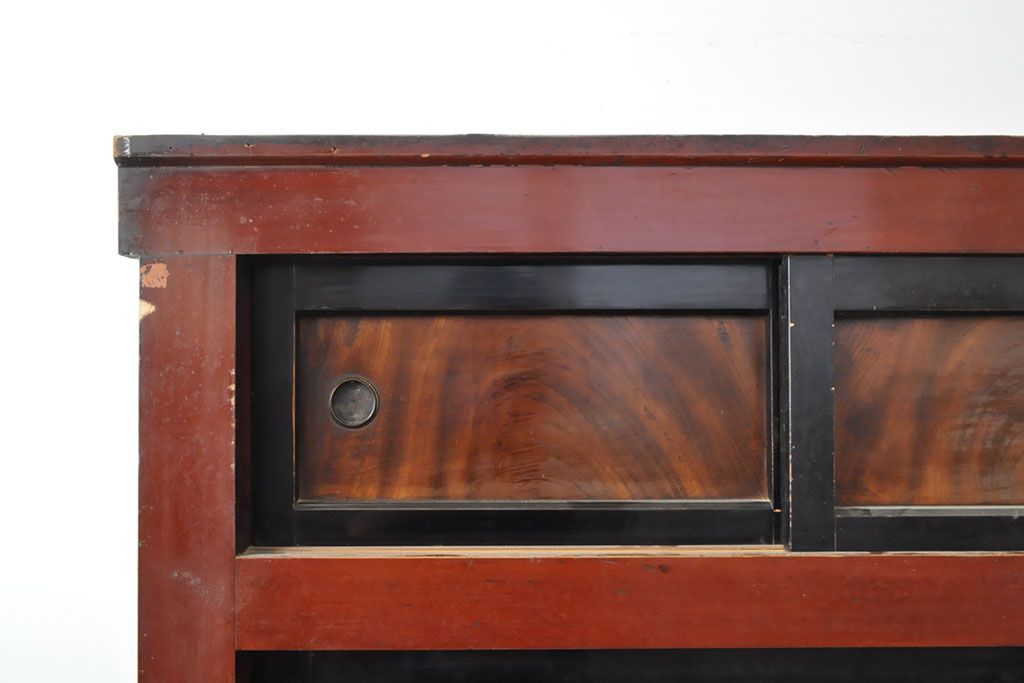 ラフジュ工房> 和箪笥> 水屋箪笥 > 和製アンティーク 和モダンなお部屋にぴったりのツートンカラーが目を引く重ね水屋箪笥・上段(収納棚、戸棚、食器棚、サイドボード)(R-053024)