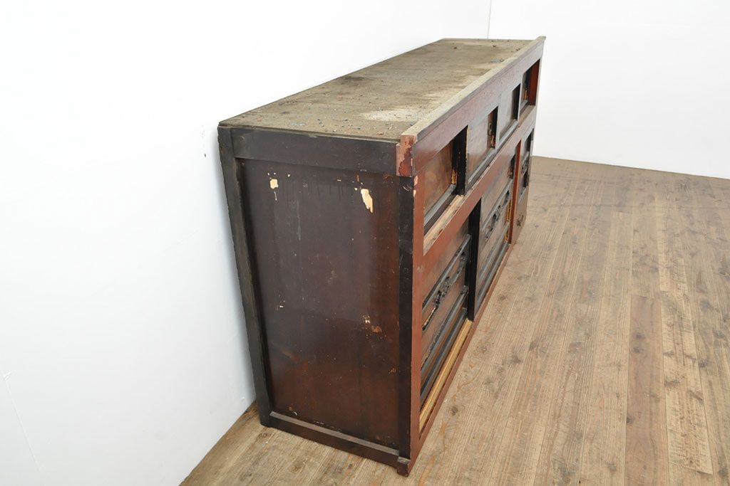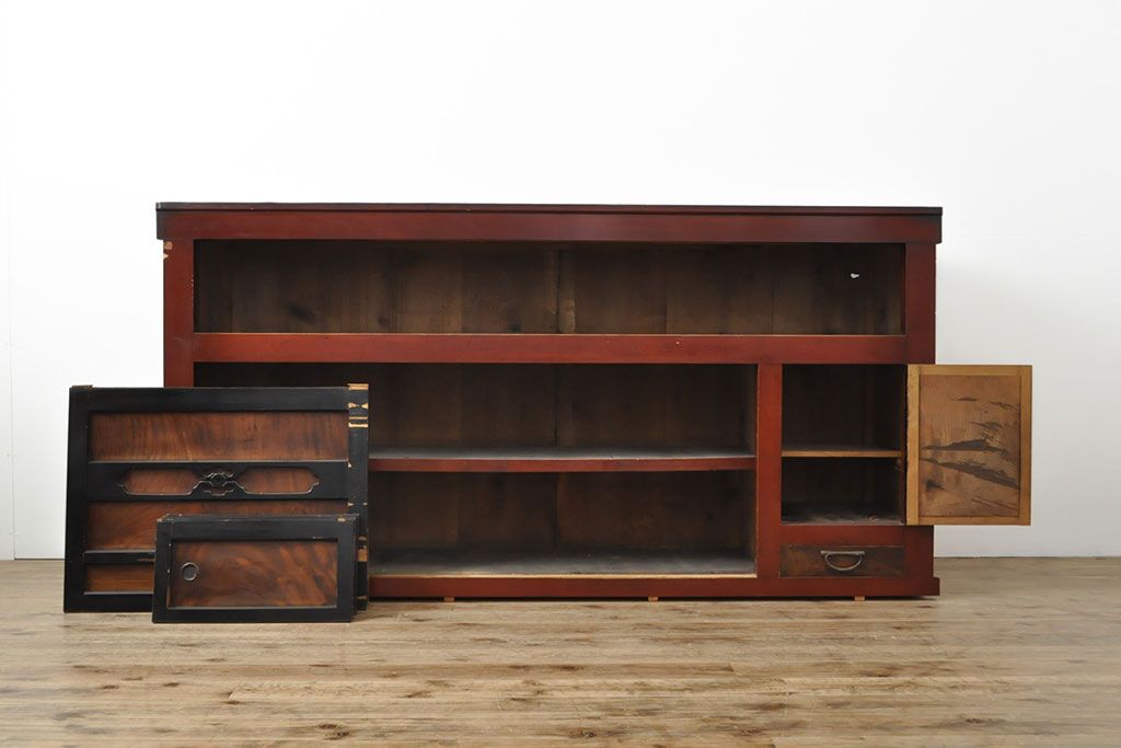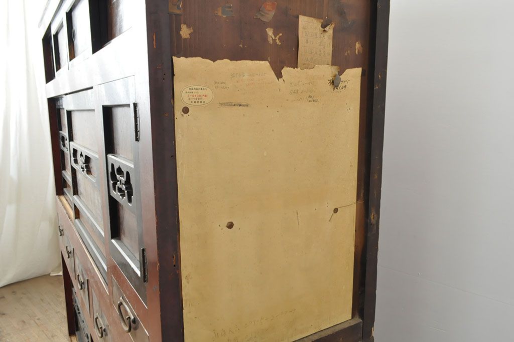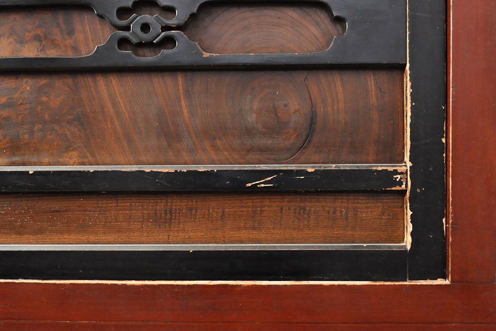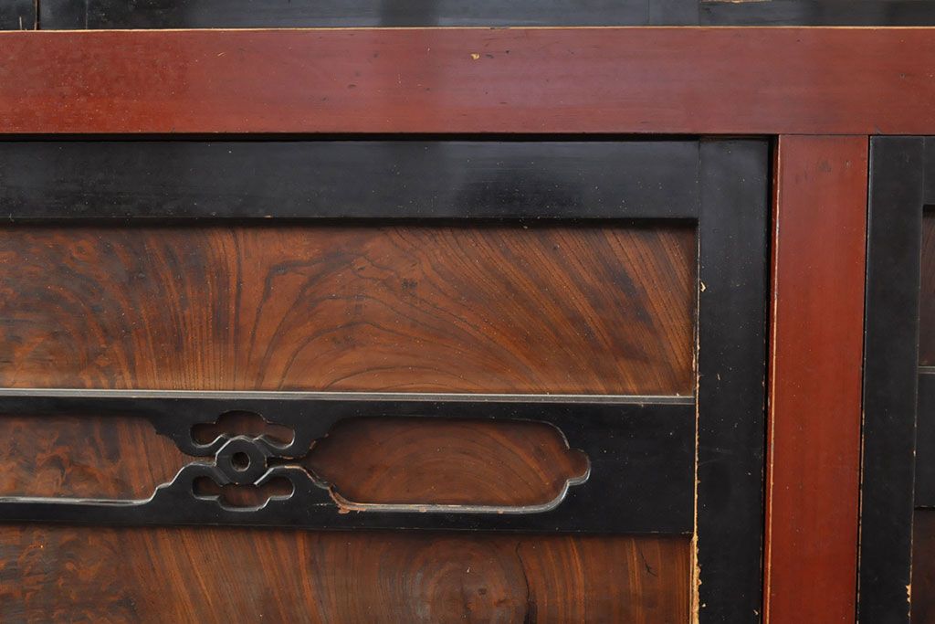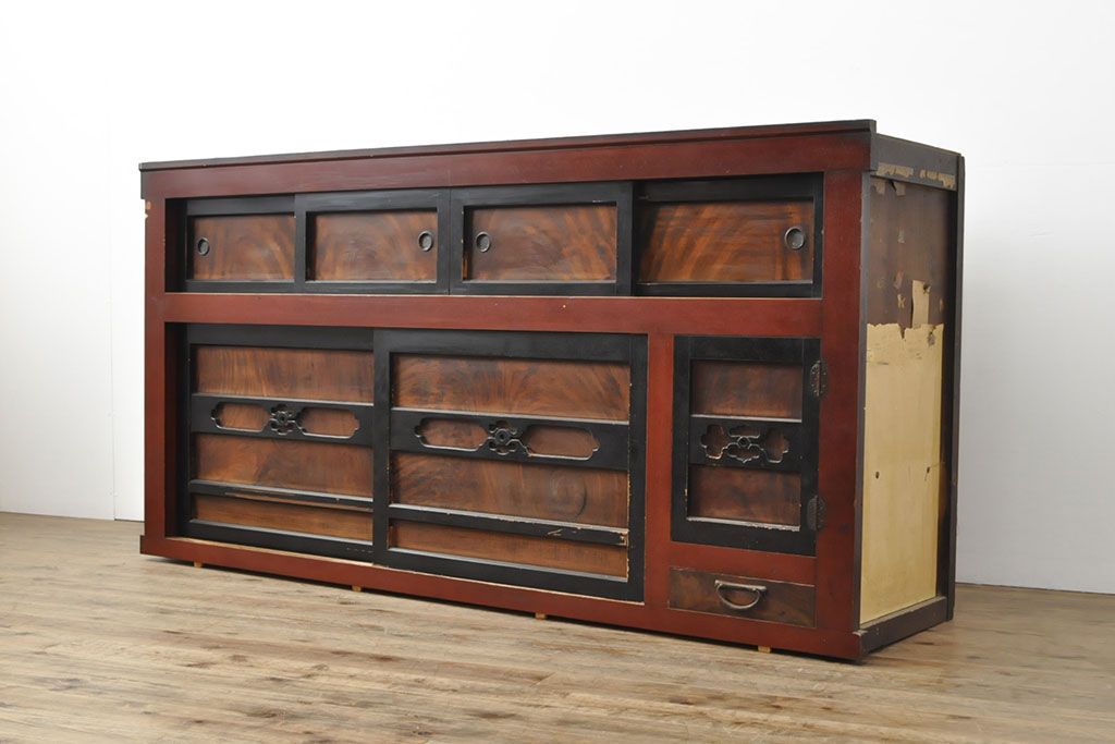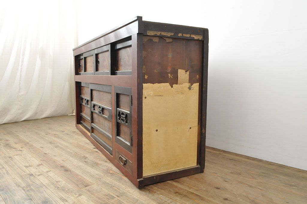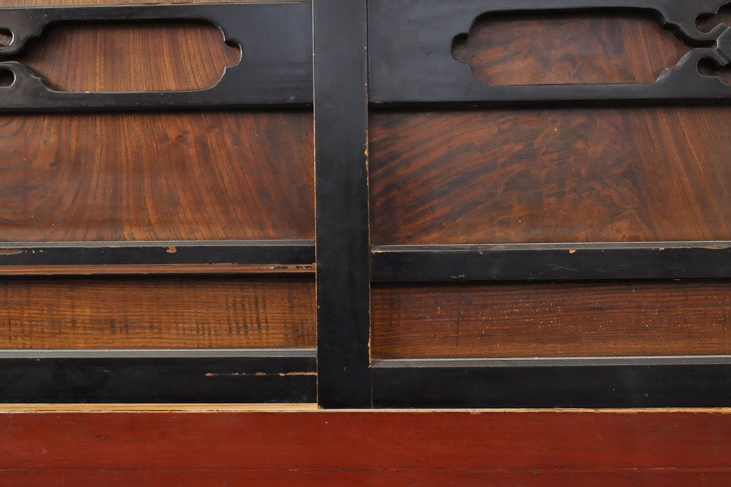ラフジュ工房> 和箪笥> 水屋箪笥 > 和製アンティーク 和モダンなお部屋にぴったりのツートンカラーが目を引く重ね水屋箪笥・上段(収納棚、戸棚、食器棚、サイドボード)(R-053024)