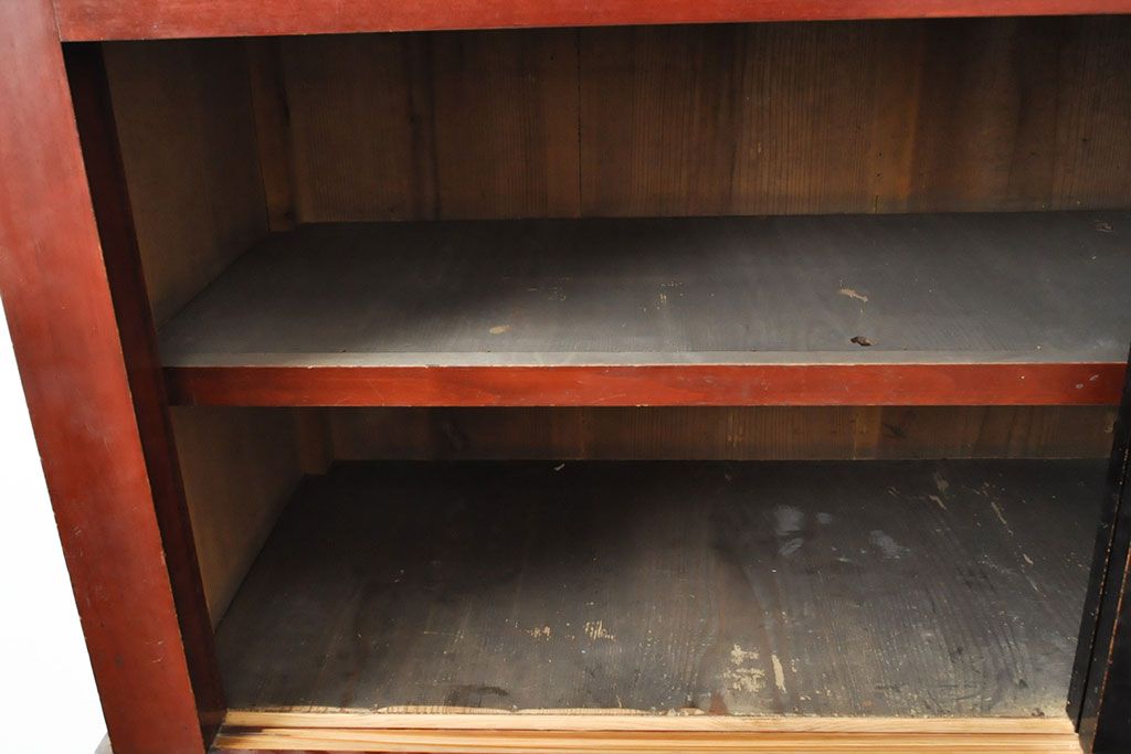 ラフジュ工房> キャビネット・戸棚> 食器棚・カップボード > 和製アンティーク 和モダンなお部屋にぴったりのツートンカラーが目を引く重ね水屋箪笥・上段(収納棚、戸棚、食器棚、サイドボード)(R-053024)