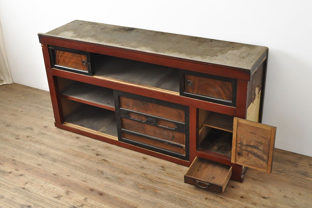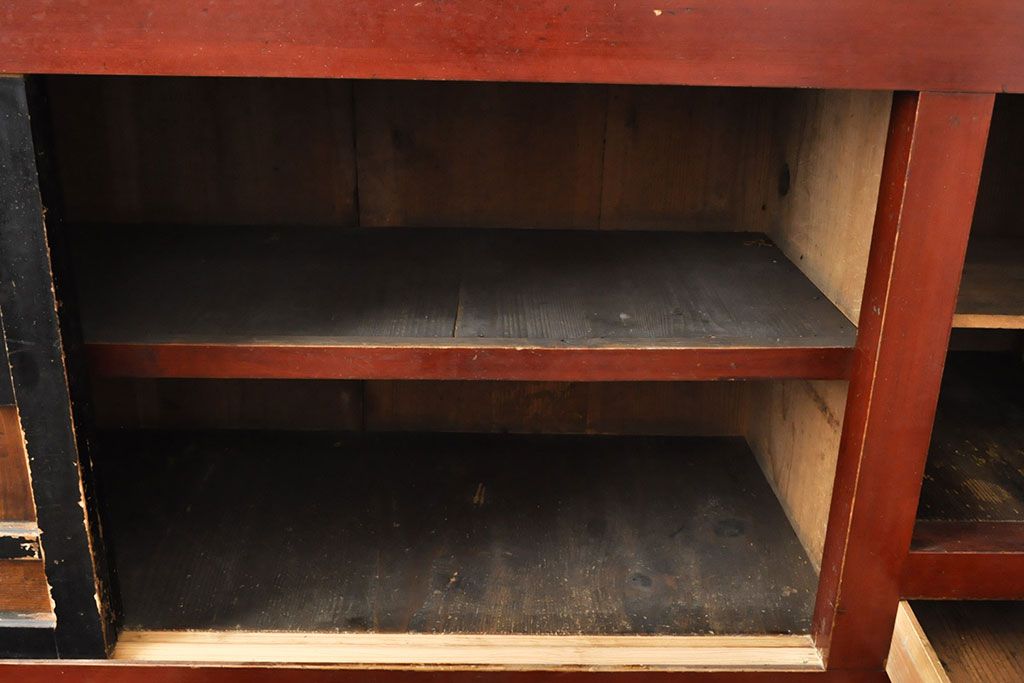 ラフジュ工房> キャビネット・戸棚> サイドボード > 和製アンティーク 和モダンなお部屋にぴったりのツートンカラーが目を引く重ね水屋箪笥・上段(収納棚、戸棚、食器棚、サイドボード)(R-053024)